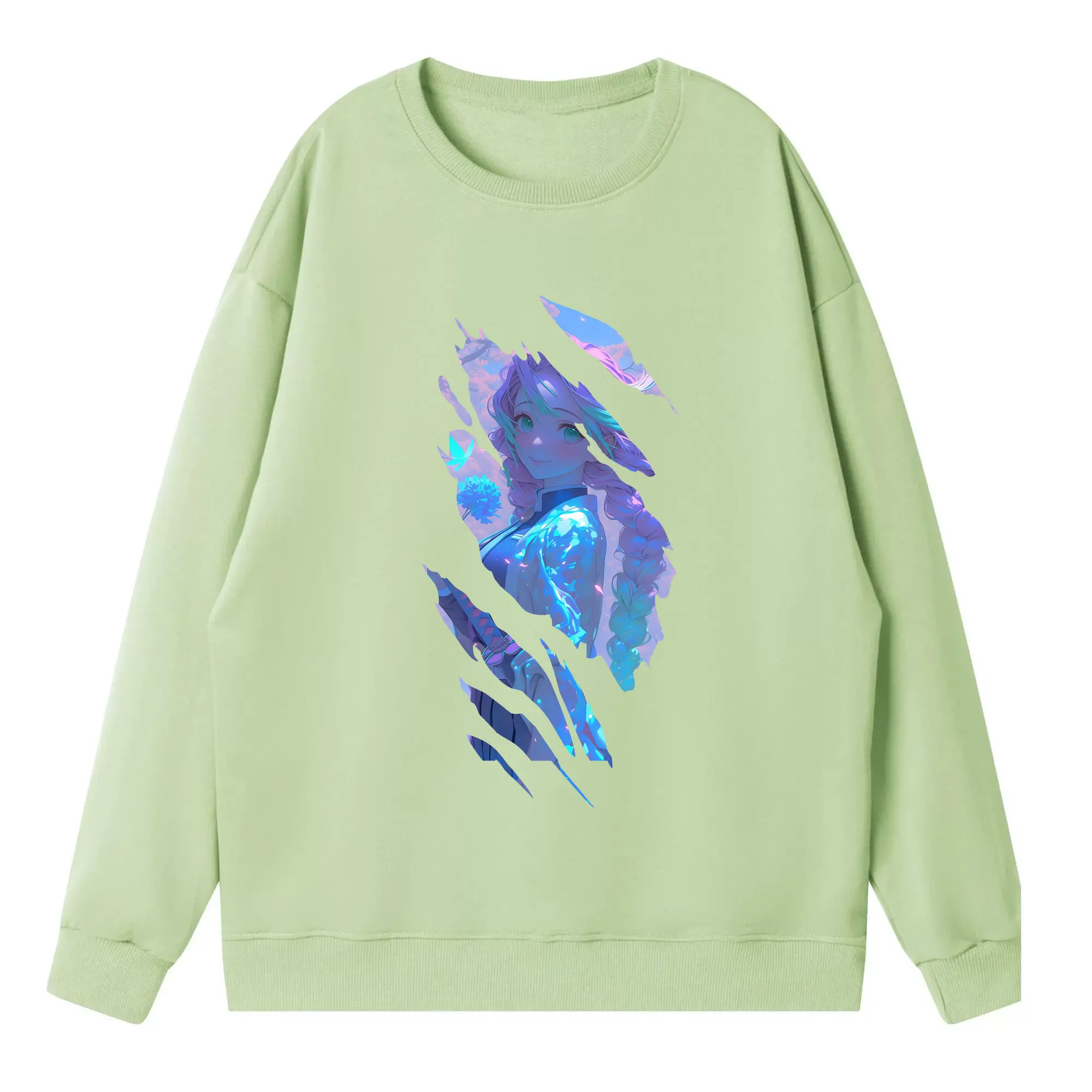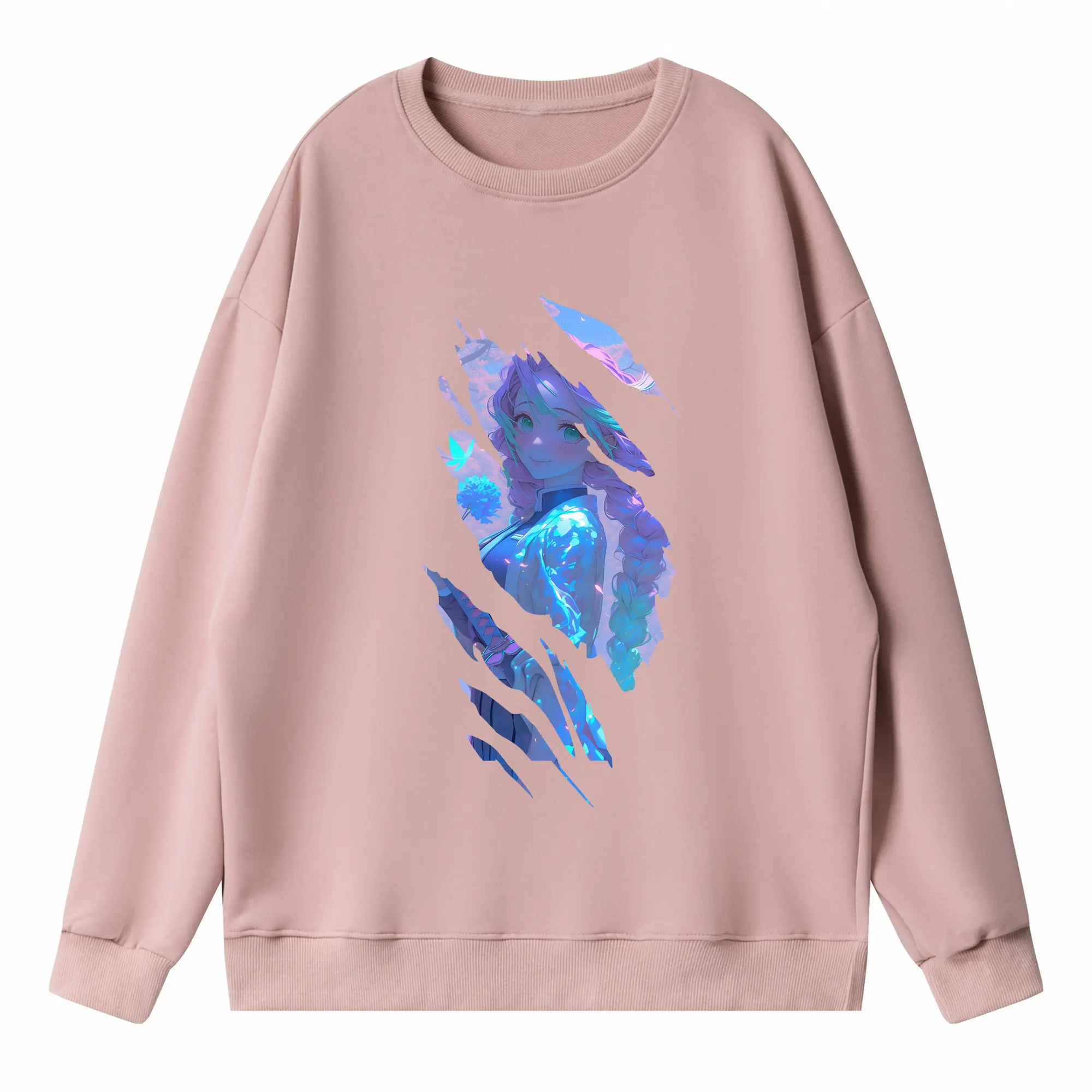 鬼滅の刃 グッズ,甘露寺 蜜璃 - 高品質 クルーネック スウェット ・ コットン59% ポリエステル41% ・ ユニセックス 長袖 トレーナー ・ カジュアル デイリー スポーツ 散歩用