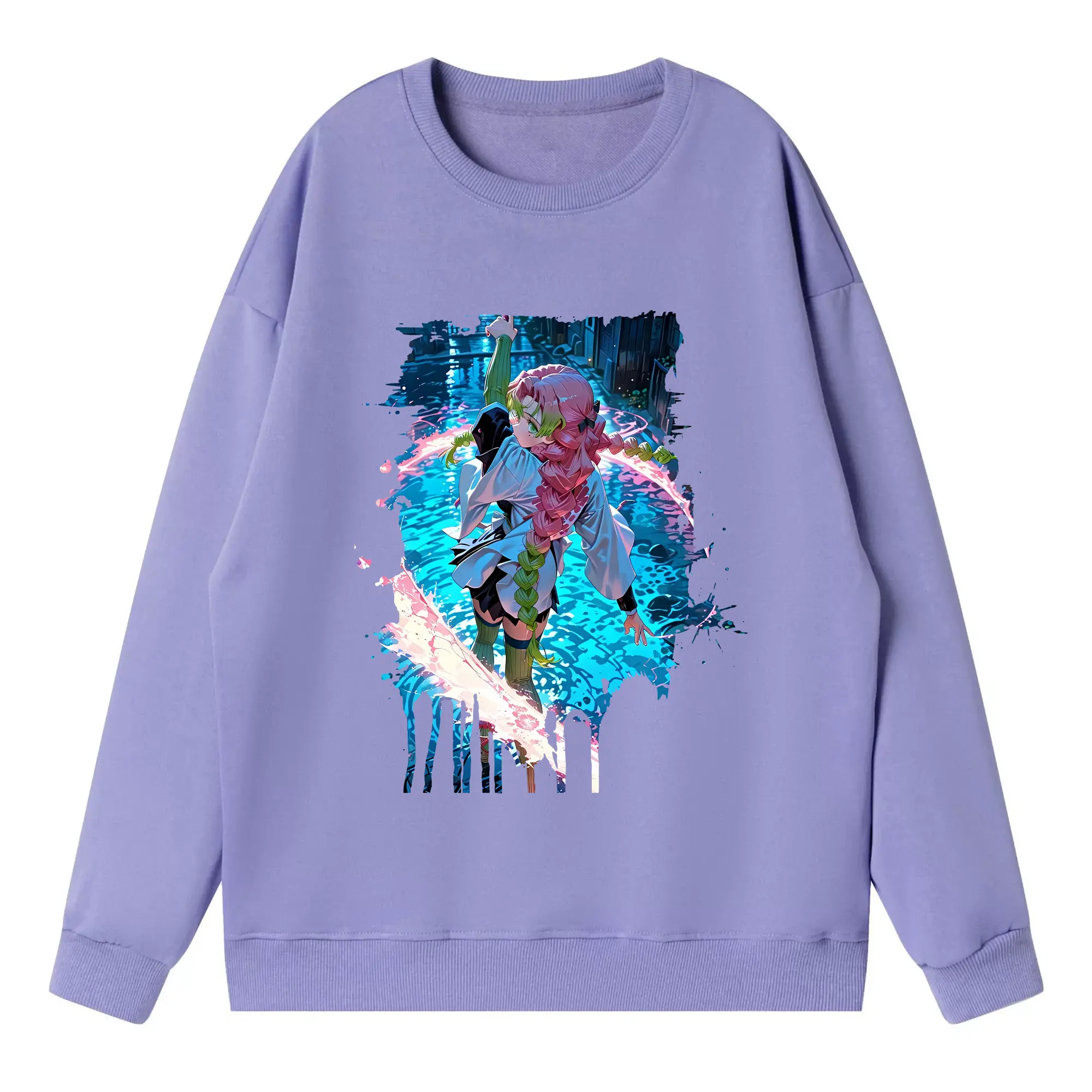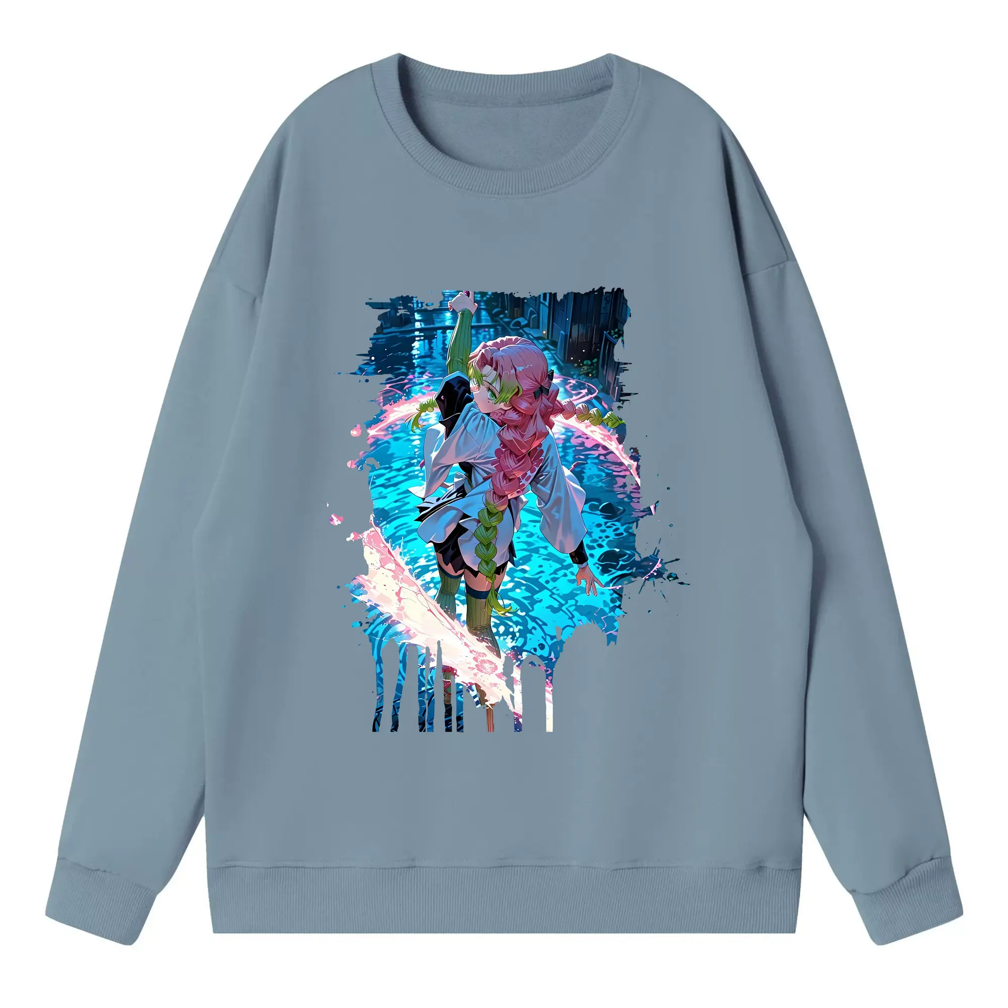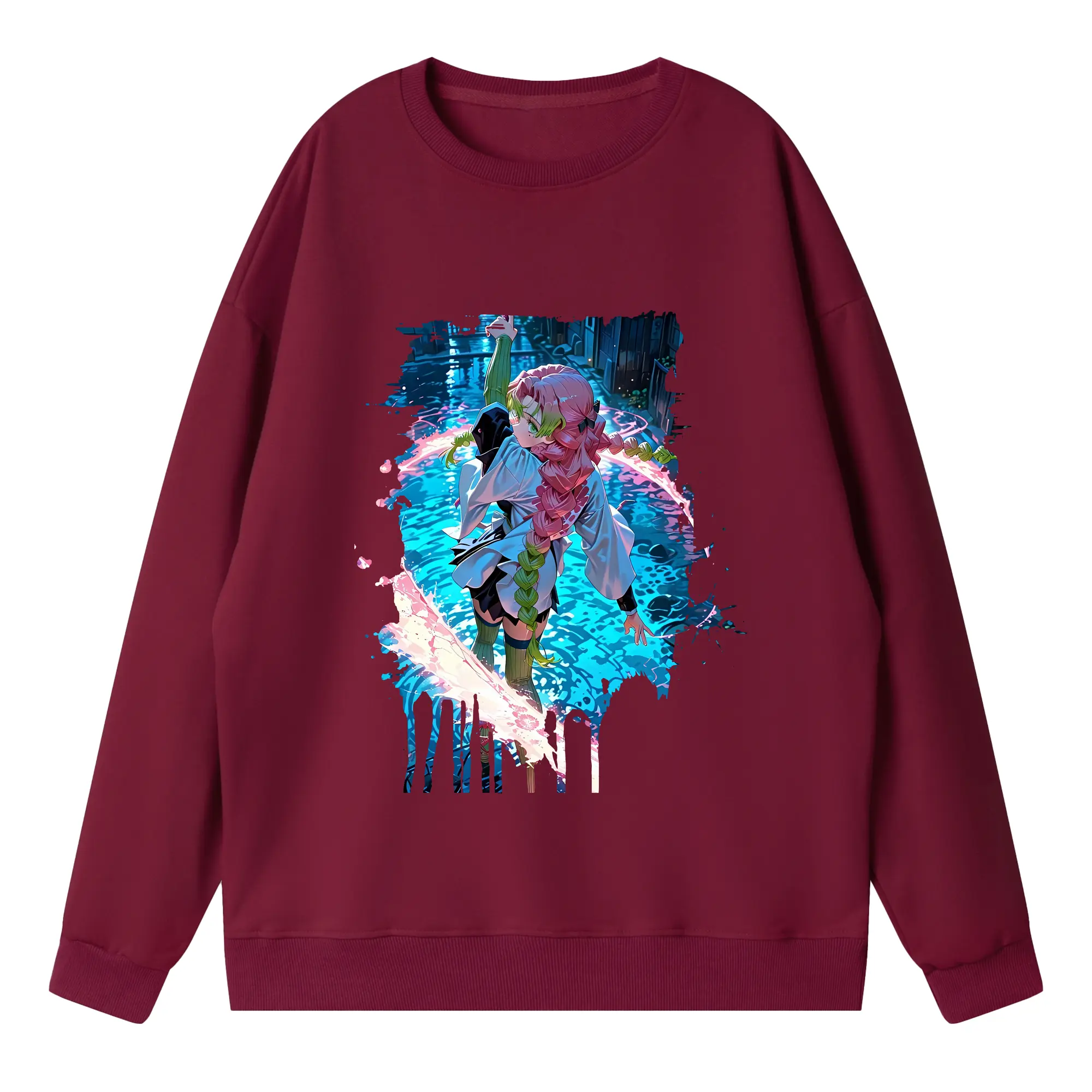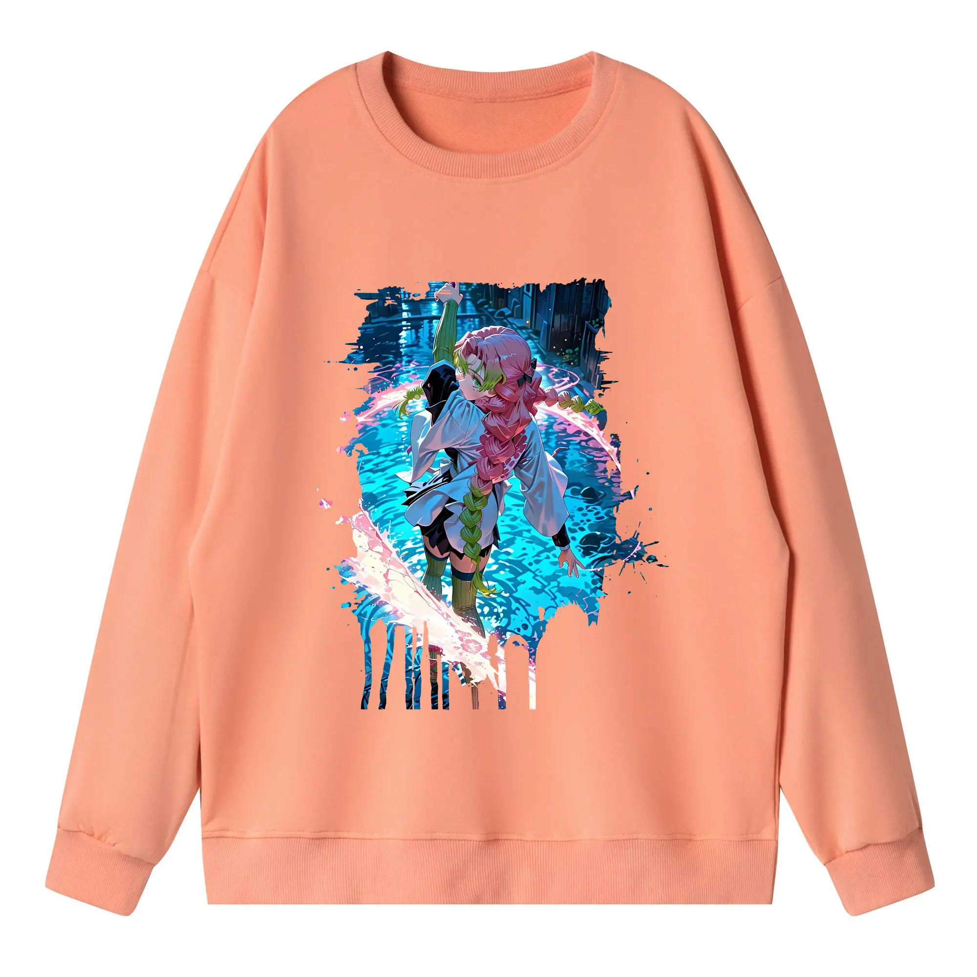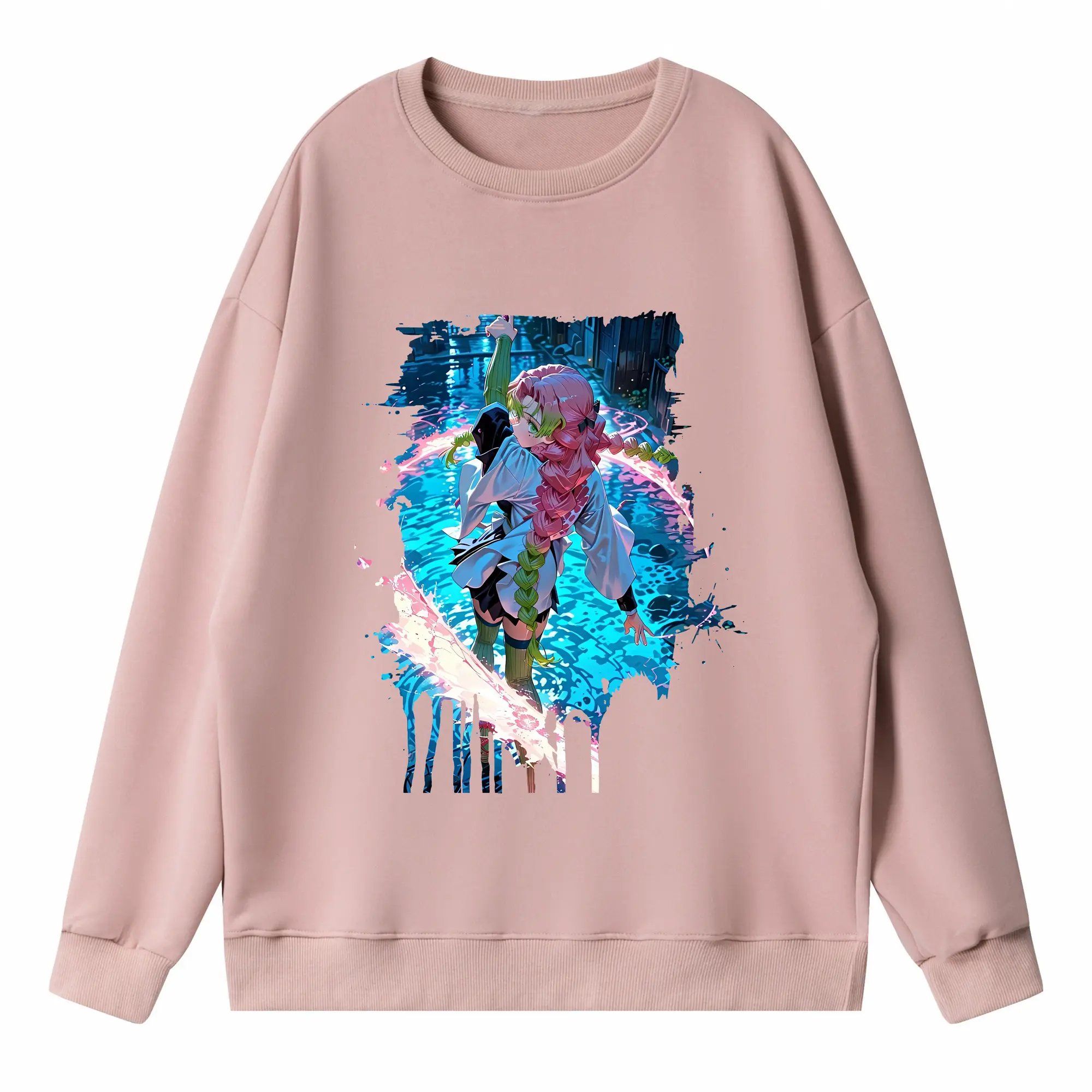 鬼滅の刃 グッズ,甘露寺 蜜璃 - 高品質 クルーネック スウェット ・ コットン59% ポリエステル41% ・ ユニセックス 長袖 トレーナー ・ カジュアル デイリー スポーツ 散歩用