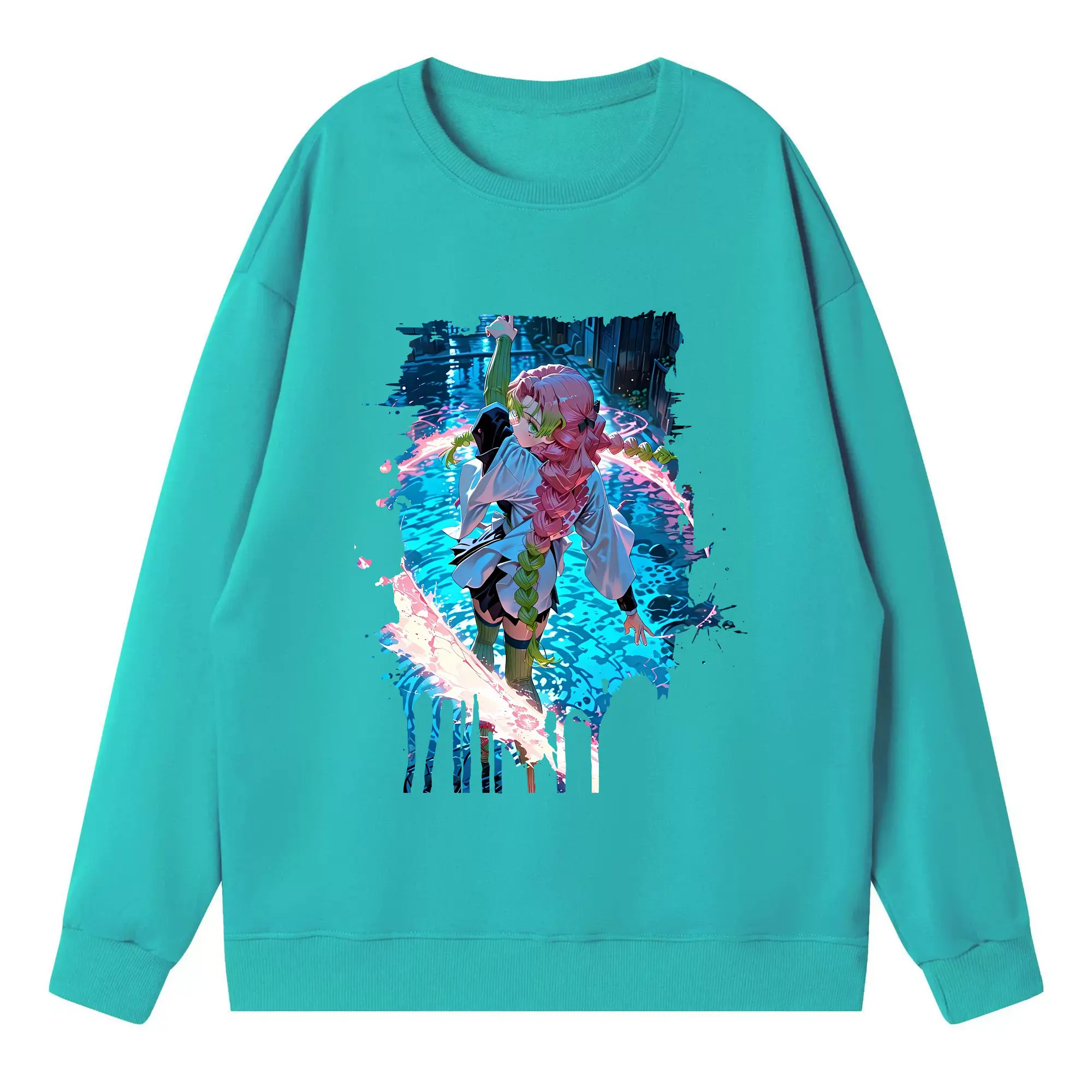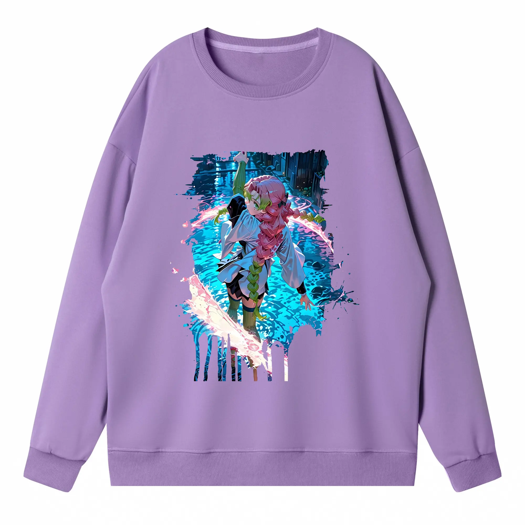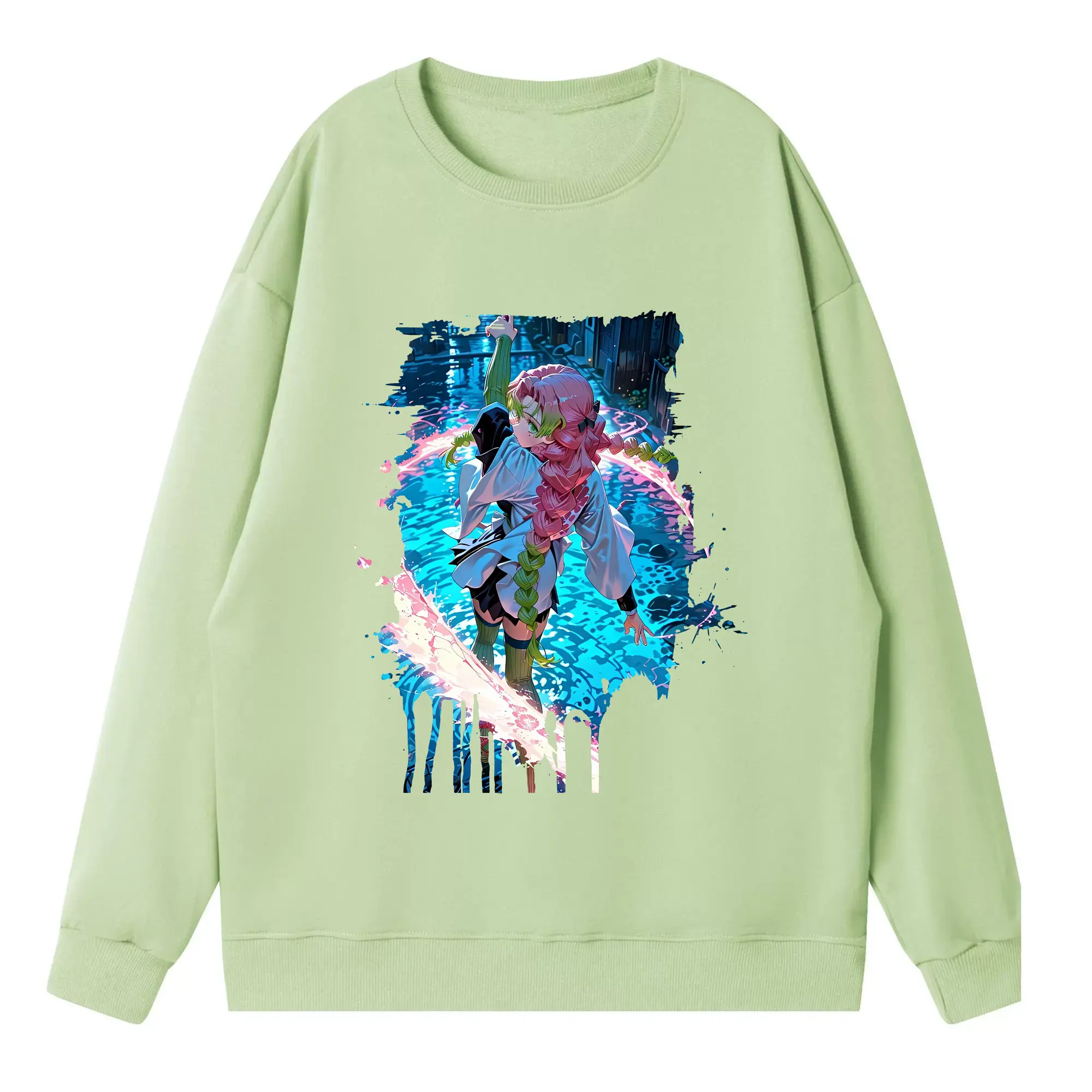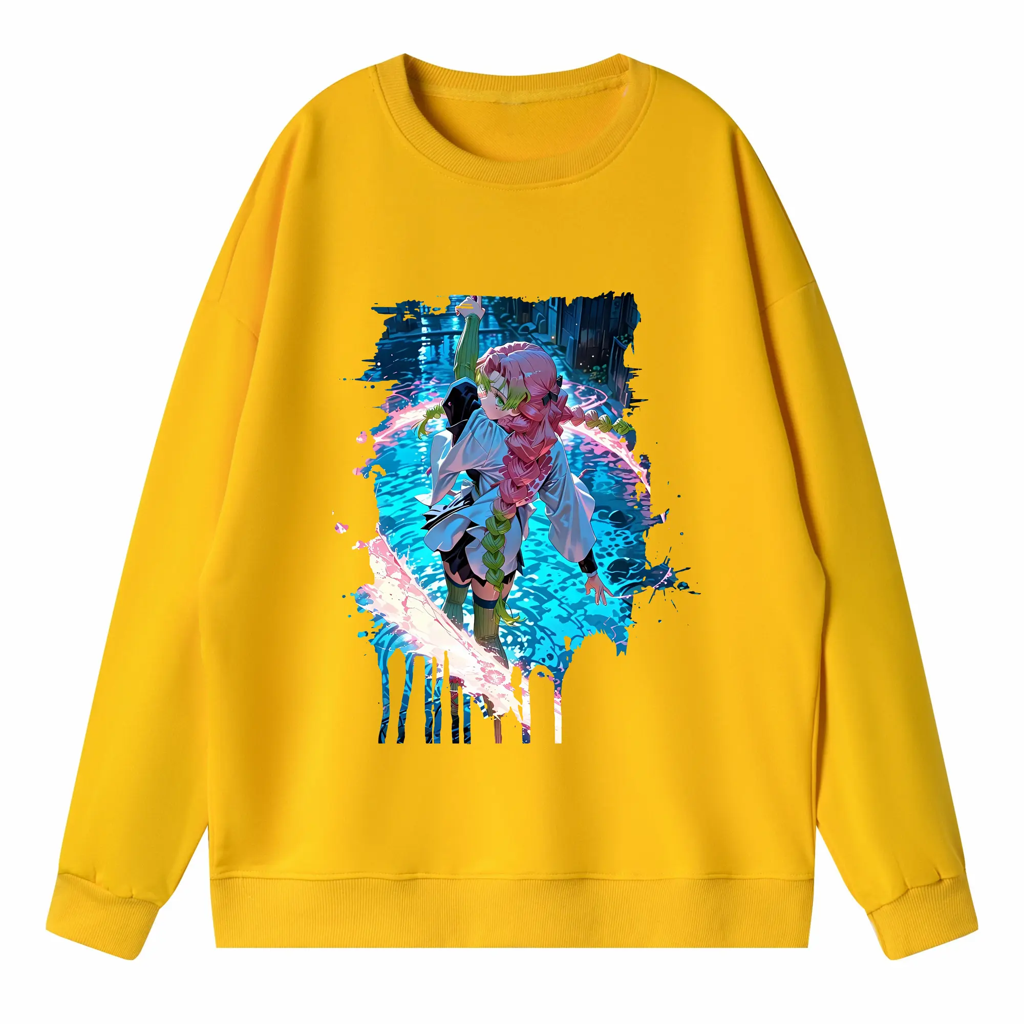 鬼滅の刃 グッズ,甘露寺 蜜璃 - 高品質 クルーネック スウェット ・ コットン59% ポリエステル41% ・ ユニセックス 長袖 トレーナー ・ カジュアル デイリー スポーツ 散歩用