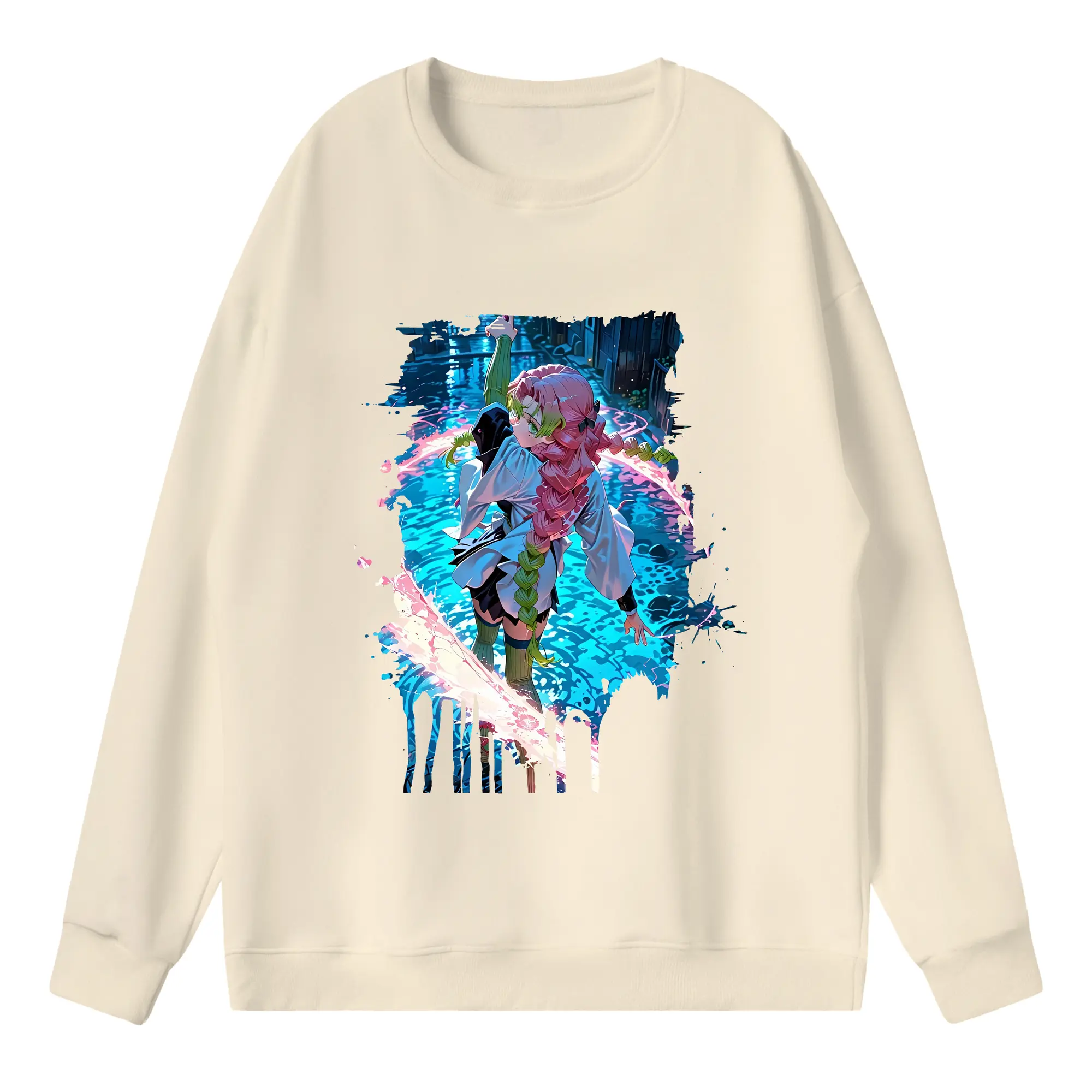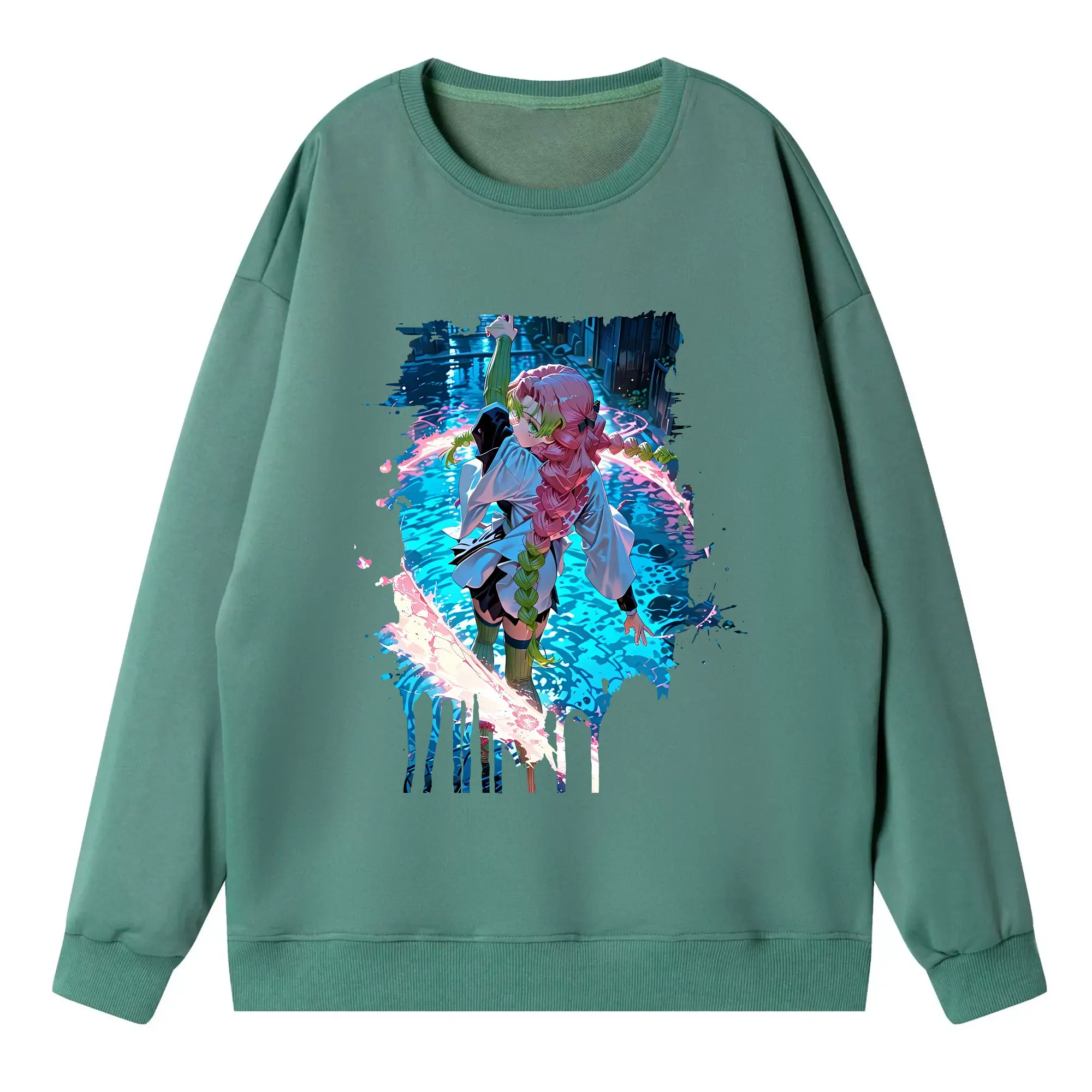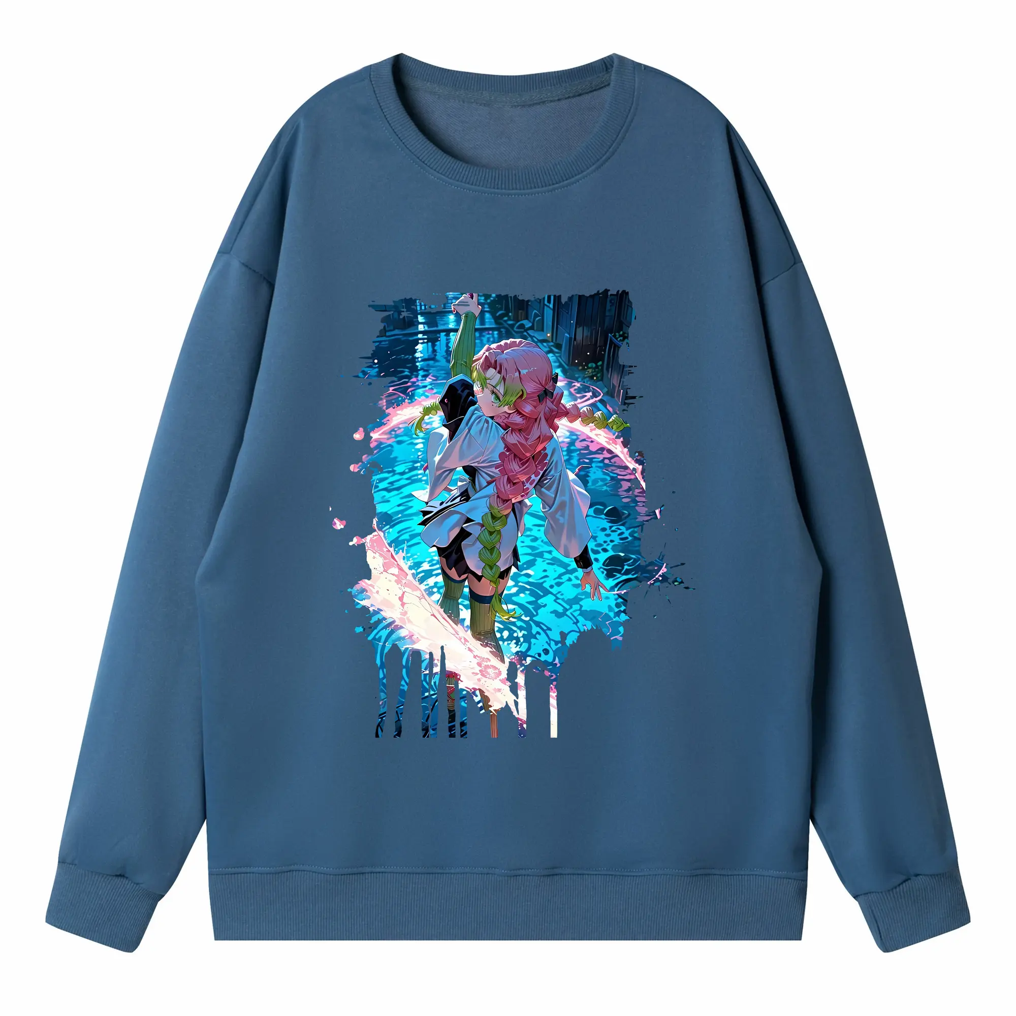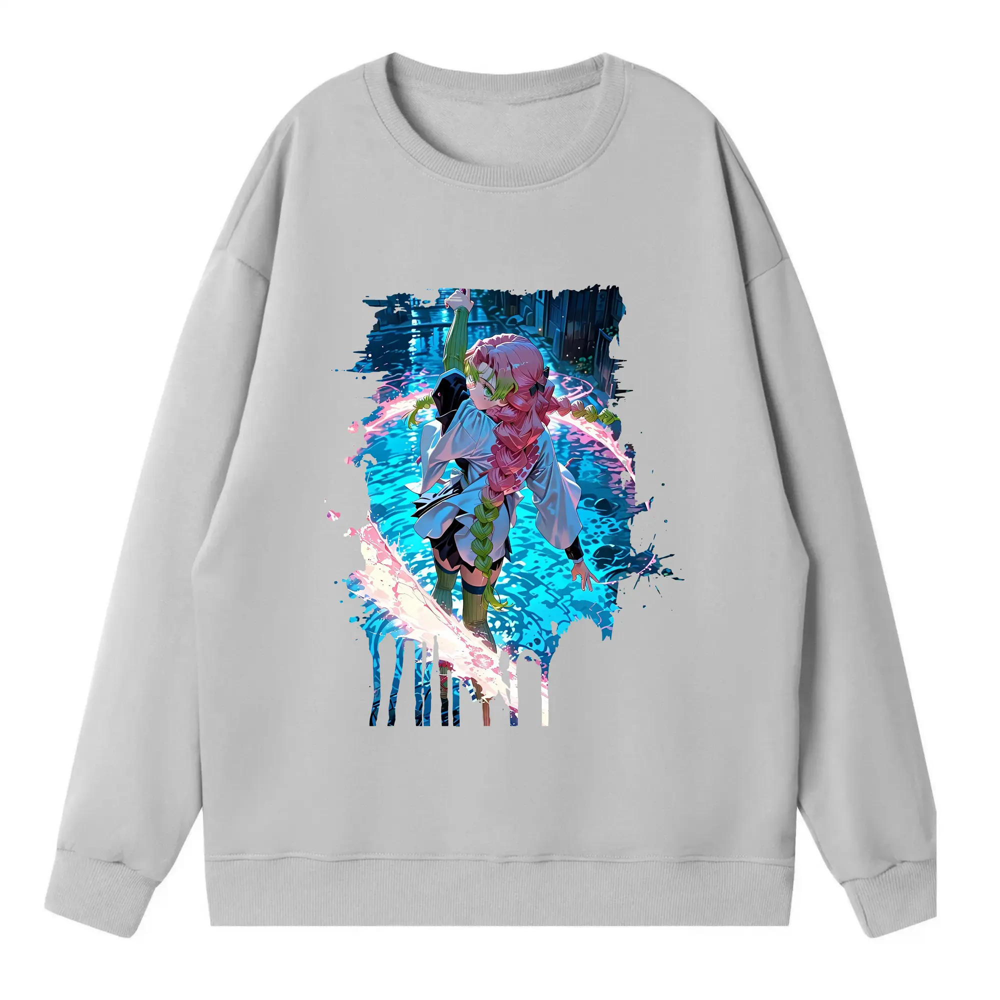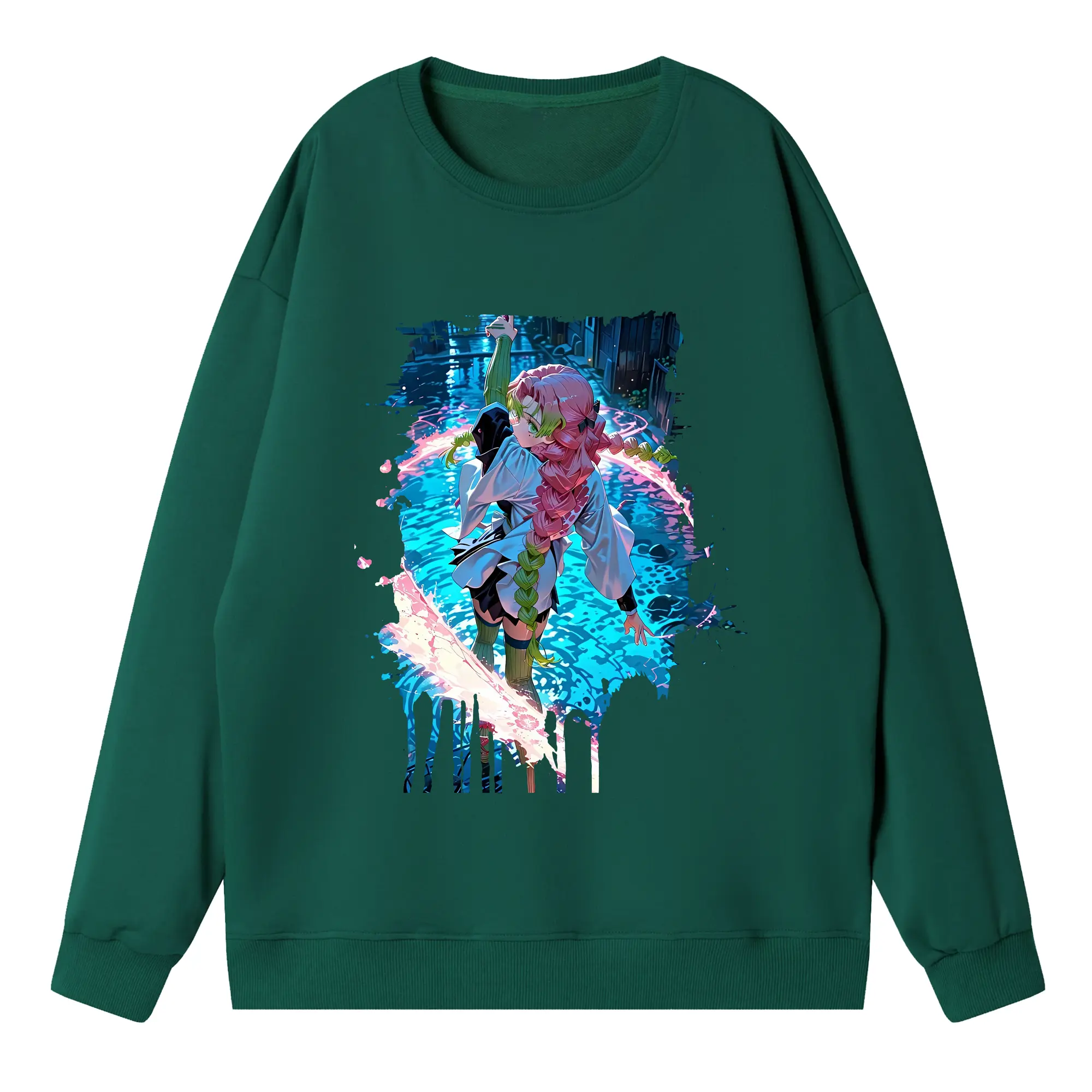 鬼滅の刃 グッズ,甘露寺 蜜璃 - 高品質 クルーネック スウェット ・ コットン59% ポリエステル41% ・ ユニセックス 長袖 トレーナー ・ カジュアル デイリー スポーツ 散歩用