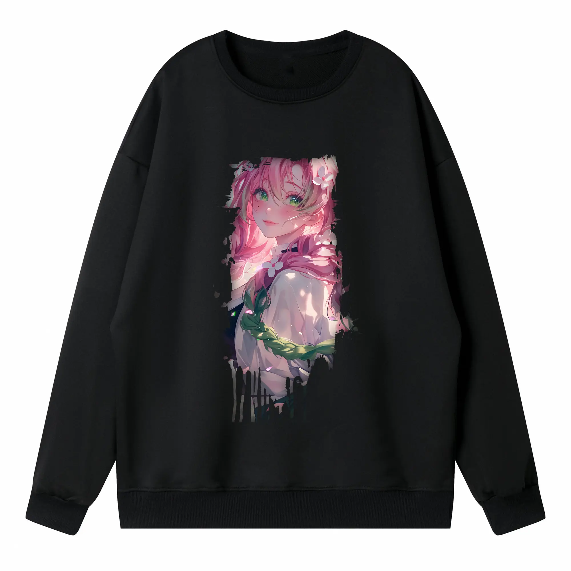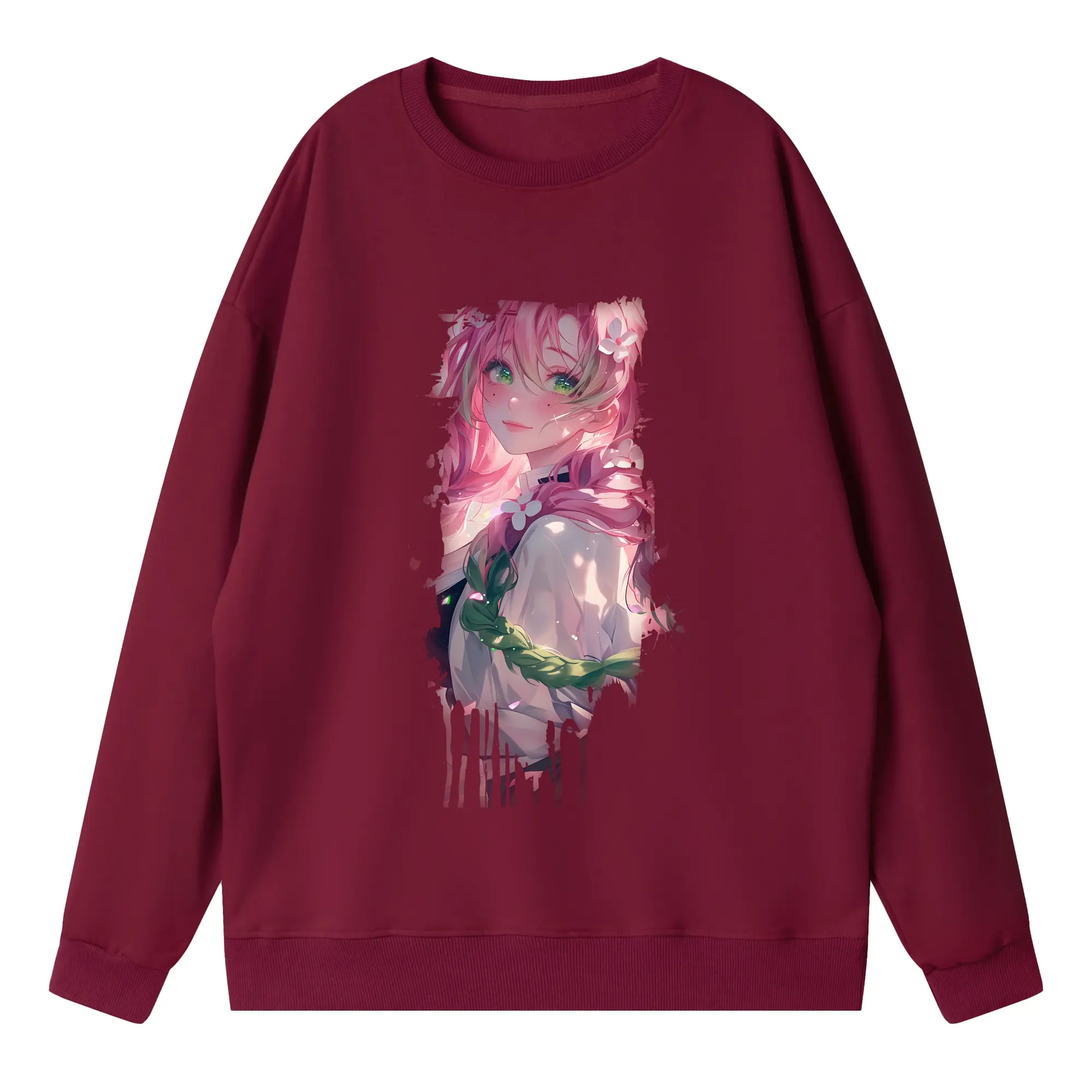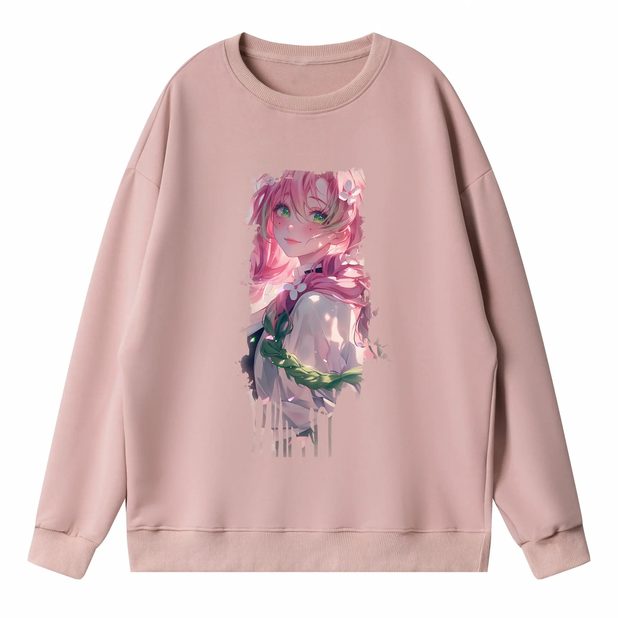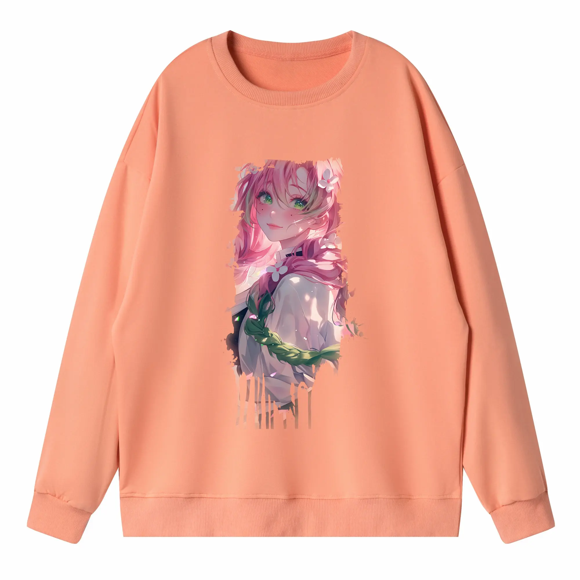 鬼滅の刃 グッズ,甘露寺 蜜璃 - 高品質 クルーネック スウェット ・ コットン59% ポリエステル41% ・ ユニセックス 長袖 トレーナー ・ カジュアル デイリー スポーツ 散歩用