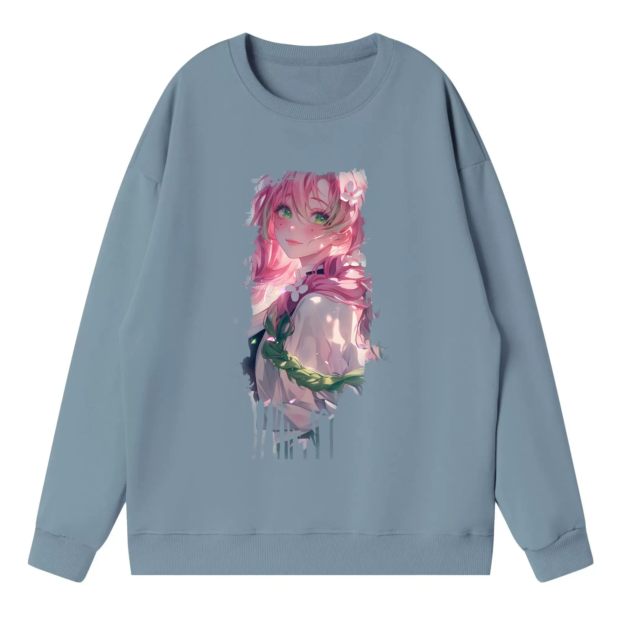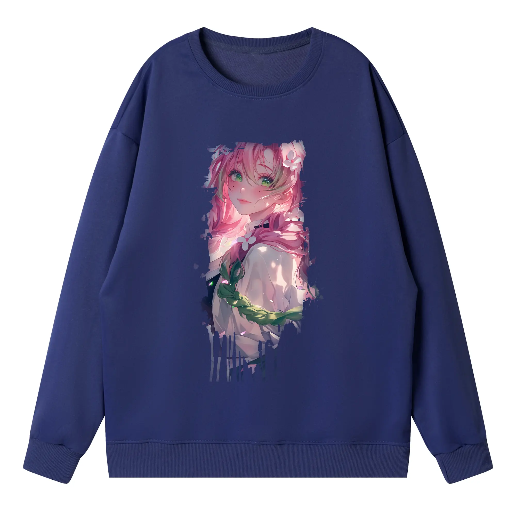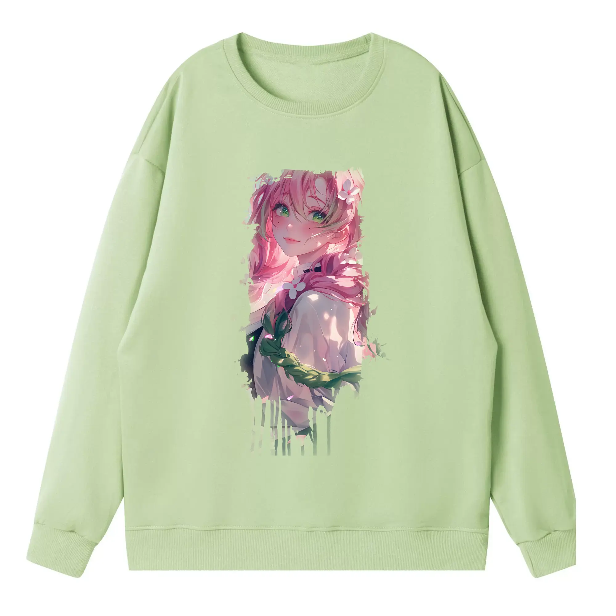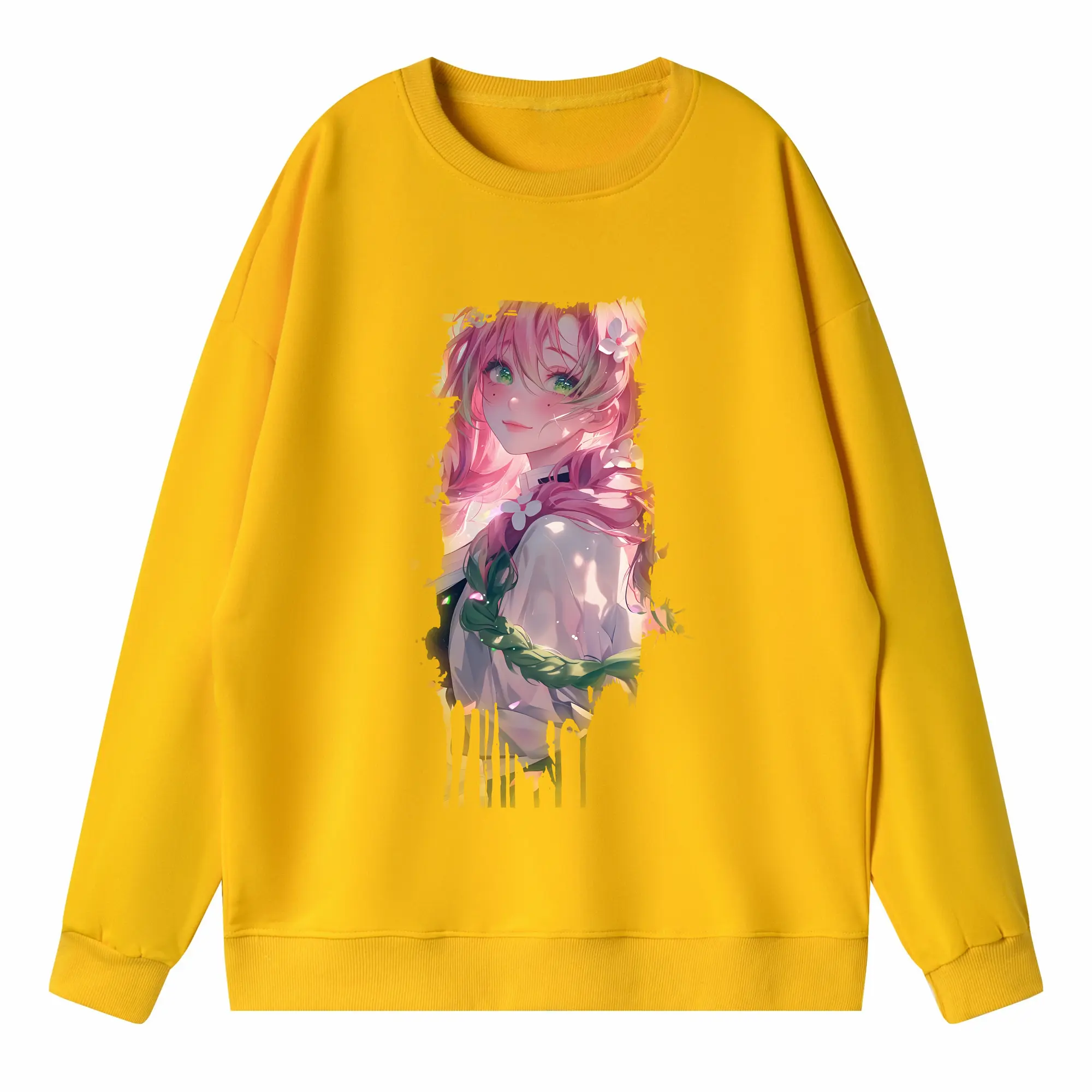鬼滅の刃 グッズ,甘露寺 蜜璃 - 高品質 クルーネック スウェット ・ コットン59% ポリエステル41% ・ ユニセックス 長袖 トレーナー ・ カジュアル デイリー スポーツ 散歩用