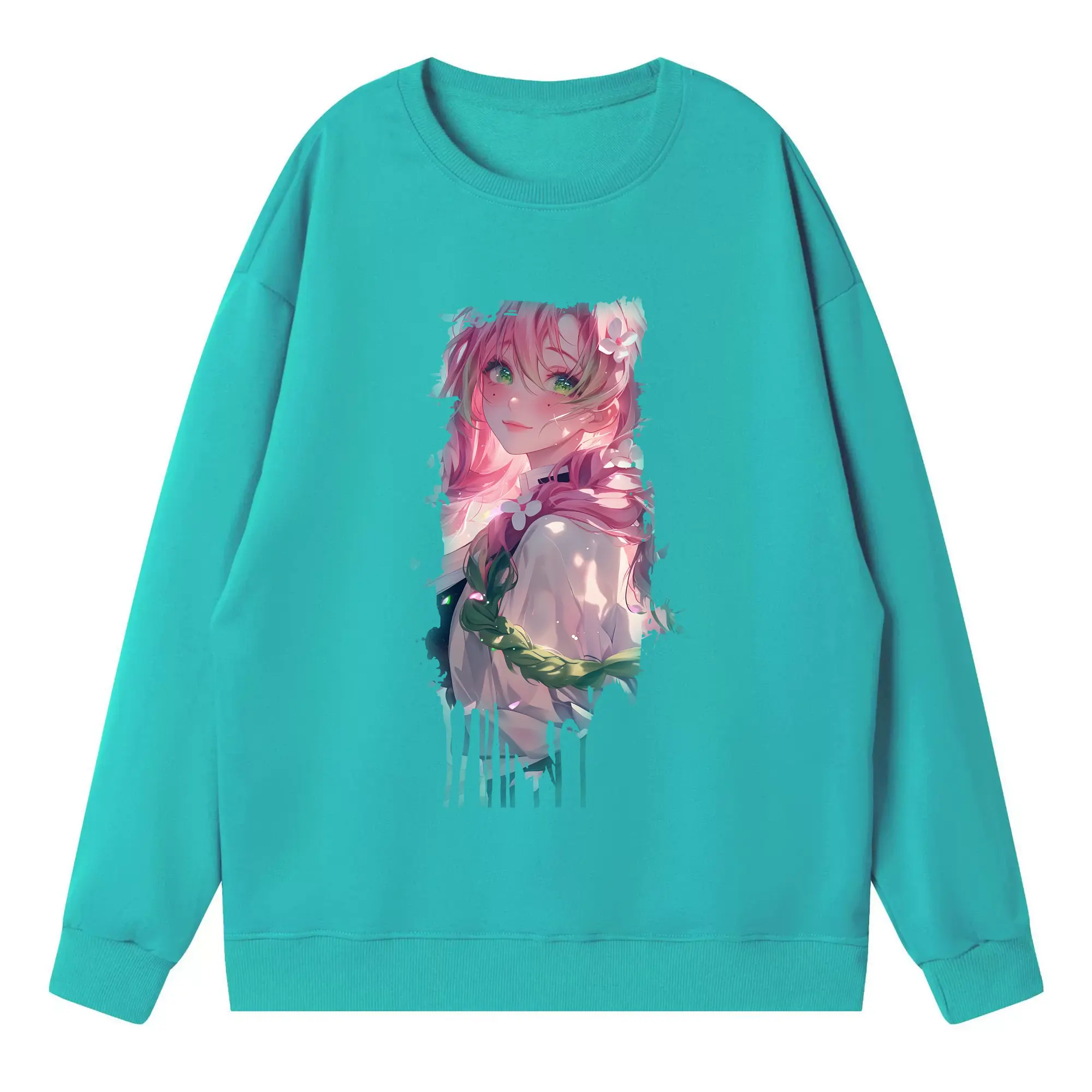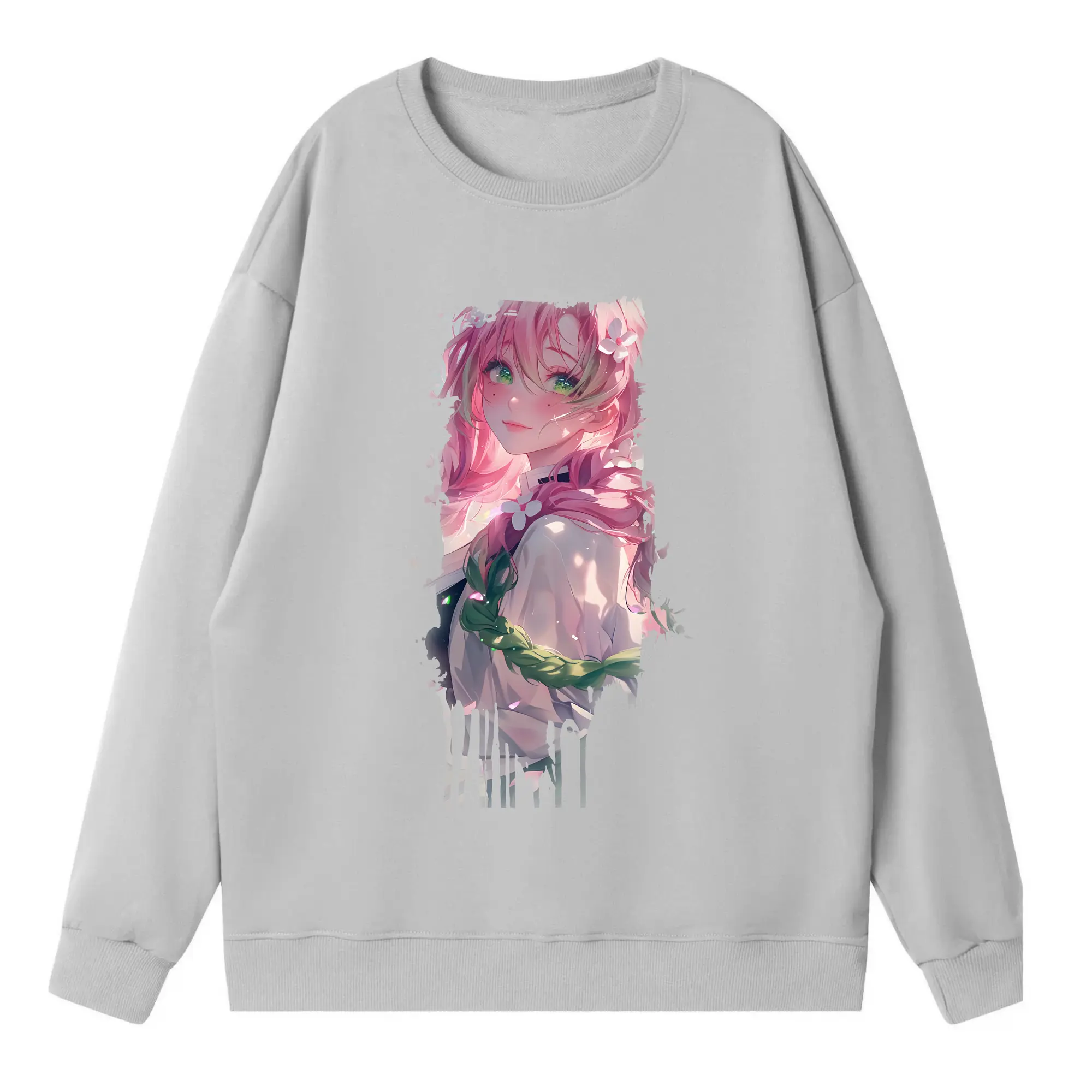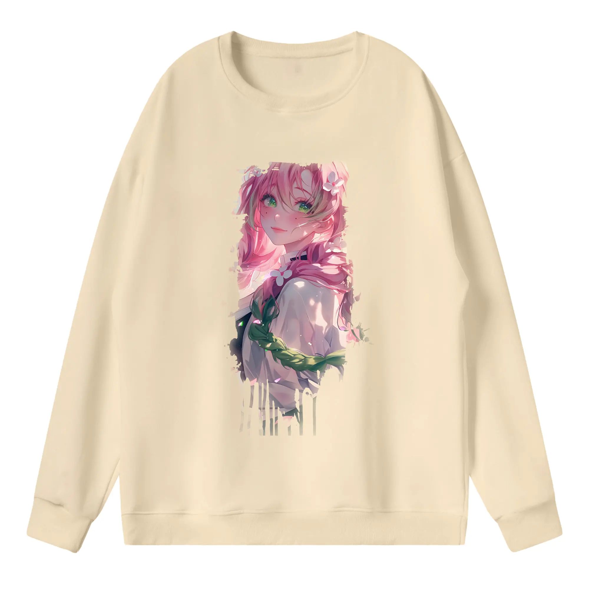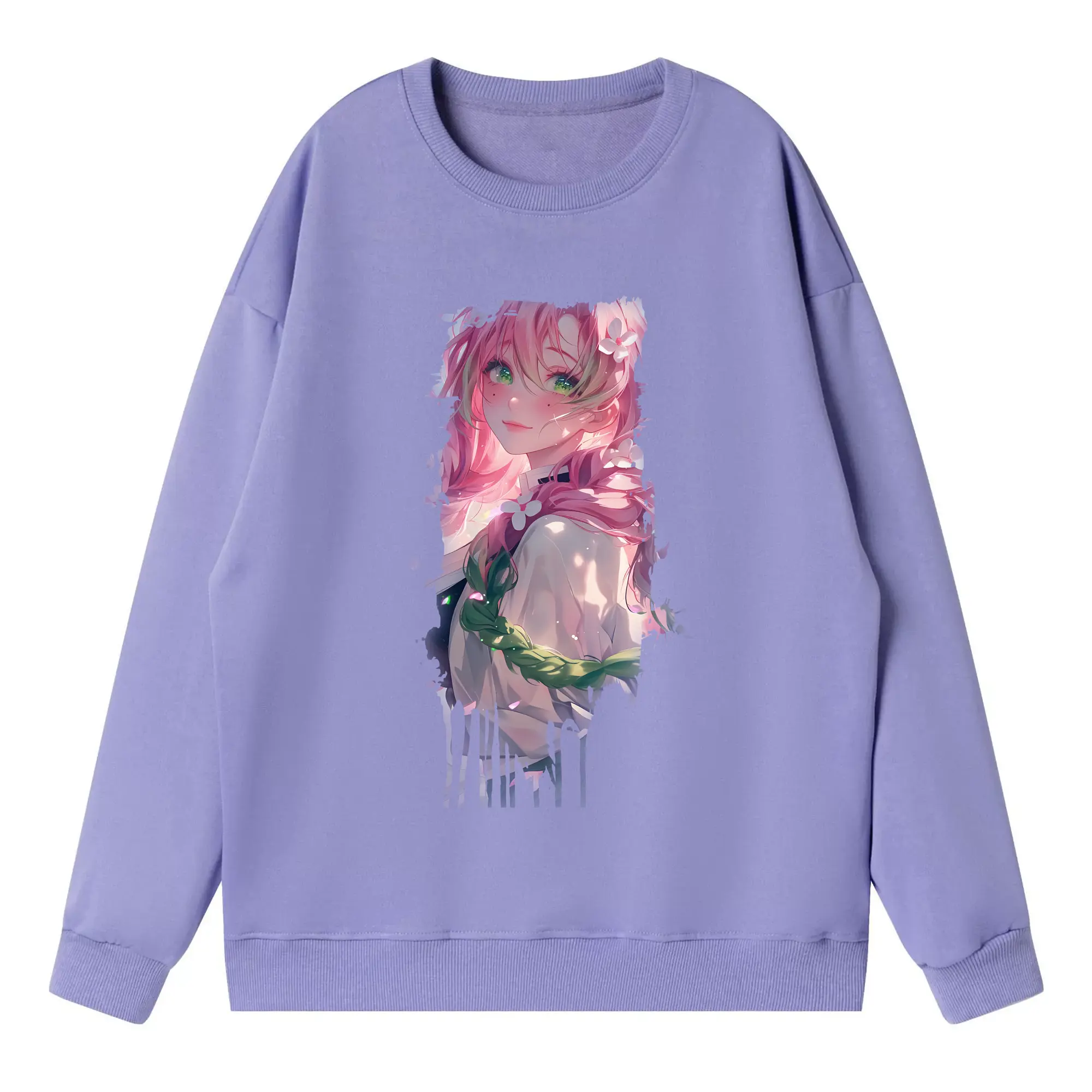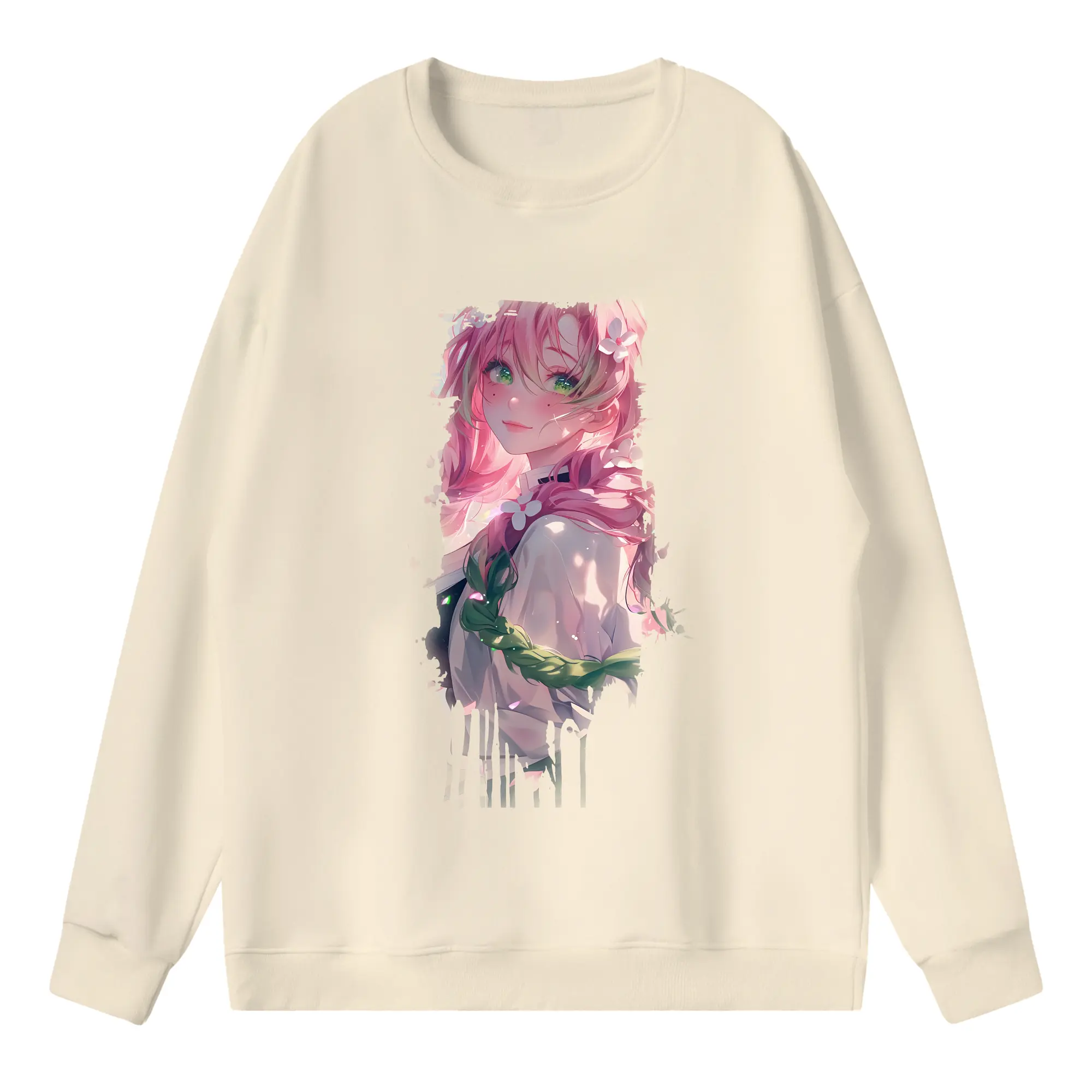 鬼滅の刃 グッズ,甘露寺 蜜璃 - 高品質 クルーネック スウェット ・ コットン59% ポリエステル41% ・ ユニセックス 長袖 トレーナー ・ カジュアル デイリー スポーツ 散歩用