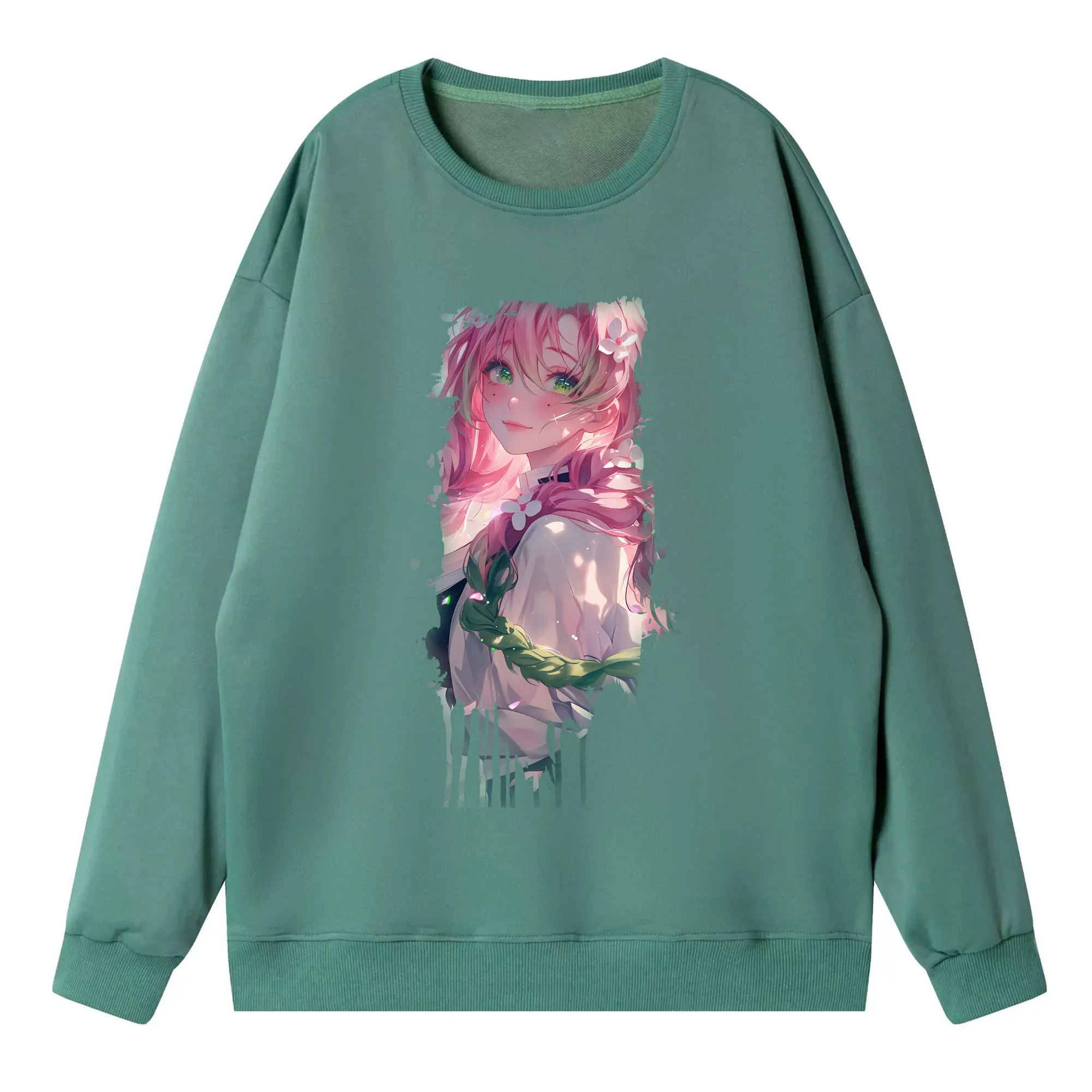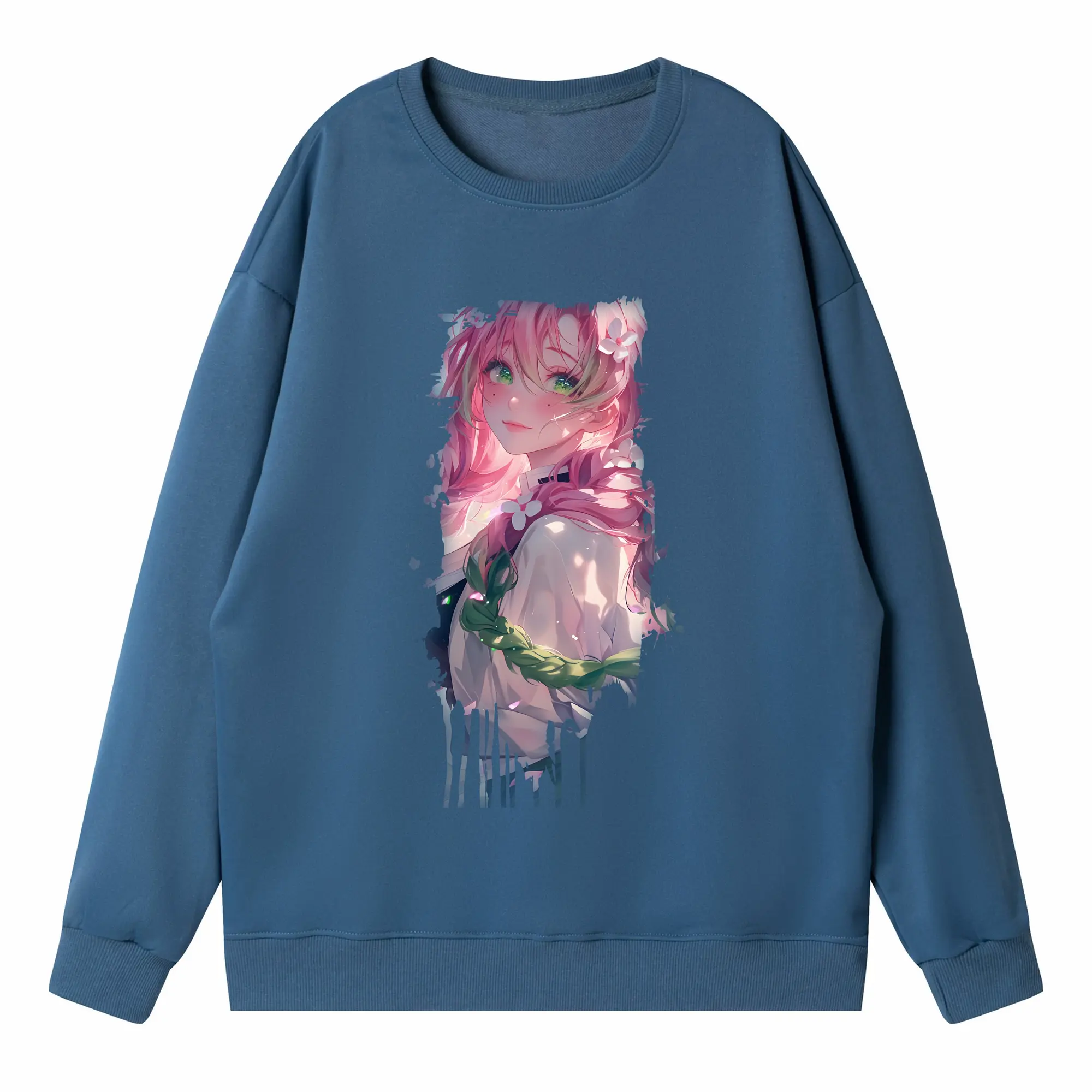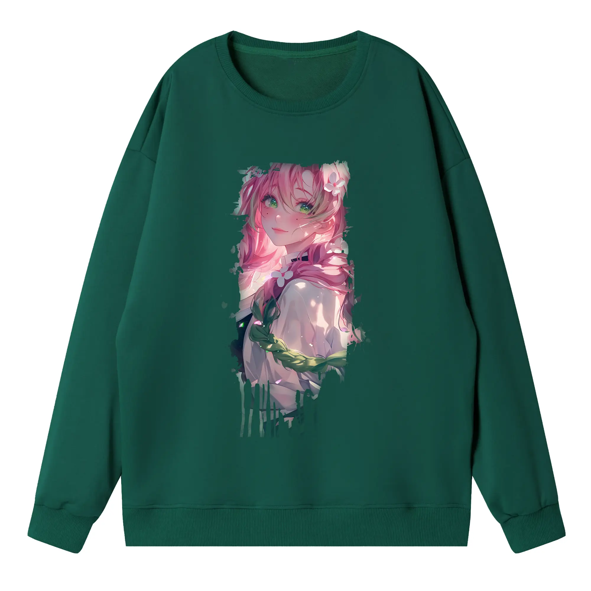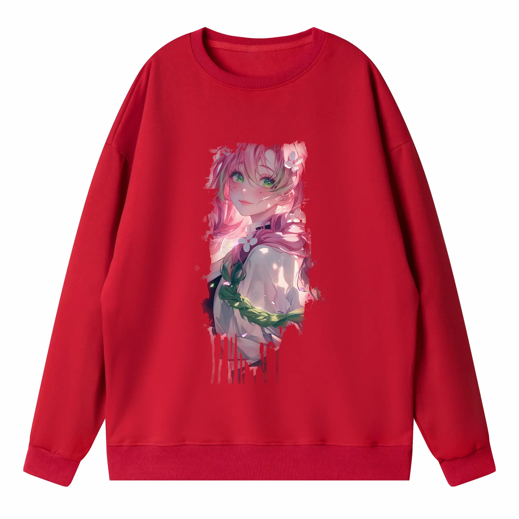 鬼滅の刃 グッズ,甘露寺 蜜璃 - 高品質 クルーネック スウェット ・ コットン59% ポリエステル41% ・ ユニセックス 長袖 トレーナー ・ カジュアル デイリー スポーツ 散歩用