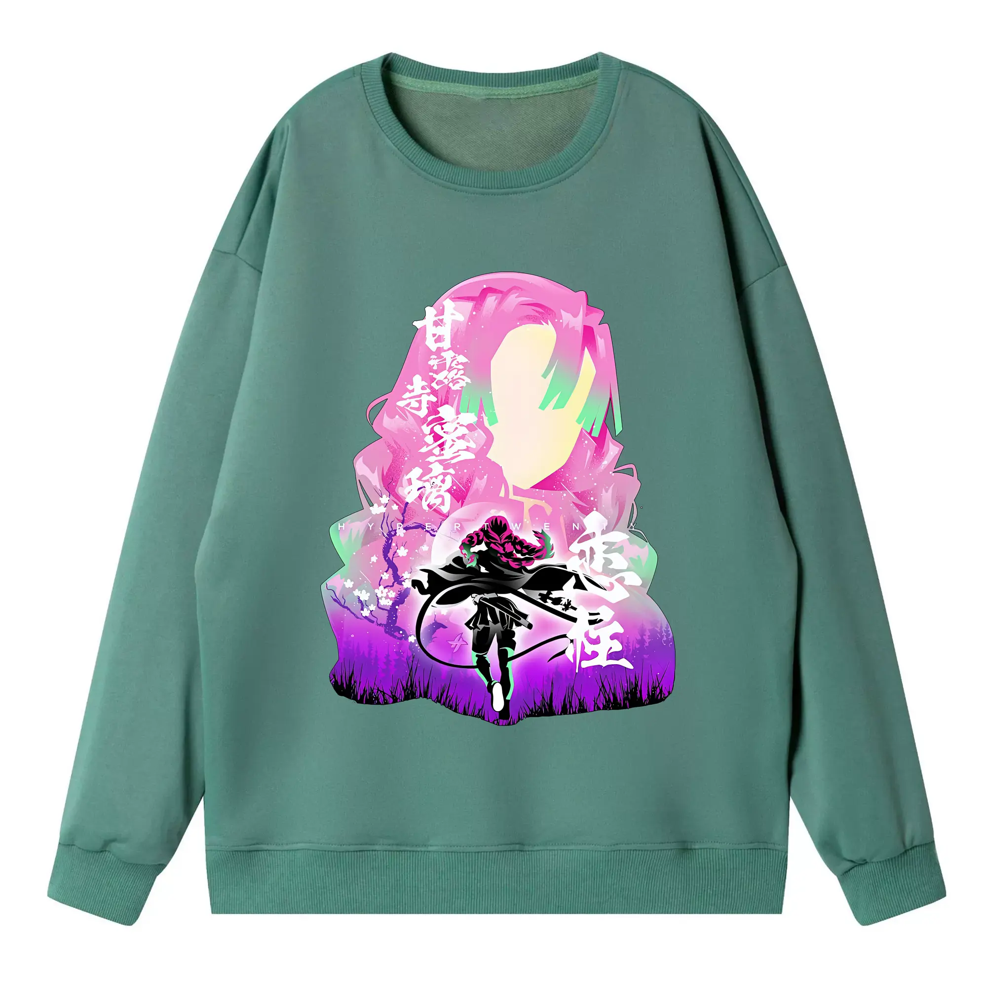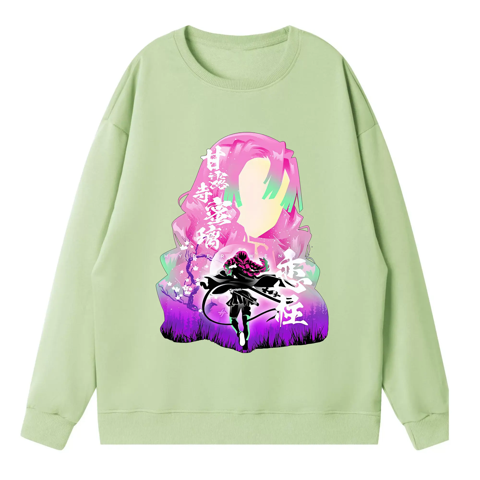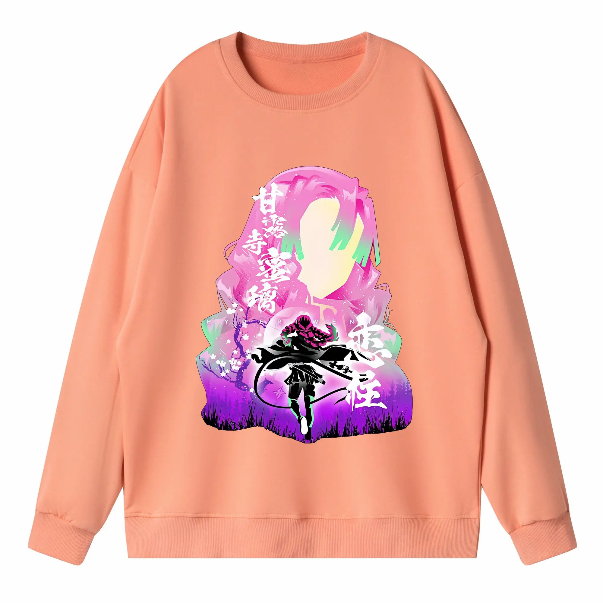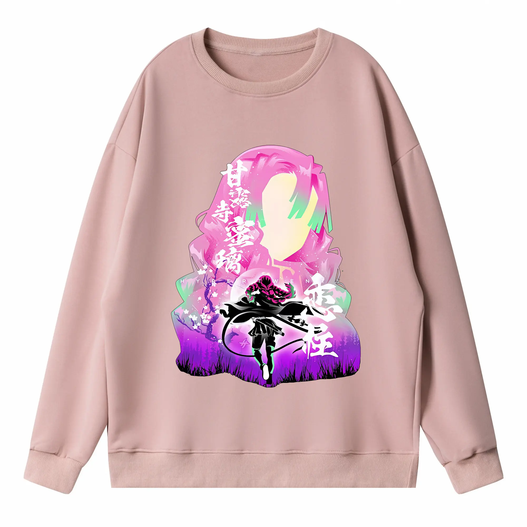鬼滅の刃 グッズ,甘露寺 蜜璃 - 高品質 クルーネック スウェット ・ コットン59% ポリエステル41% ・ ユニセックス 長袖 トレーナー ・ カジュアル デイリー スポーツ 散歩用