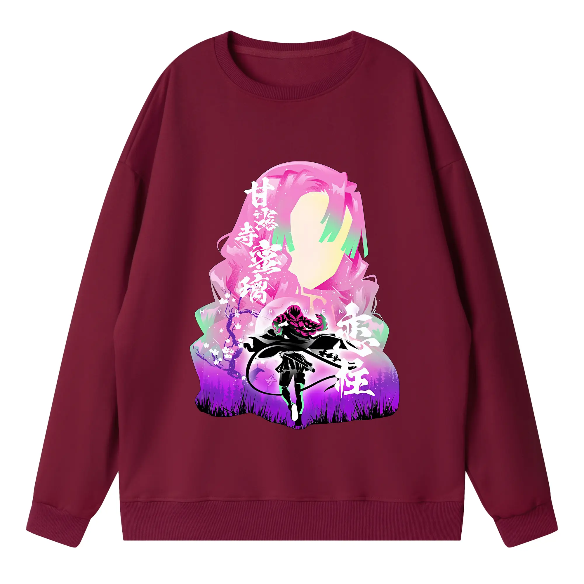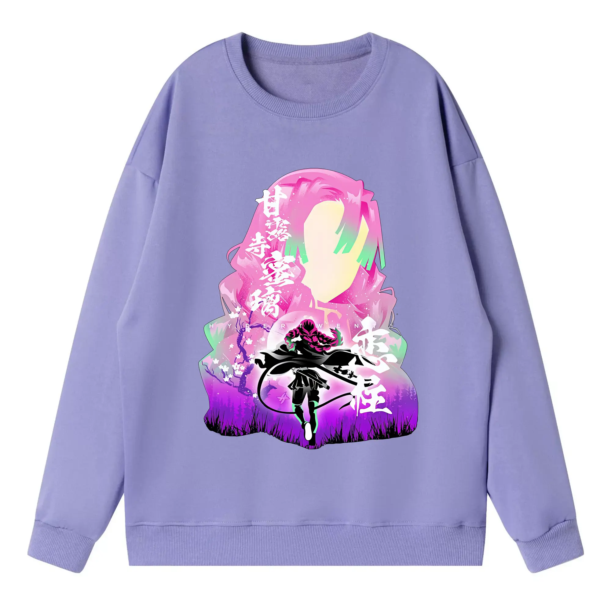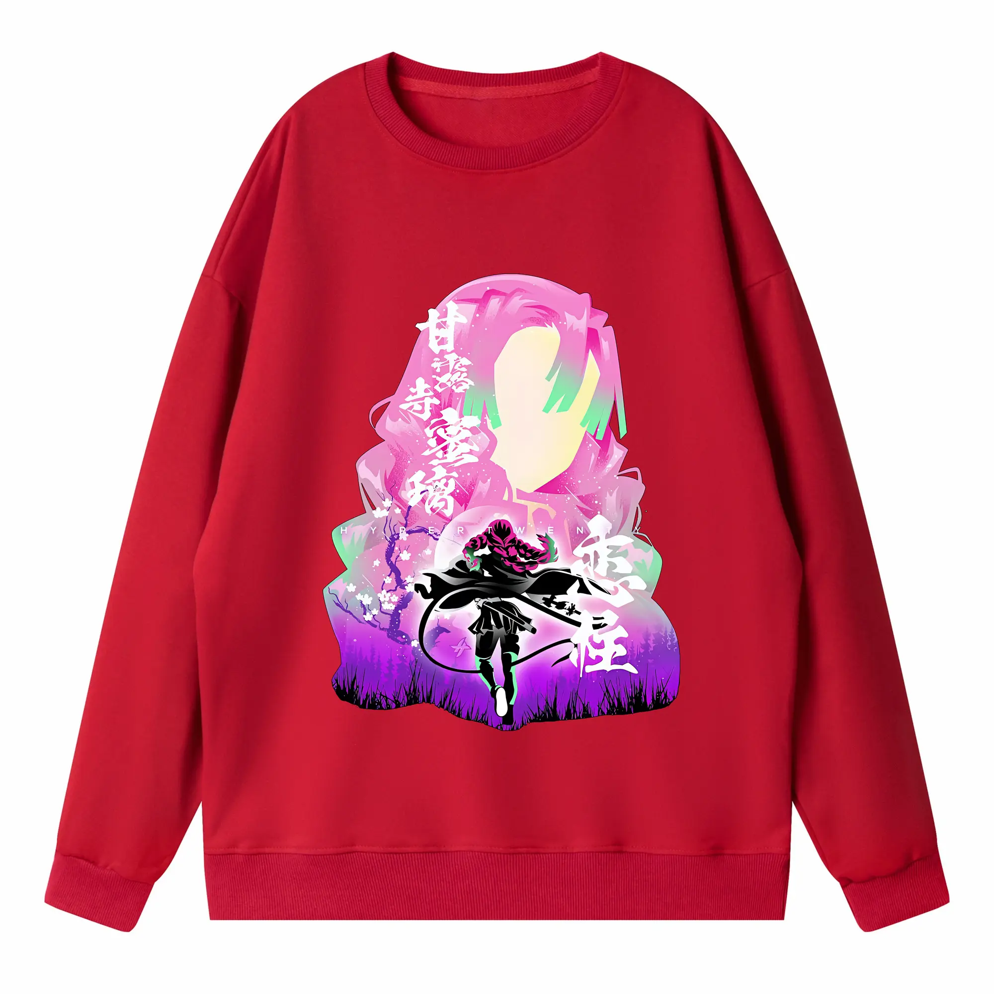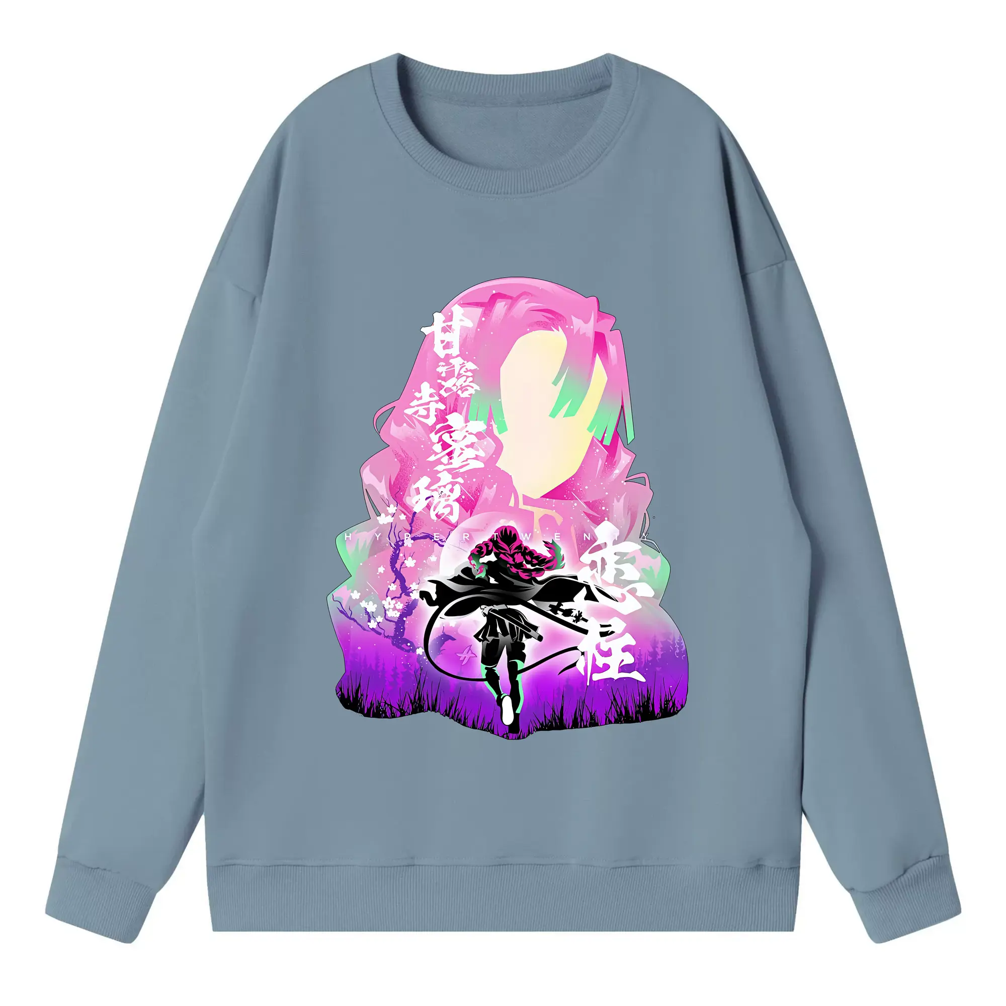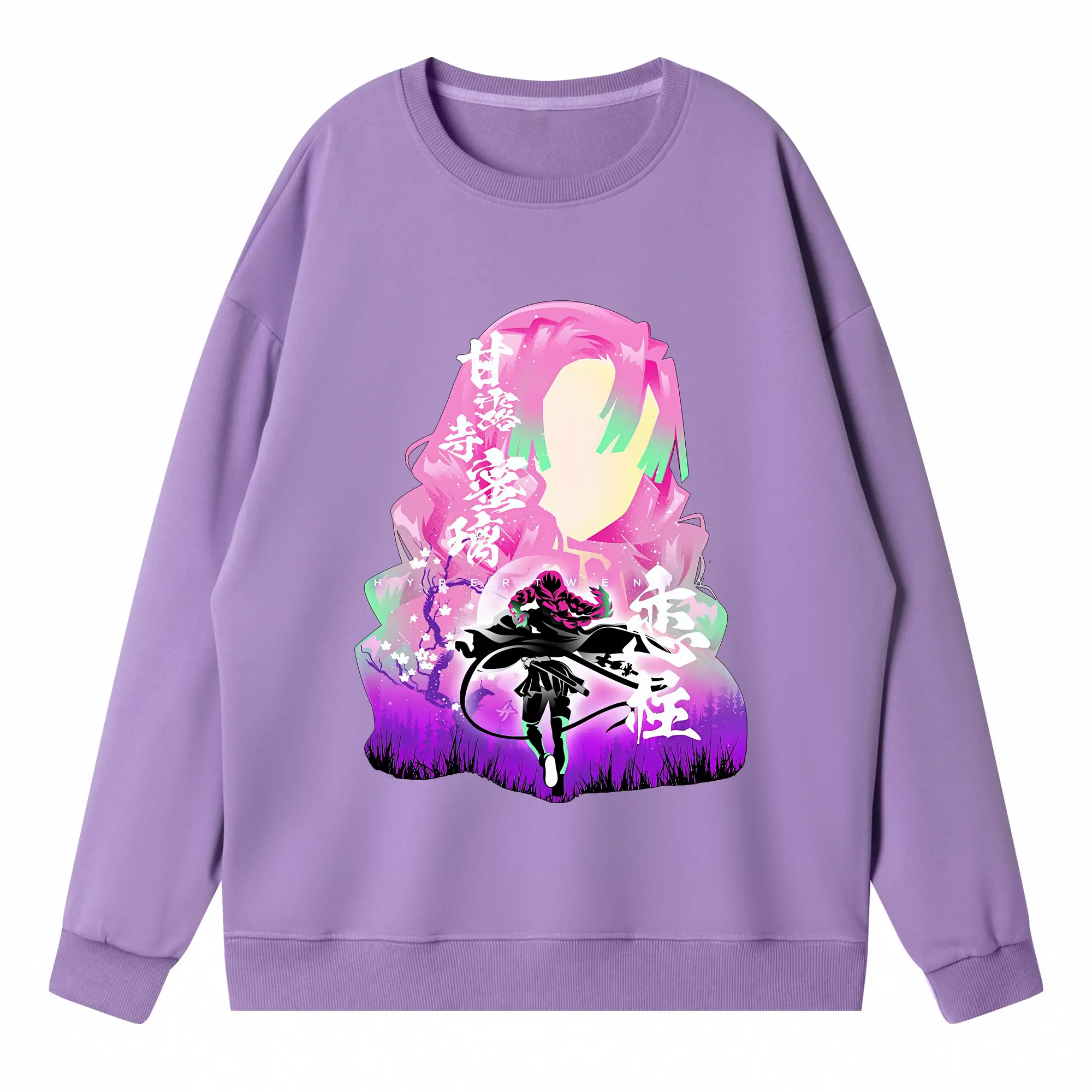 鬼滅の刃 グッズ,甘露寺 蜜璃 - 高品質 クルーネック スウェット ・ コットン59% ポリエステル41% ・ ユニセックス 長袖 トレーナー ・ カジュアル デイリー スポーツ 散歩用