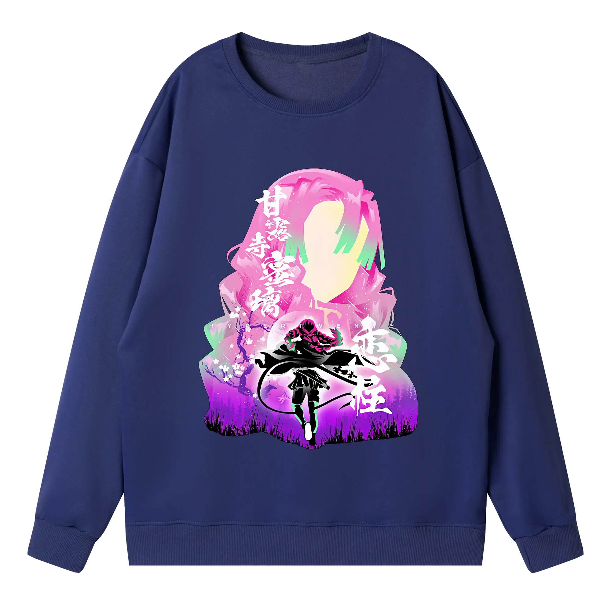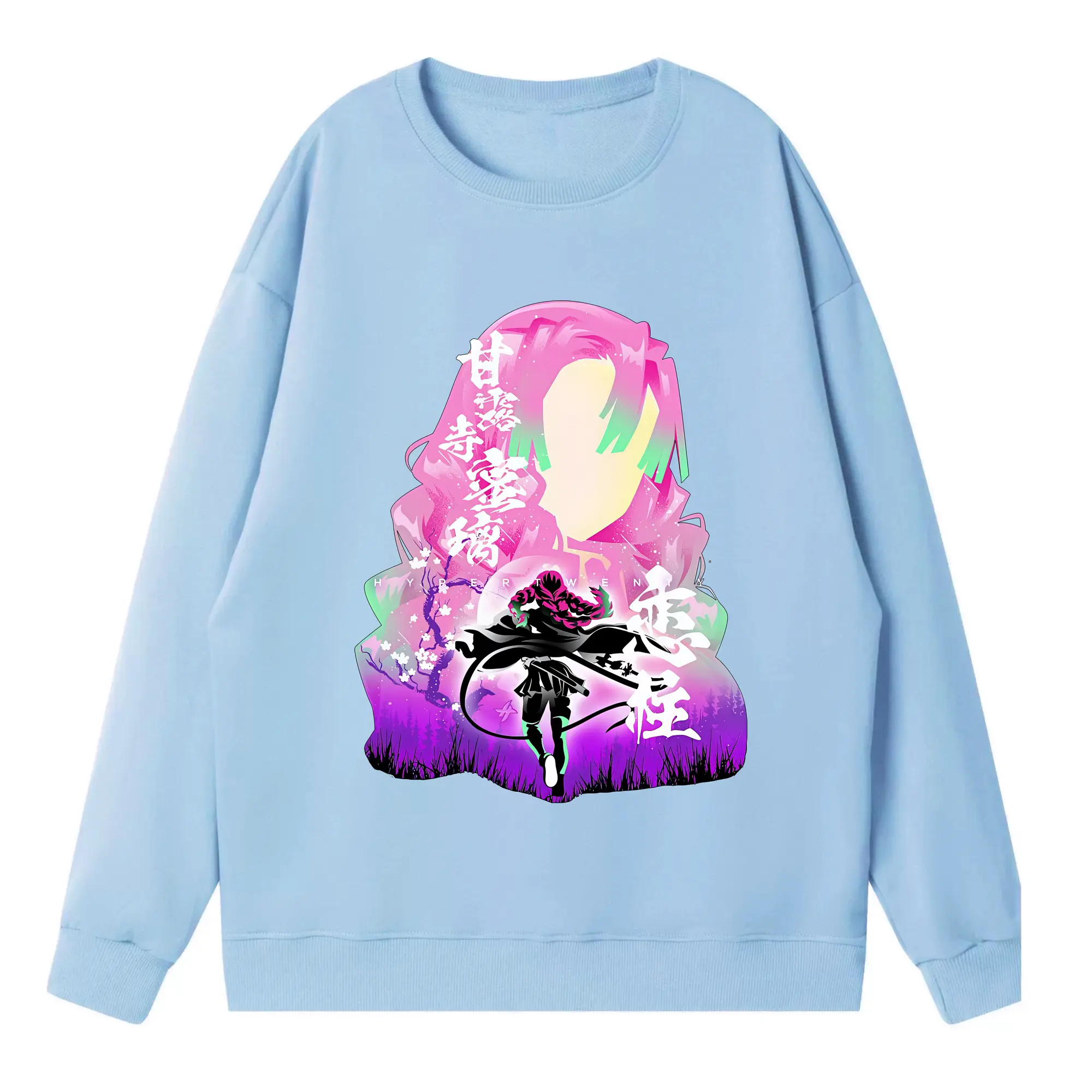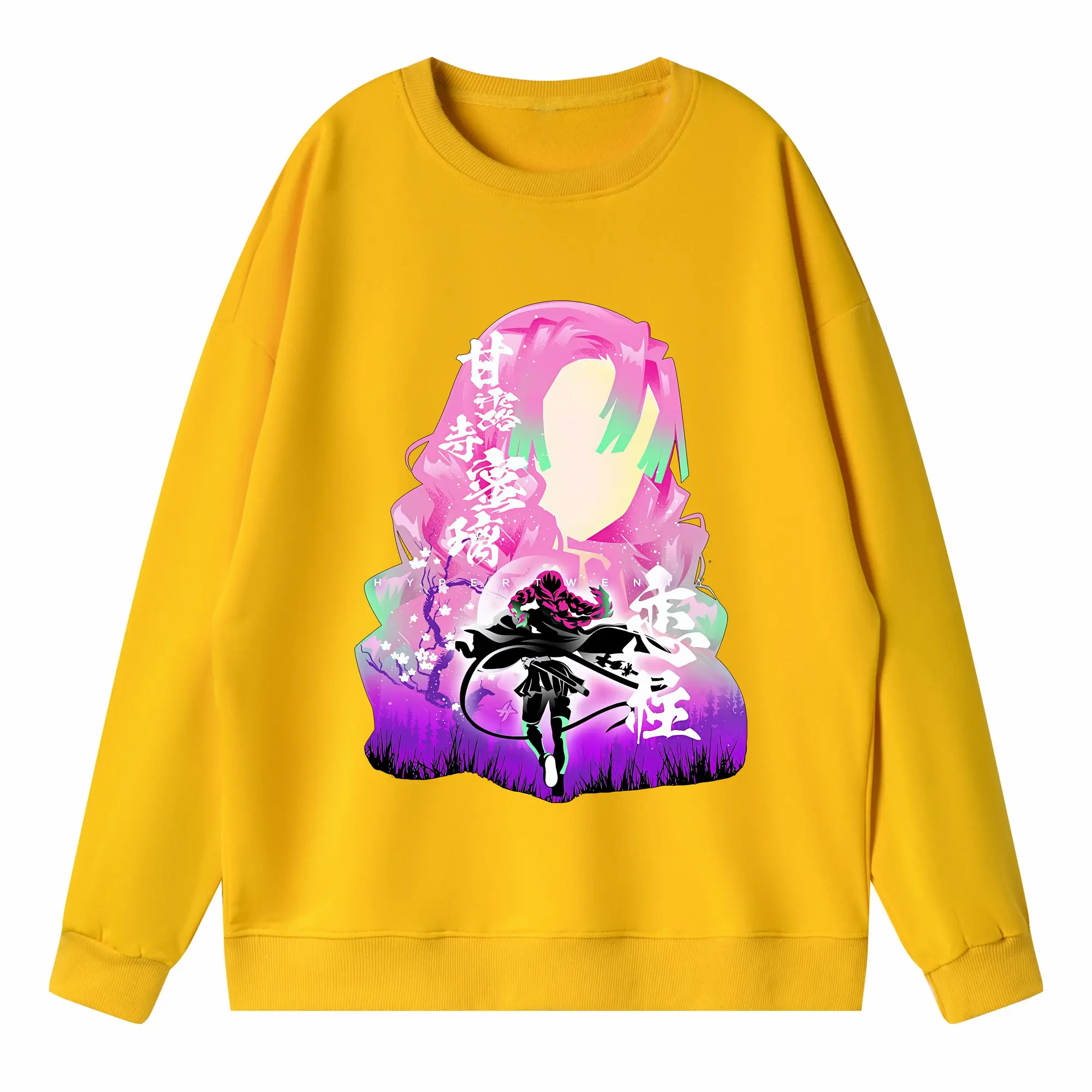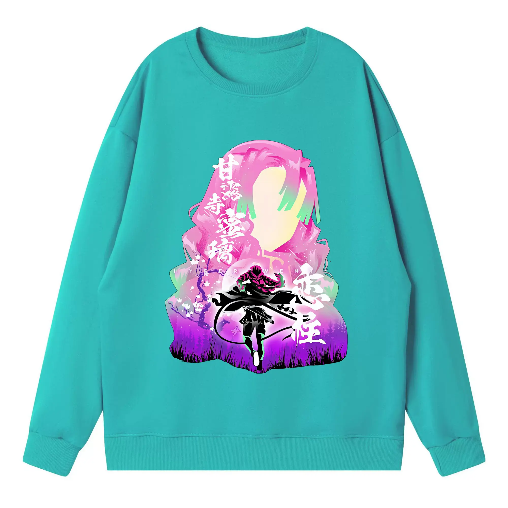 鬼滅の刃 グッズ,甘露寺 蜜璃 - 高品質 クルーネック スウェット ・ コットン59% ポリエステル41% ・ ユニセックス 長袖 トレーナー ・ カジュアル デイリー スポーツ 散歩用