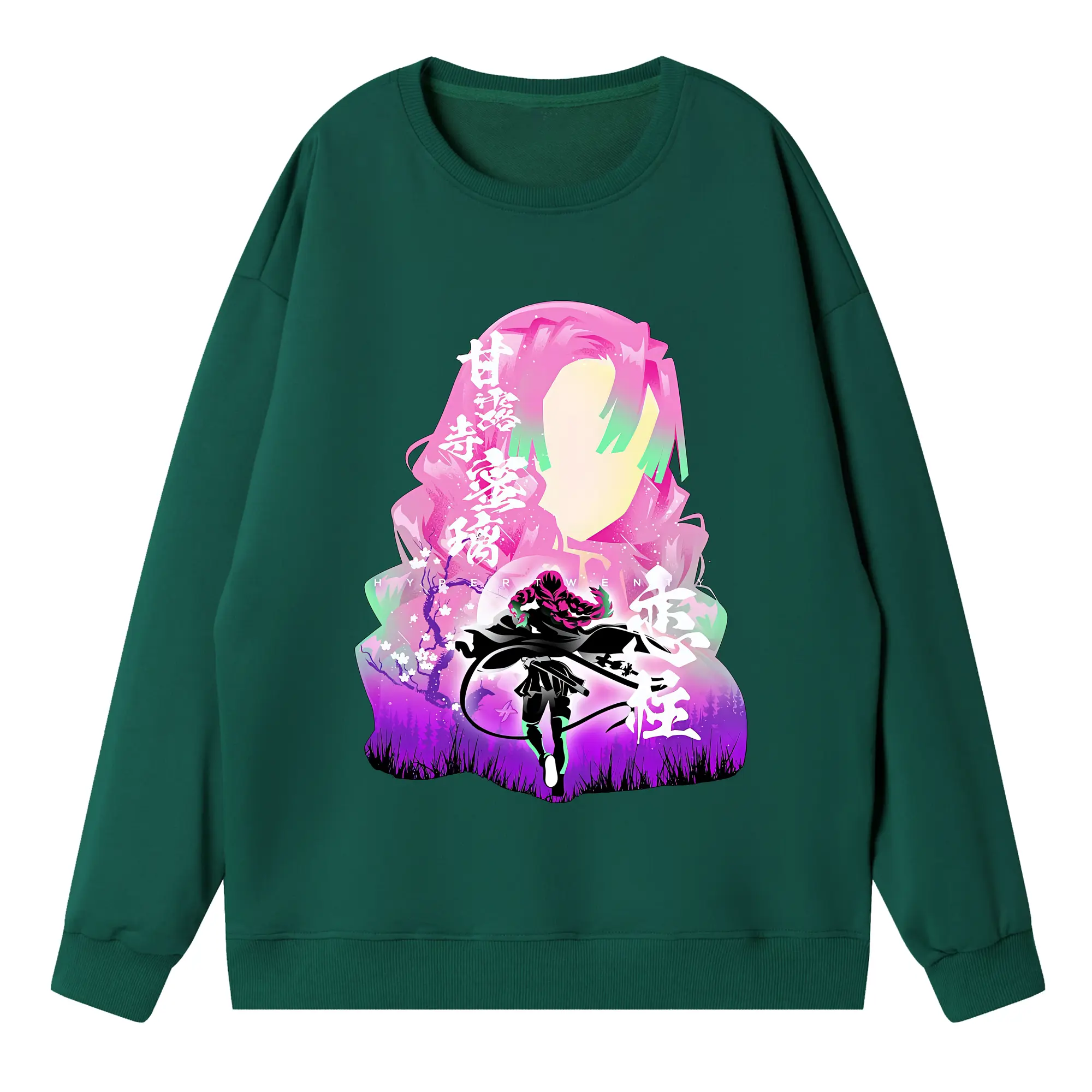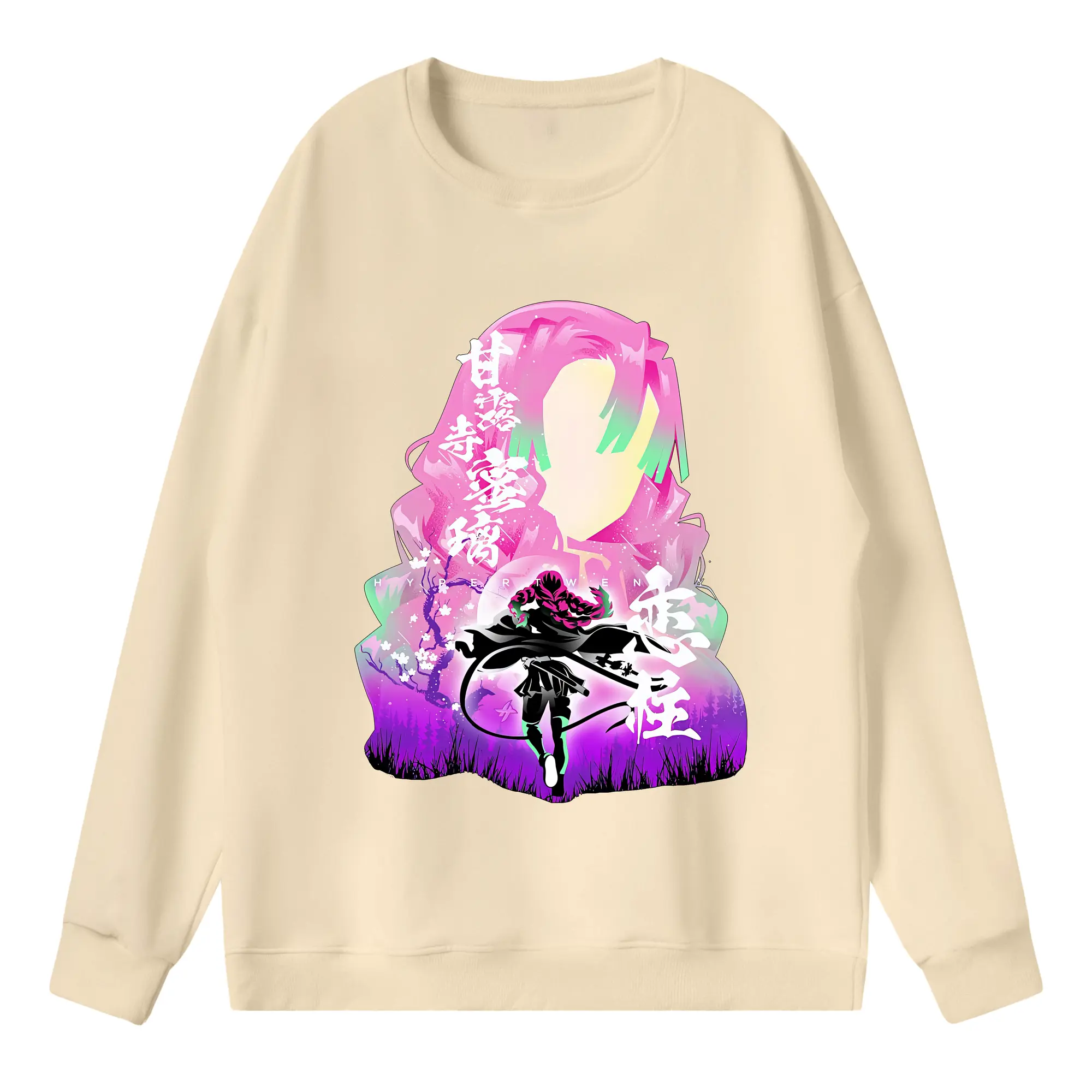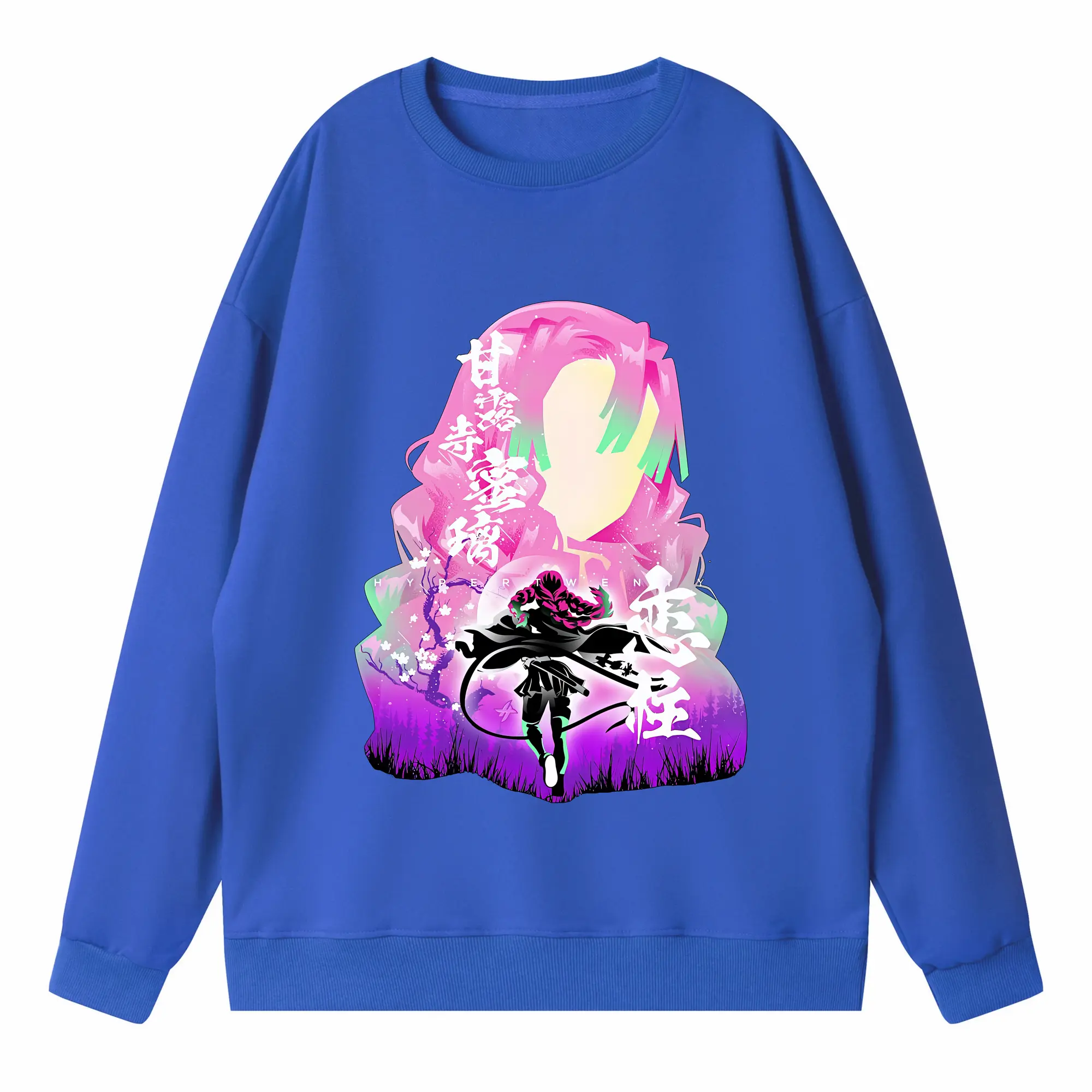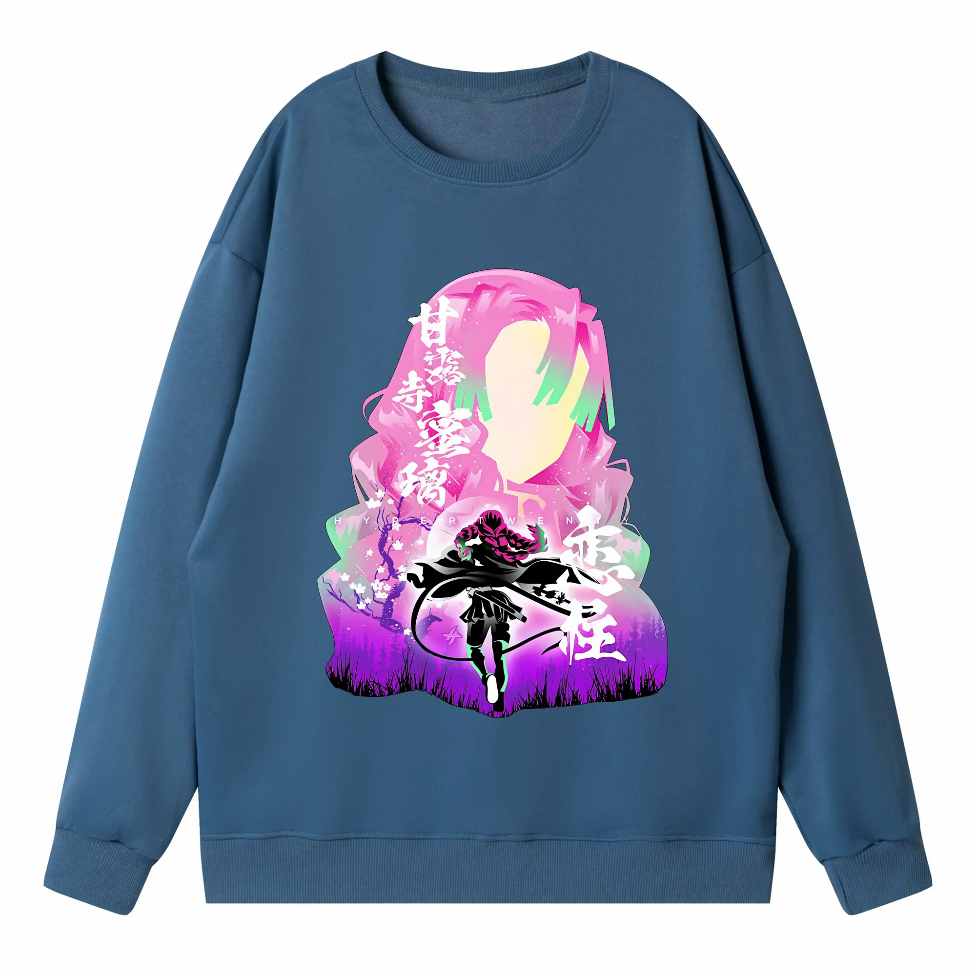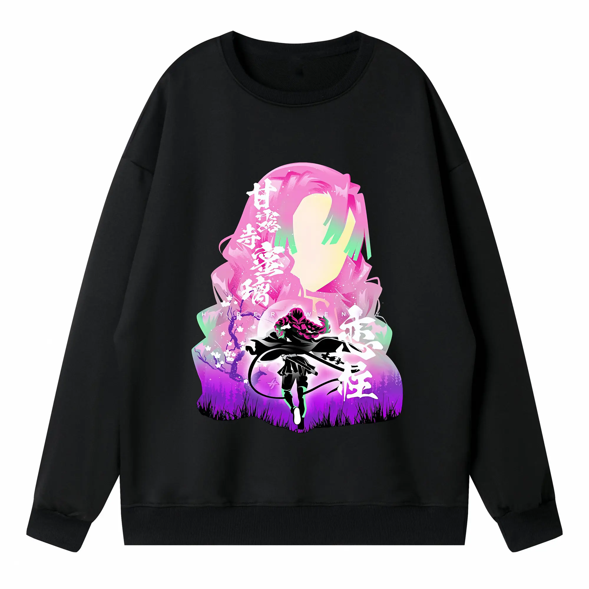 鬼滅の刃 グッズ,甘露寺 蜜璃 - 高品質 クルーネック スウェット ・ コットン59% ポリエステル41% ・ ユニセックス 長袖 トレーナー ・ カジュアル デイリー スポーツ 散歩用