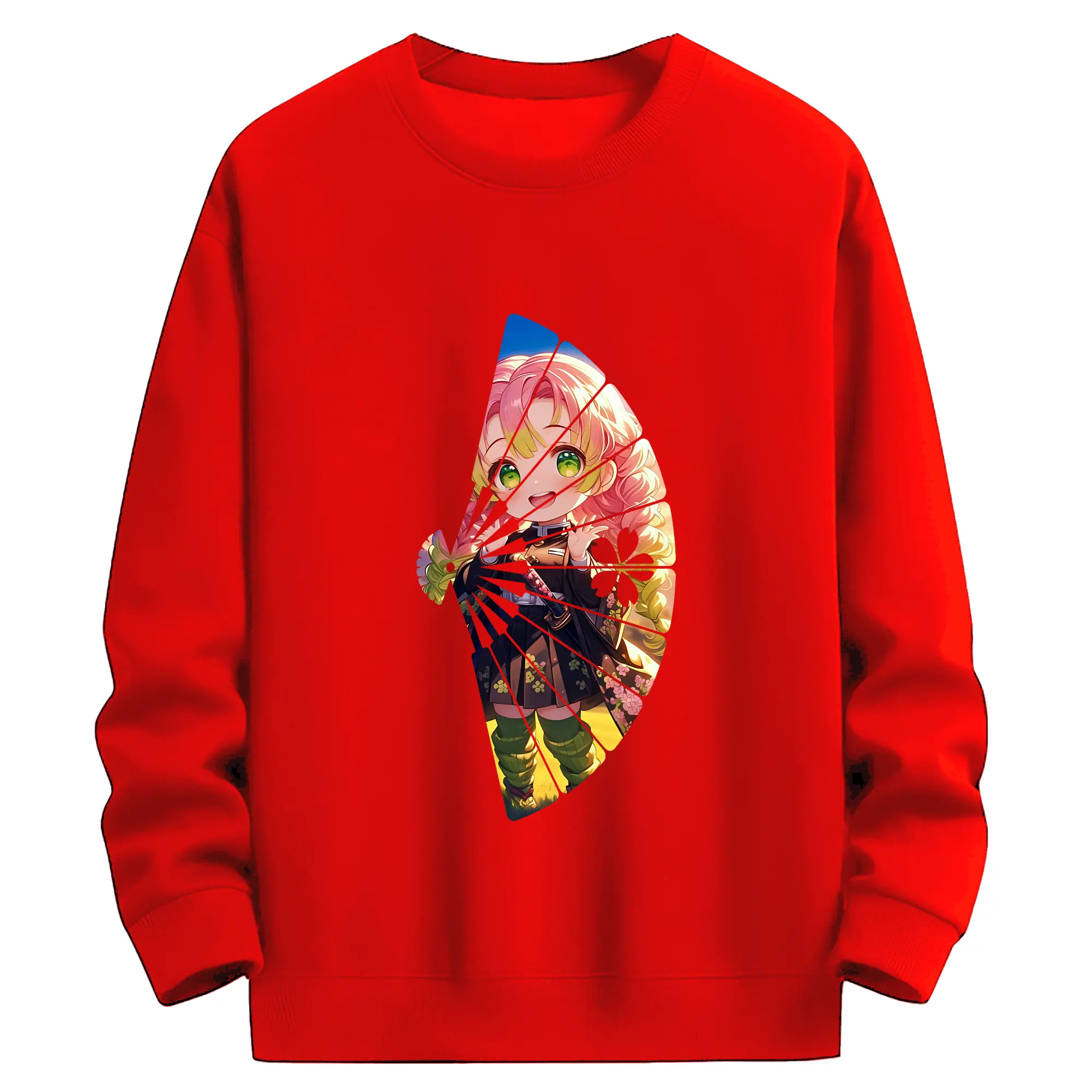 鬼滅の刃 グッズ,甘露寺 蜜璃 - 高品質 クルーネック スウェット ・ コットン59% ポリエステル41% ・ ユニセックス 長袖 トレーナー ・ カジュアル デイリー スポーツ 散歩用