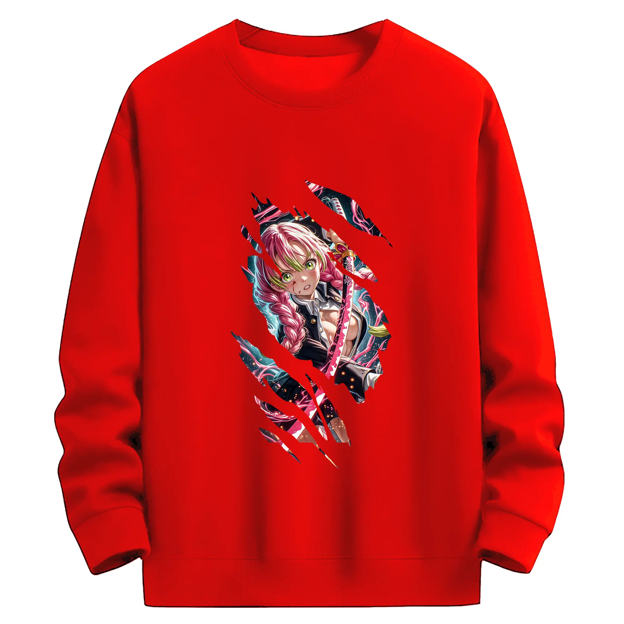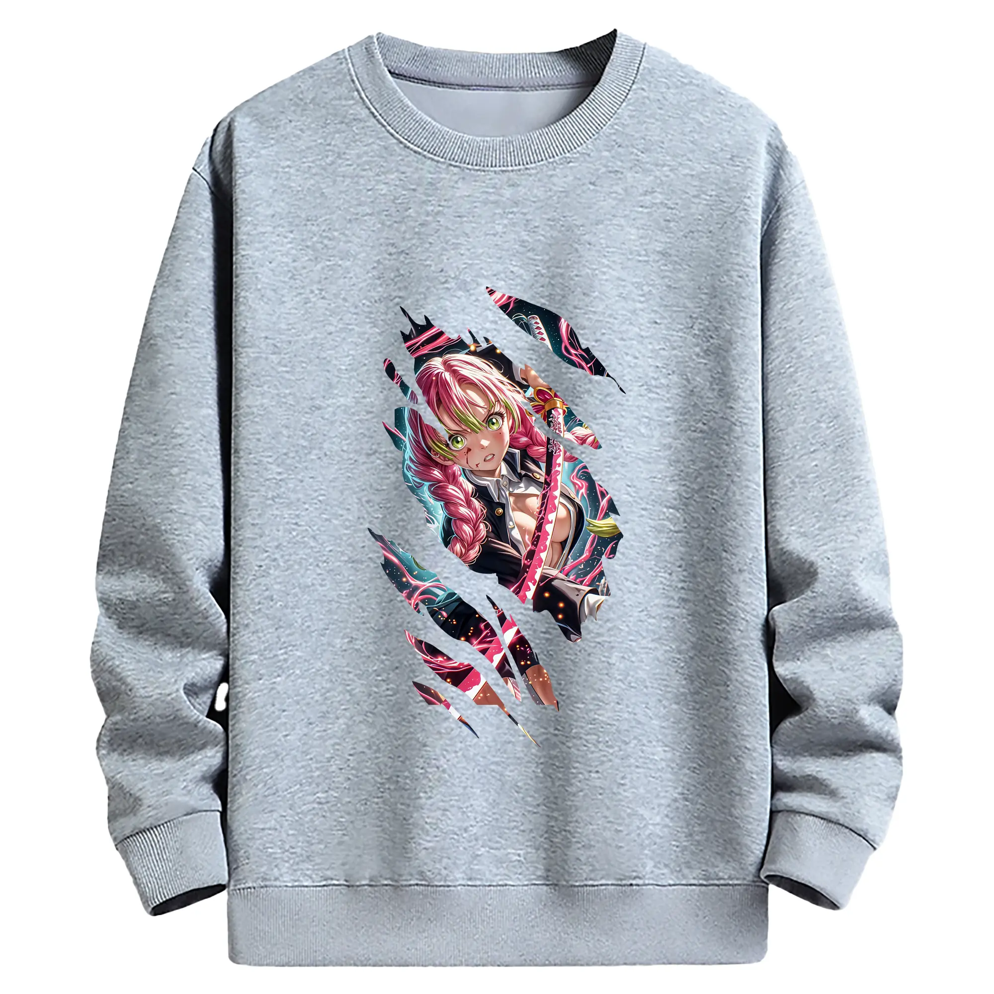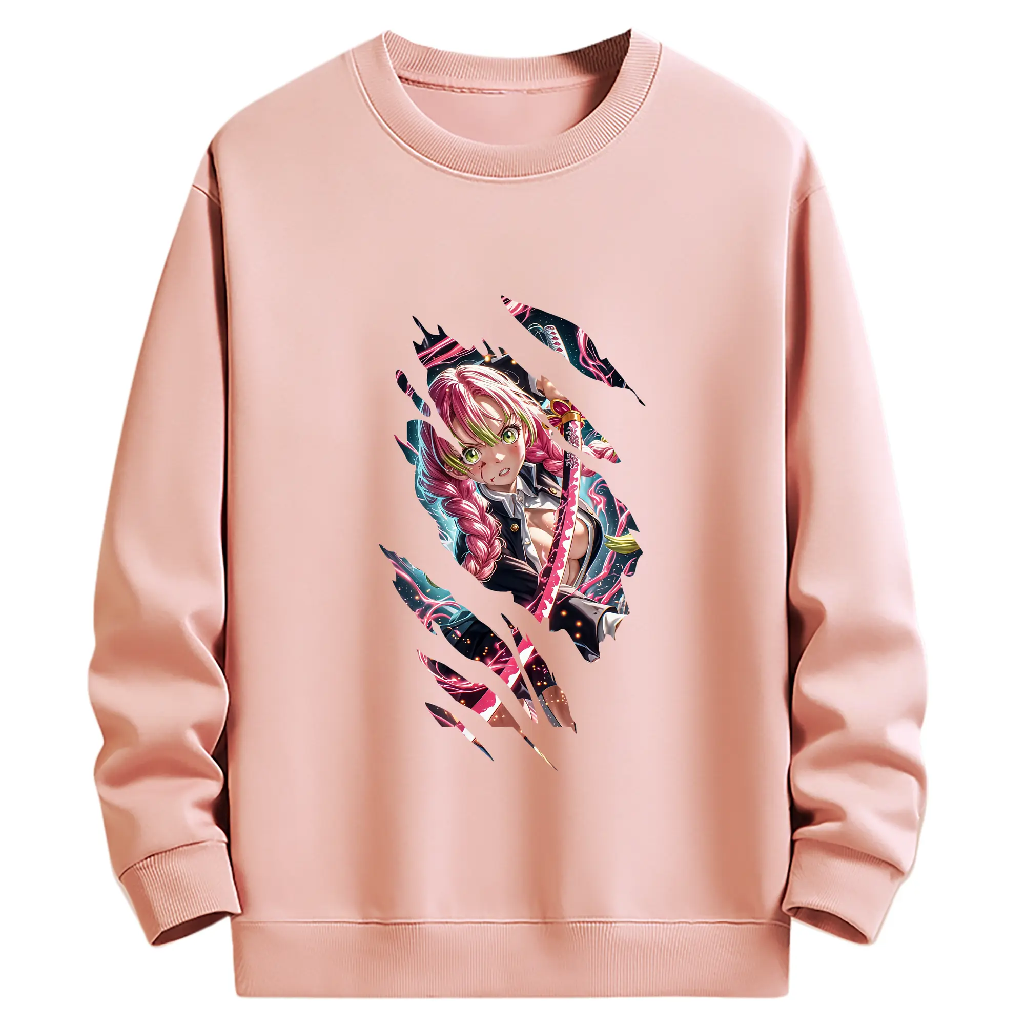 鬼滅の刃 グッズ,甘露寺 蜜璃 - 高品質 クルーネック スウェット ・ コットン59% ポリエステル41% ・ ユニセックス 長袖 トレーナー ・ カジュアル デイリー スポーツ 散歩用