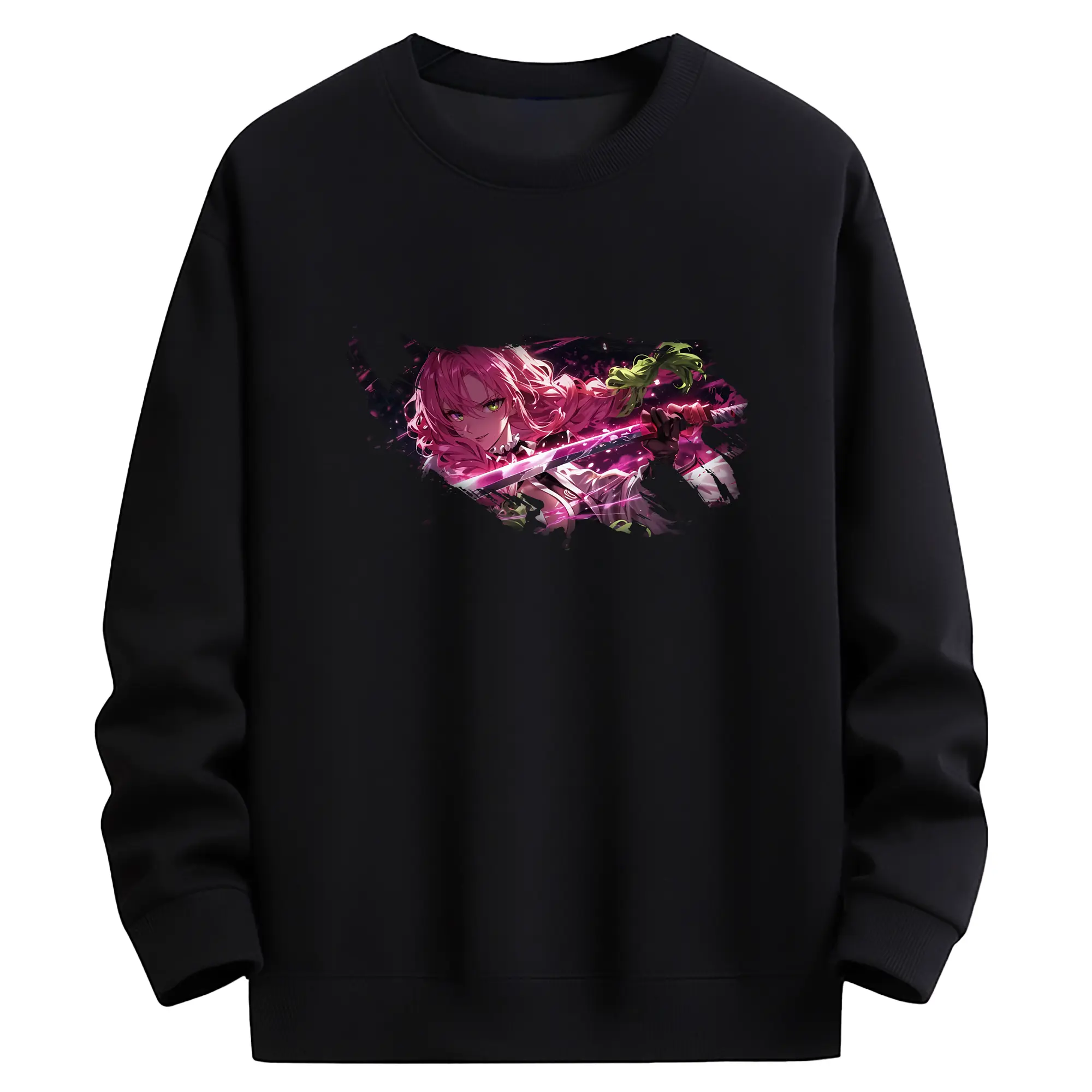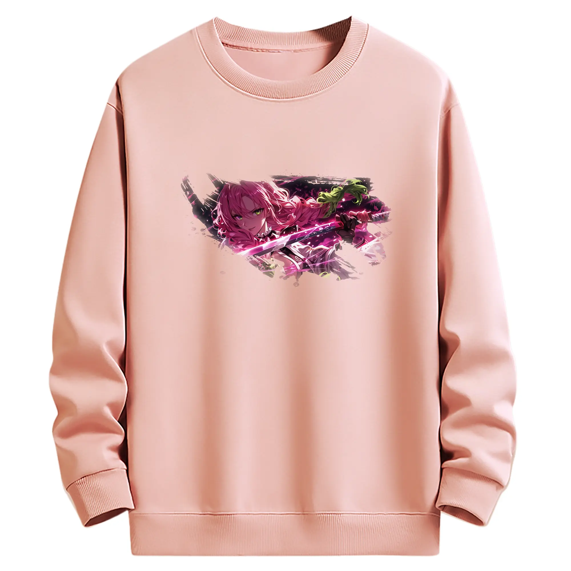鬼滅の刃 グッズ,甘露寺 蜜璃 - 高品質 クルーネック スウェット ・ コットン59% ポリエステル41% ・ ユニセックス 長袖 トレーナー ・ カジュアル デイリー スポーツ 散歩用