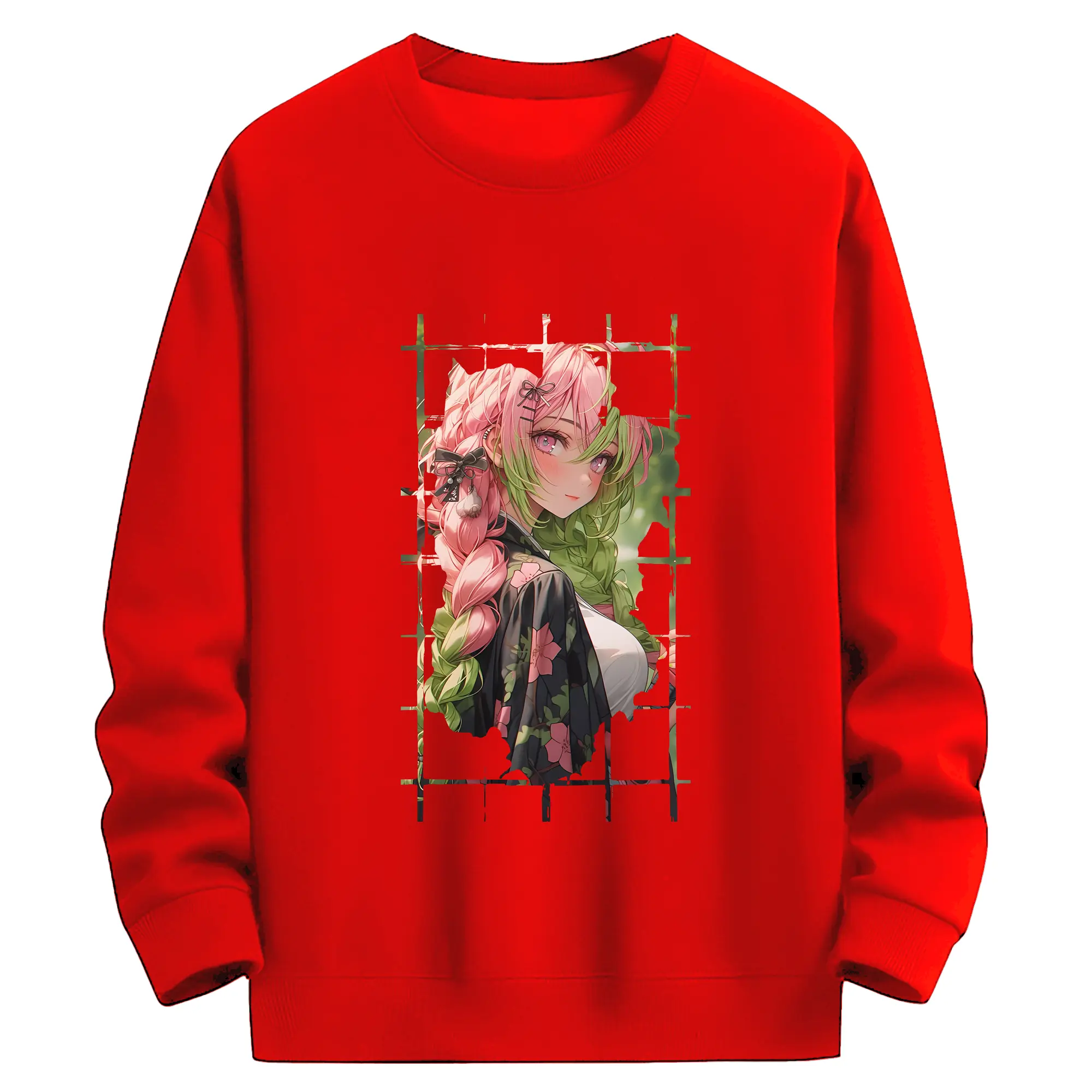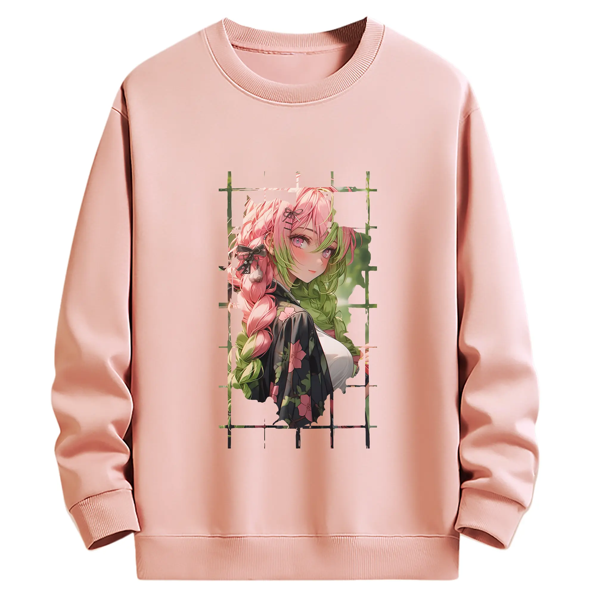 鬼滅の刃 グッズ,甘露寺 蜜璃 - 高品質 クルーネック スウェット ・ コットン59% ポリエステル41% ・ ユニセックス 長袖 トレーナー ・ カジュアル デイリー スポーツ 散歩用