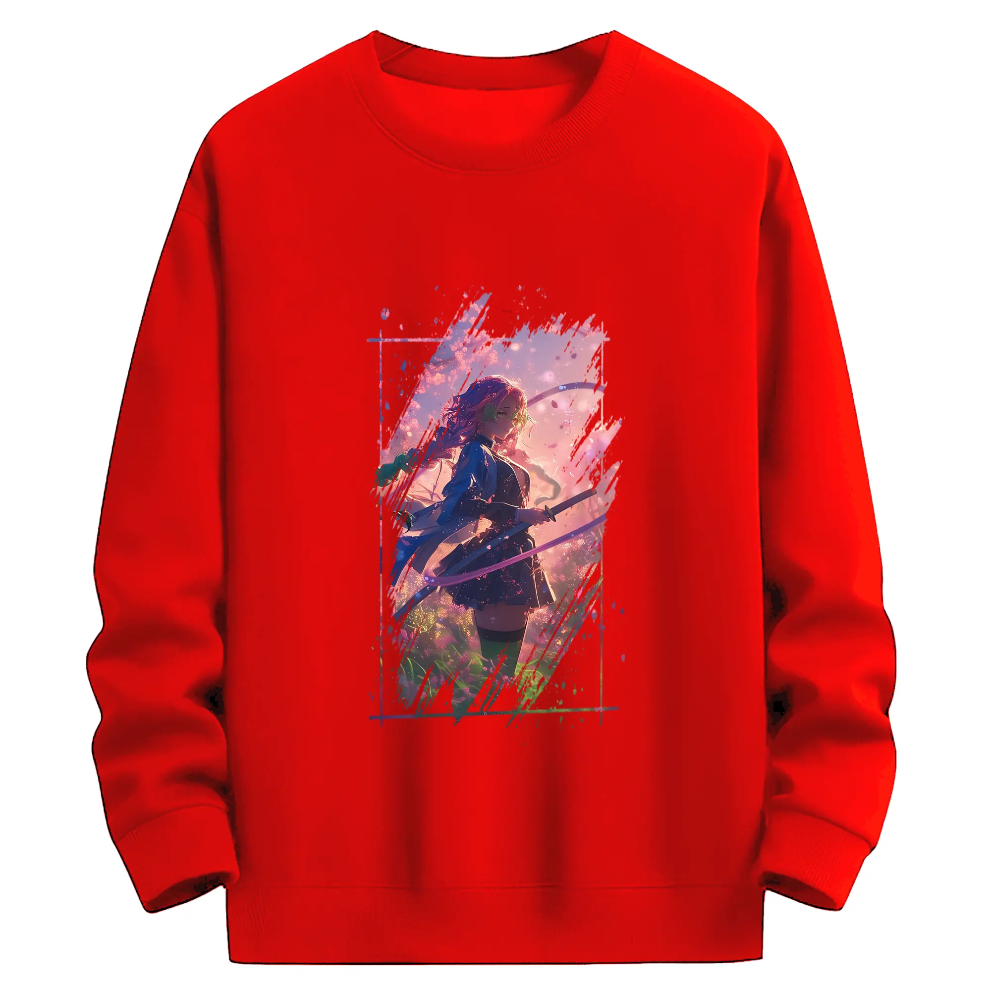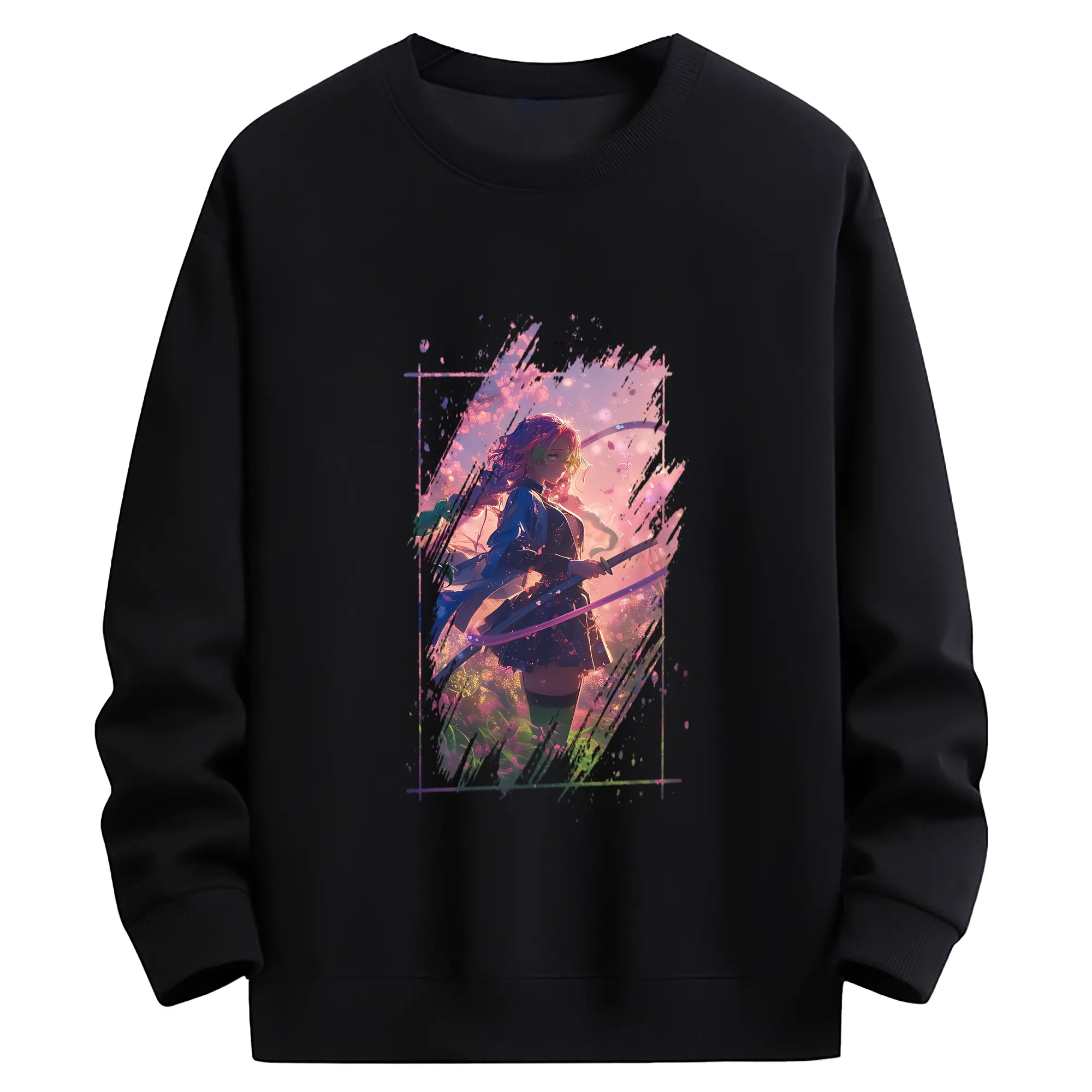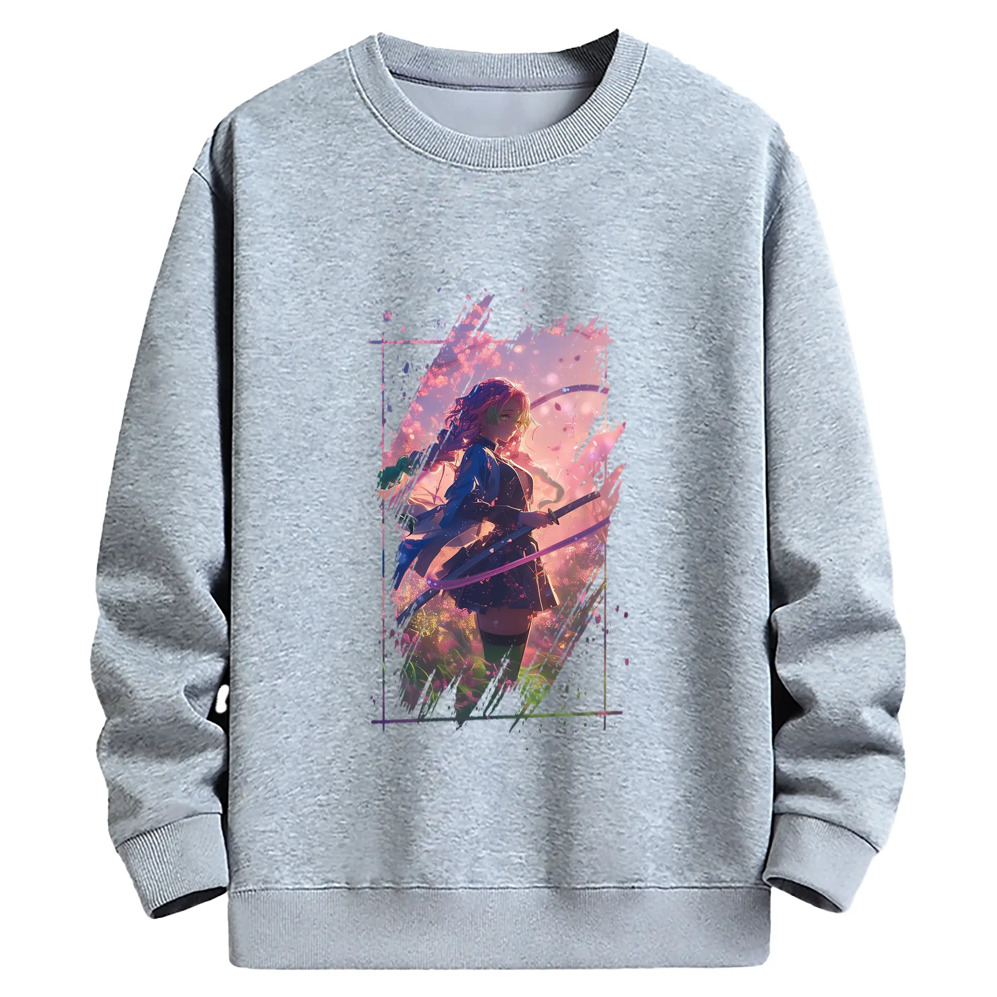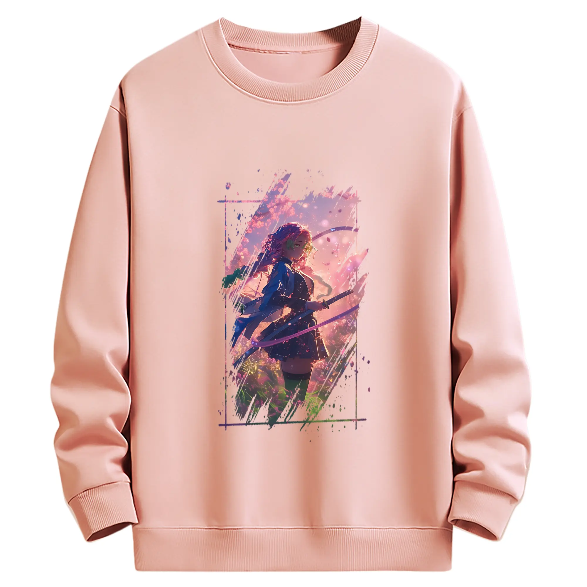 鬼滅の刃 グッズ,甘露寺 蜜璃 - 高品質 クルーネック スウェット ・ コットン59% ポリエステル41% ・ ユニセックス 長袖 トレーナー ・ カジュアル デイリー スポーツ 散歩用