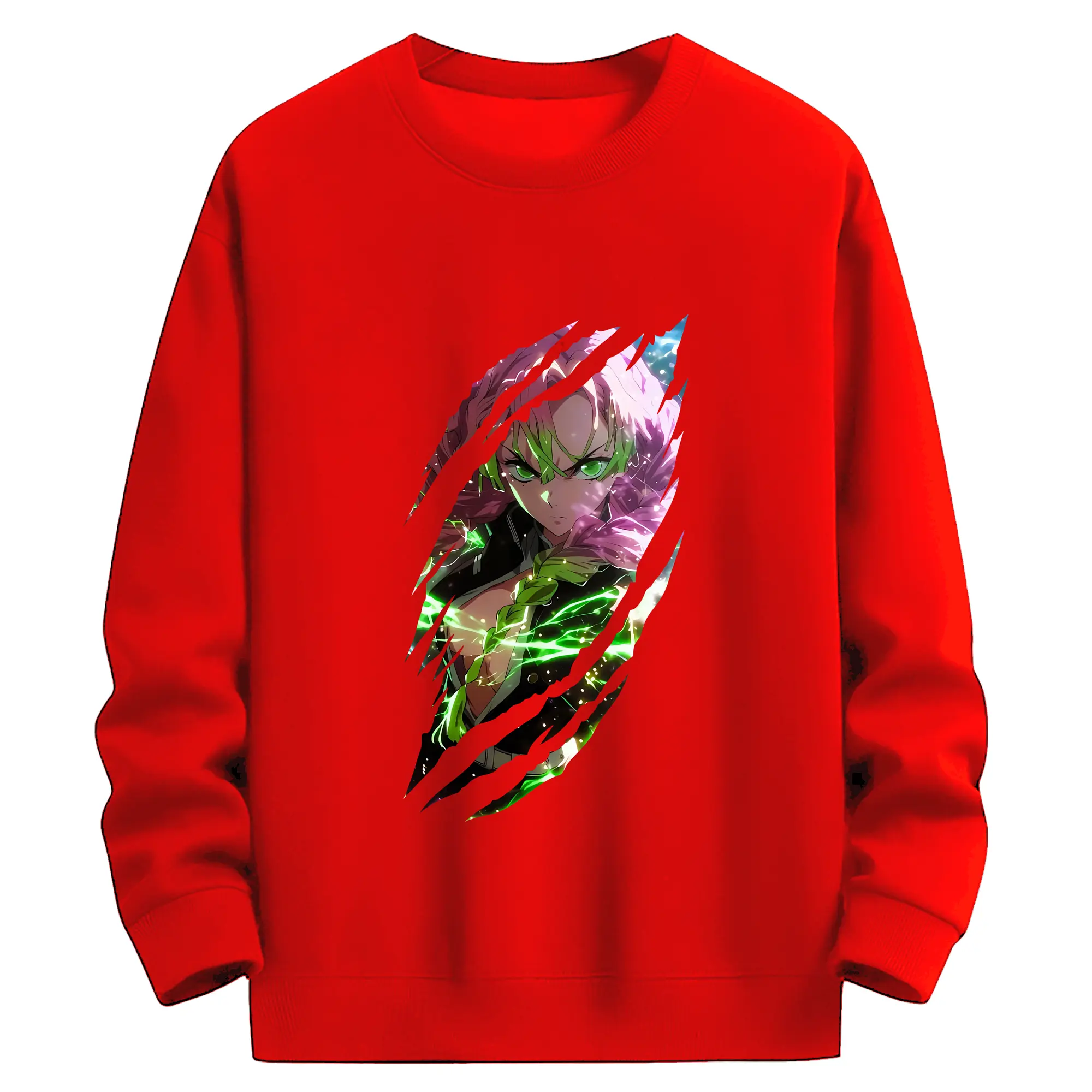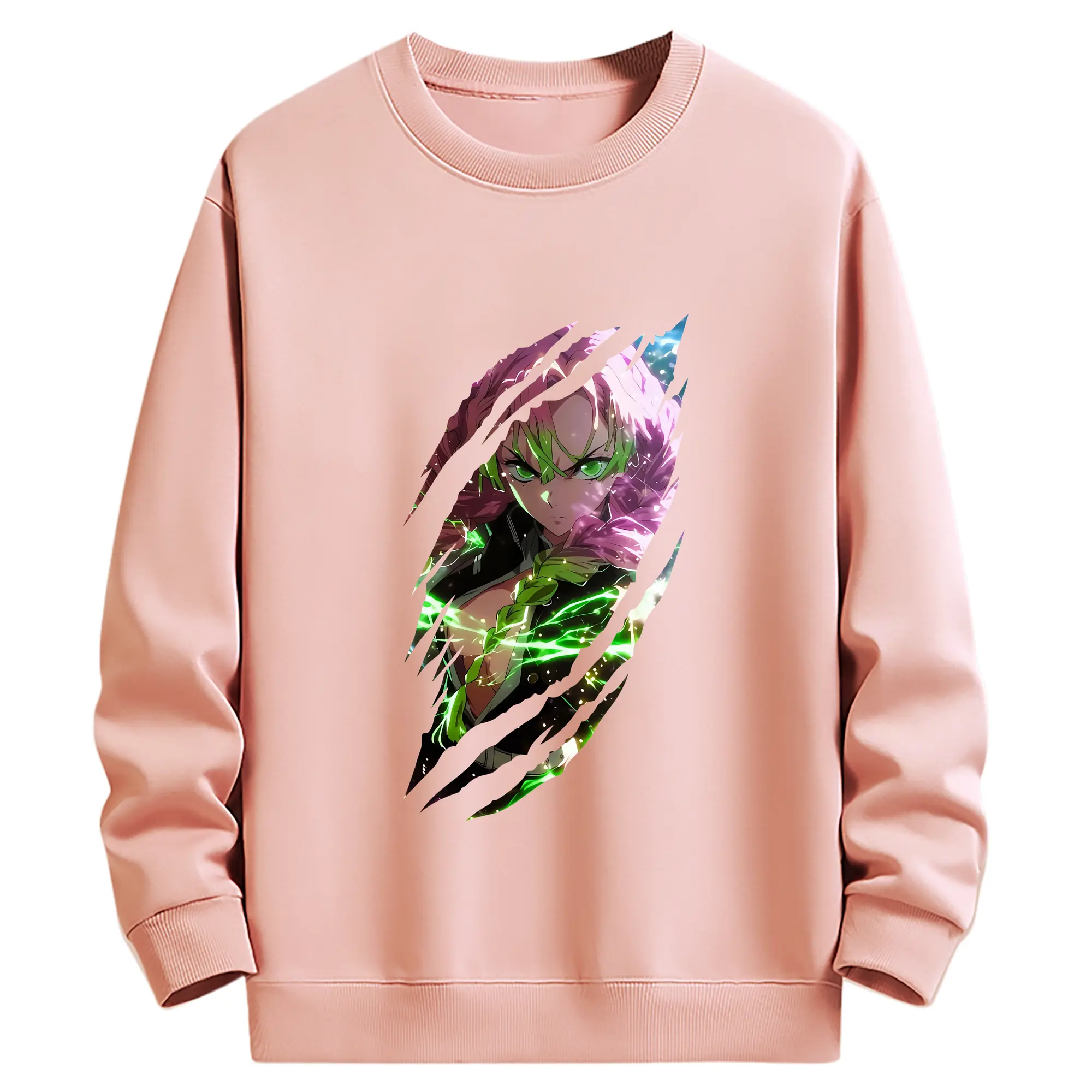 鬼滅の刃 グッズ,甘露寺 蜜璃 - 高品質 クルーネック スウェット ・ コットン59% ポリエステル41% ・ ユニセックス 長袖 トレーナー ・ カジュアル デイリー スポーツ 散歩用