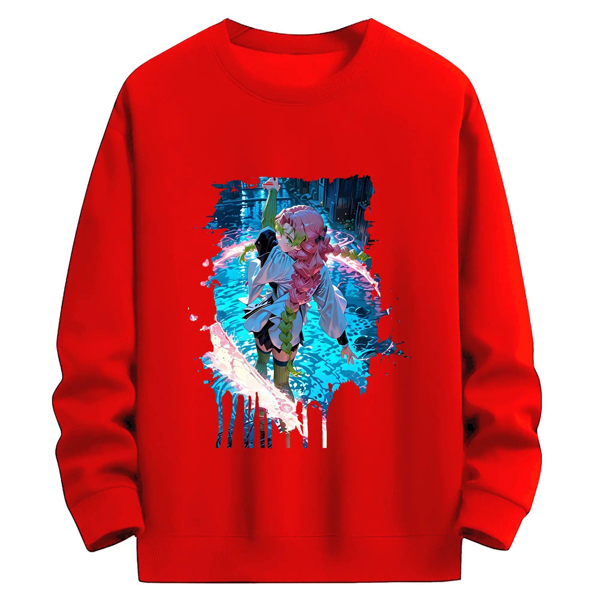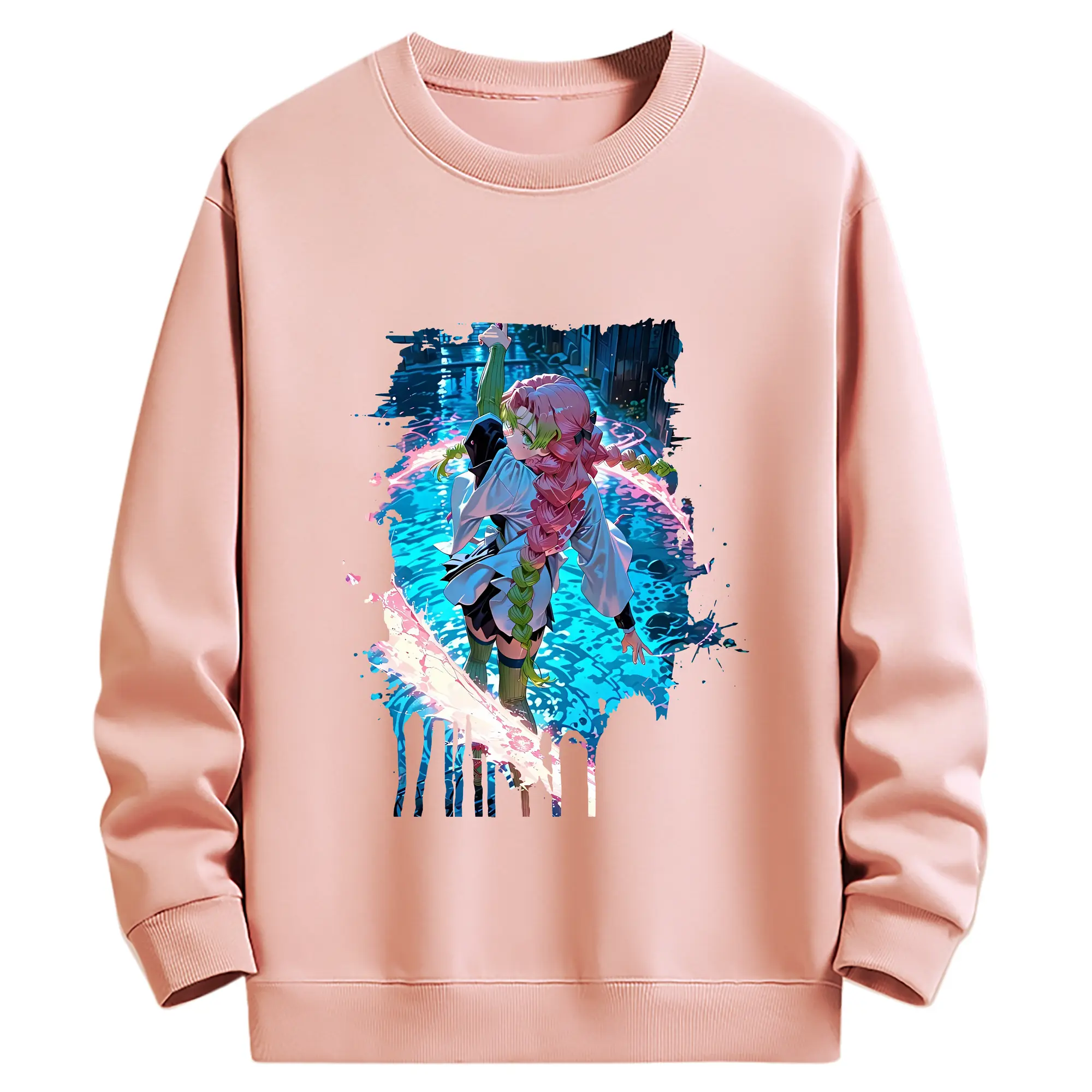 鬼滅の刃 グッズ,甘露寺 蜜璃 - 高品質 クルーネック スウェット ・ コットン59% ポリエステル41% ・ ユニセックス 長袖 トレーナー ・ カジュアル デイリー スポーツ 散歩用