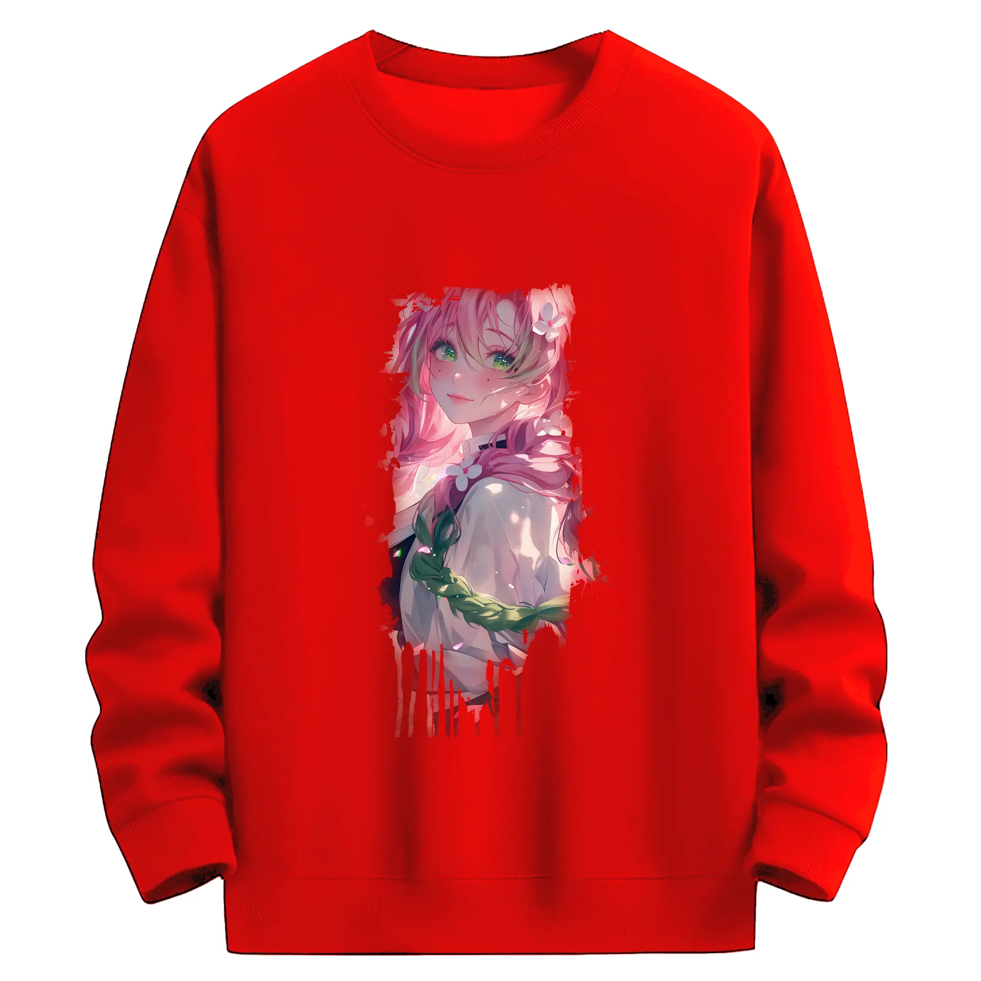 鬼滅の刃 グッズ,甘露寺 蜜璃 - 高品質 クルーネック スウェット ・ コットン59% ポリエステル41% ・ ユニセックス 長袖 トレーナー ・ カジュアル デイリー スポーツ 散歩用