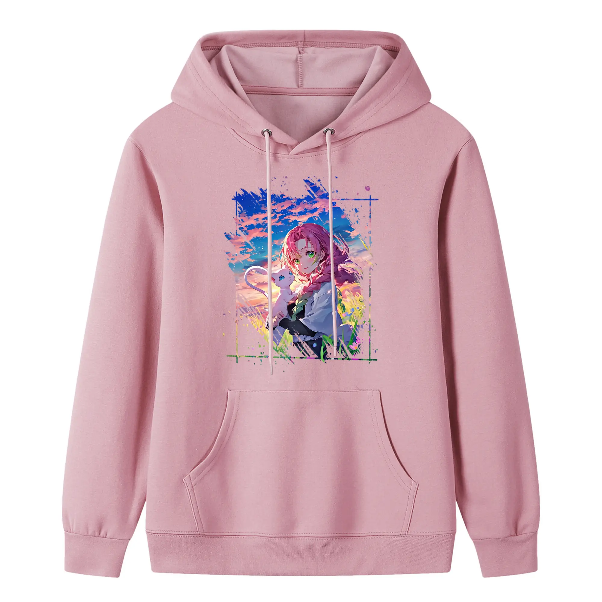 鬼滅の刃 グッズ,甘露寺 蜜璃 - 高品質 クルーネック スウェット ・ コットン59% ポリエステル41% ・ ユニセックス 長袖 トレーナー ・ カジュアル デイリー スポーツ 散歩用