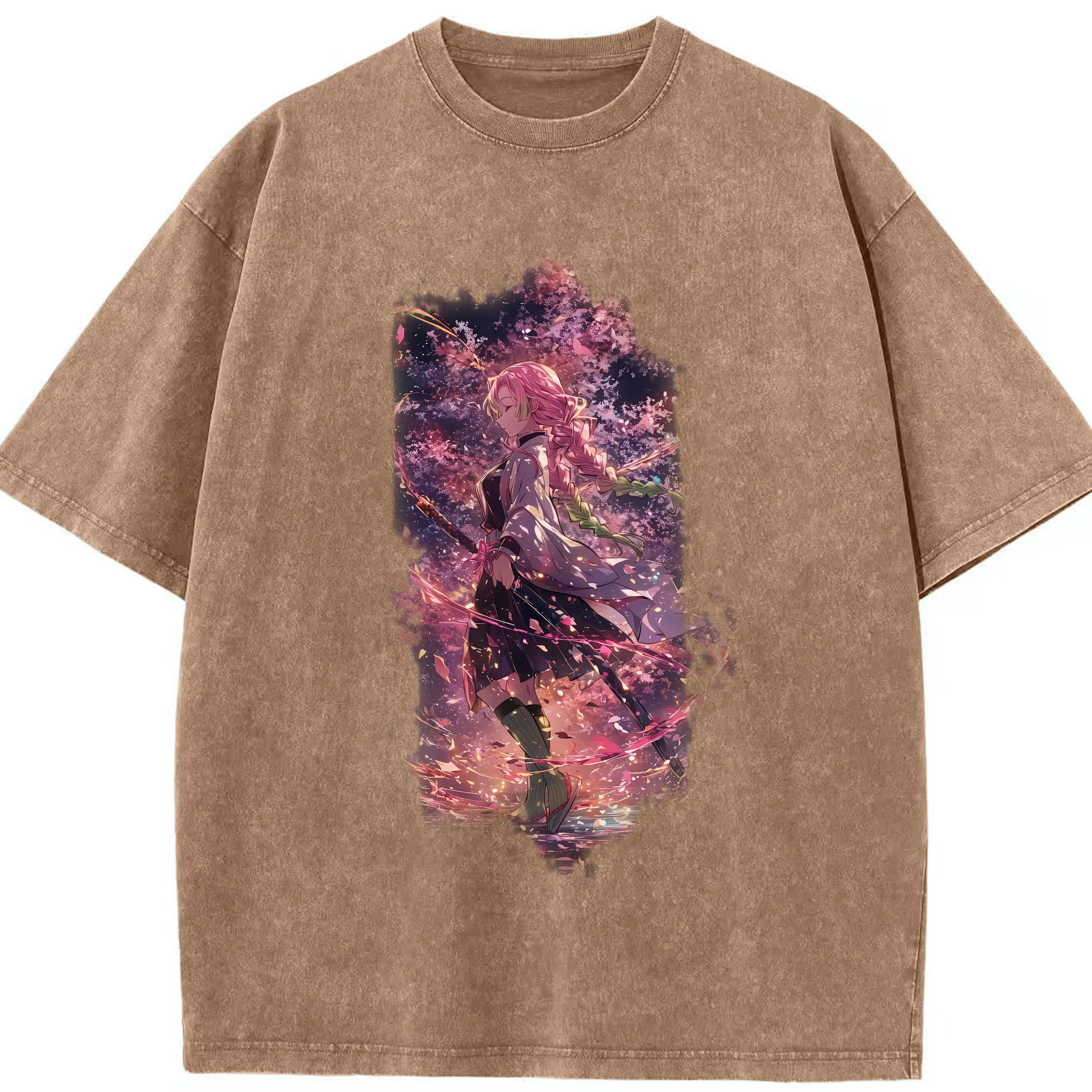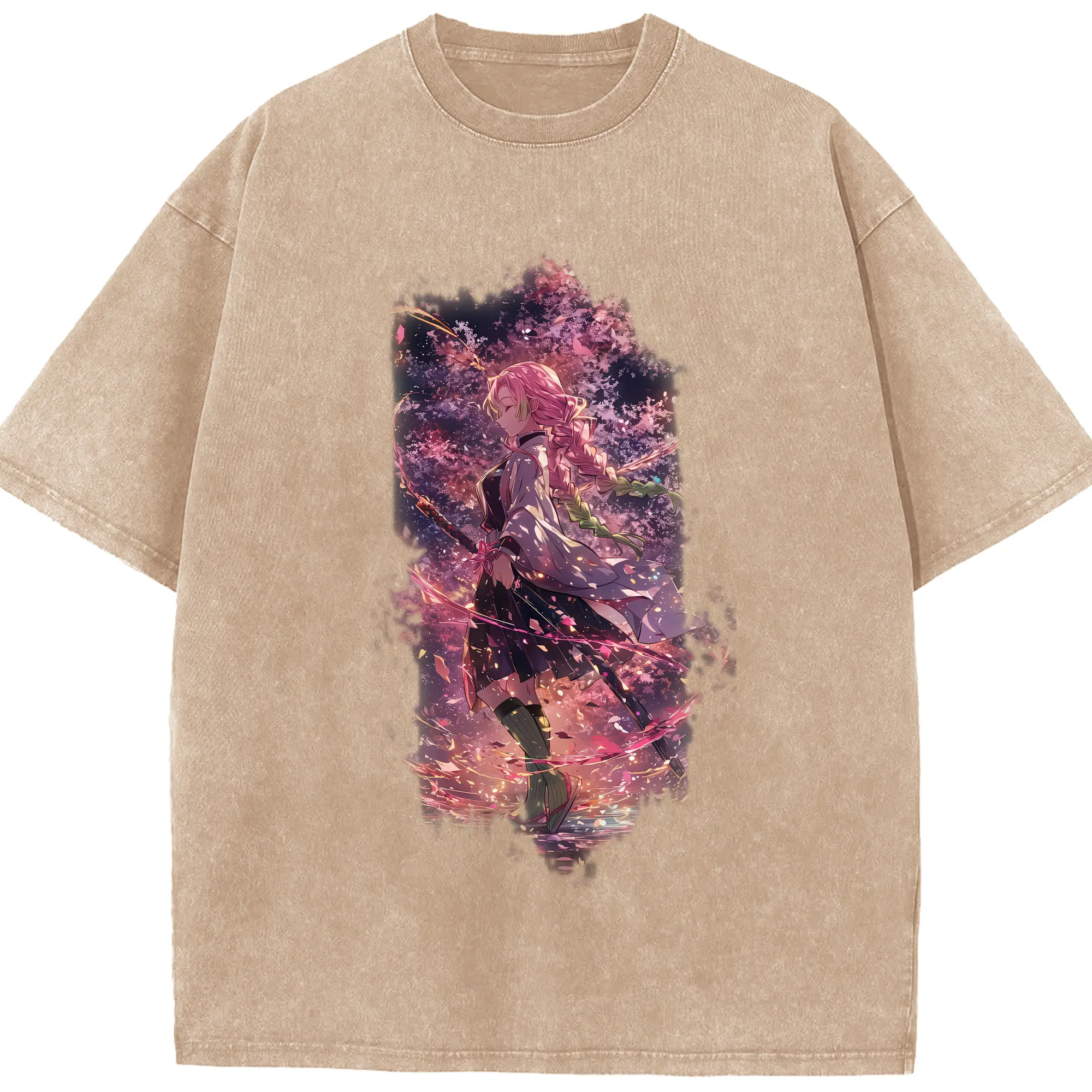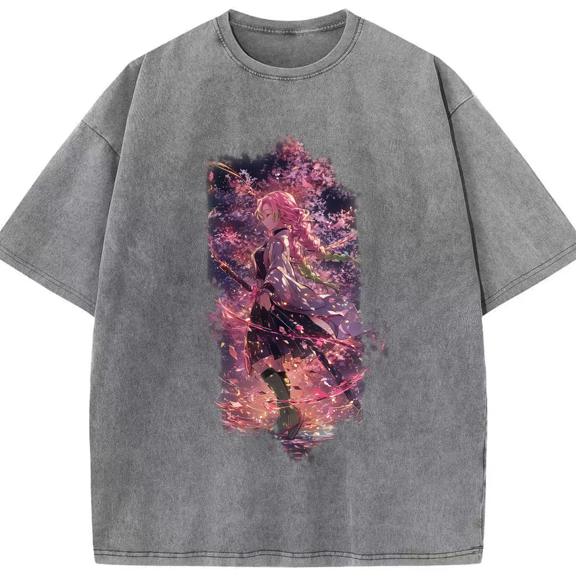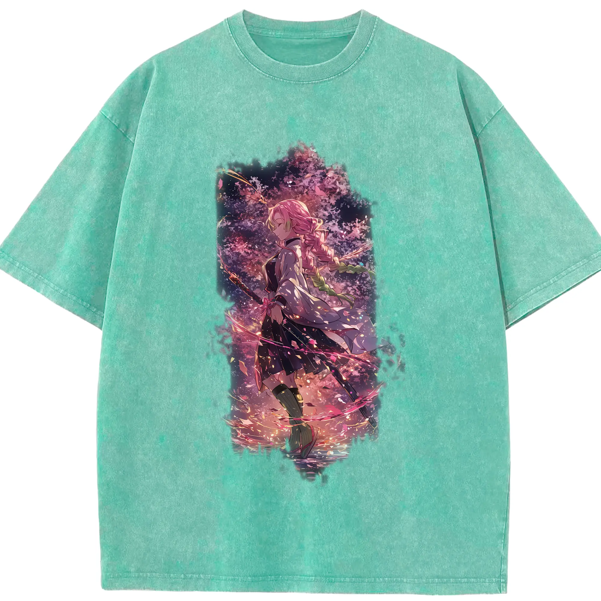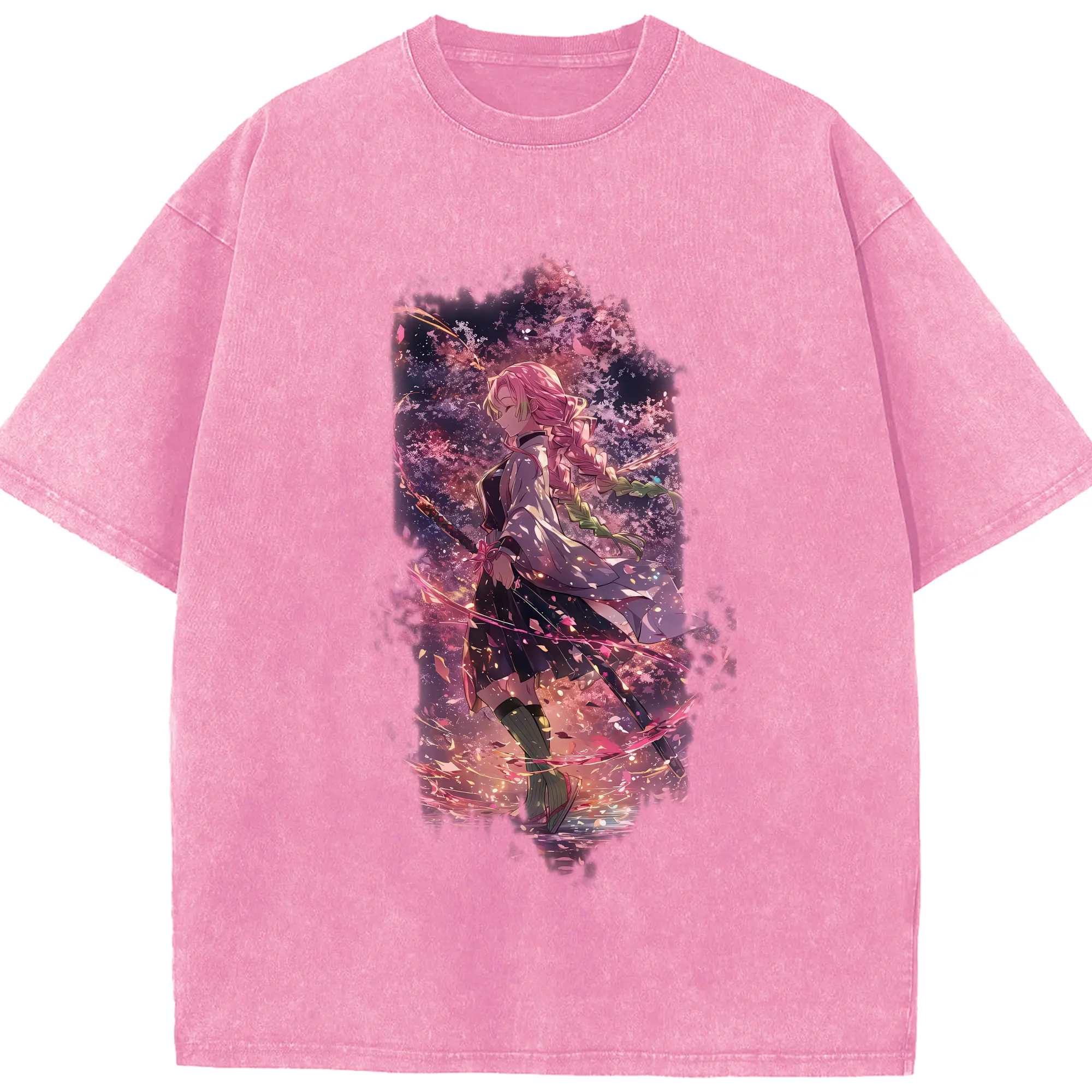 鬼滅の刃 グッズ,甘露寺 蜜璃 - 綿100% 半袖Tシャツ ・ フロントプリント ・ 快適 通気性 ・ 日常使い 散歩 スポーツ用