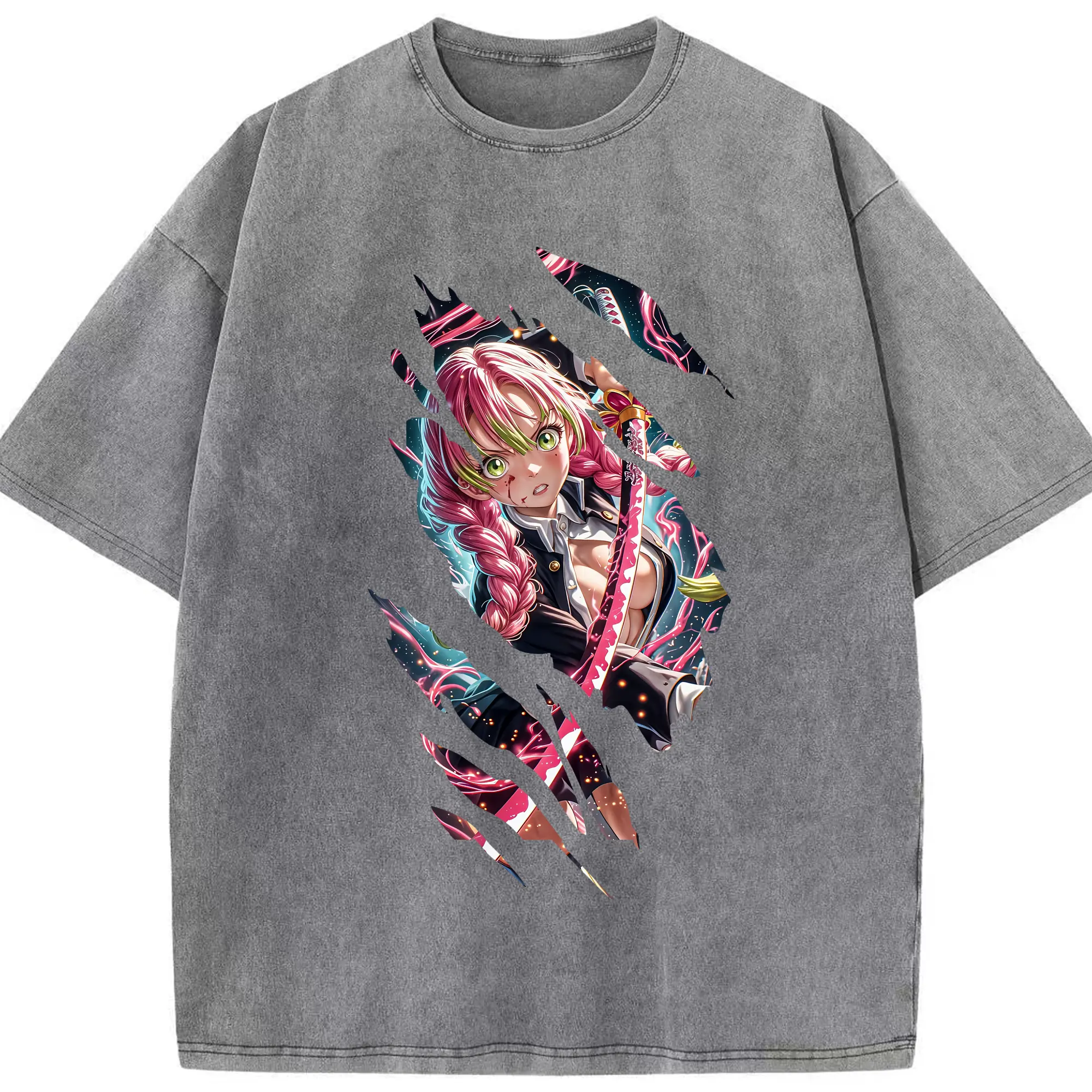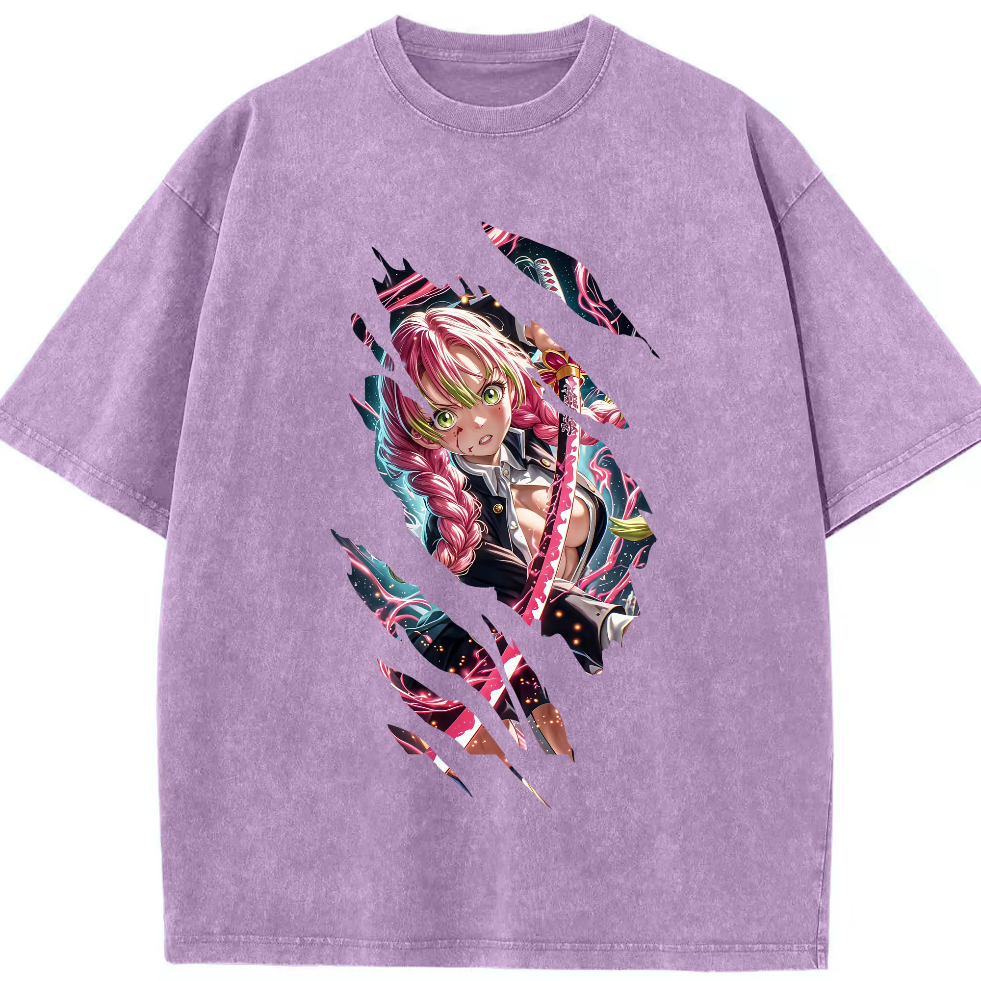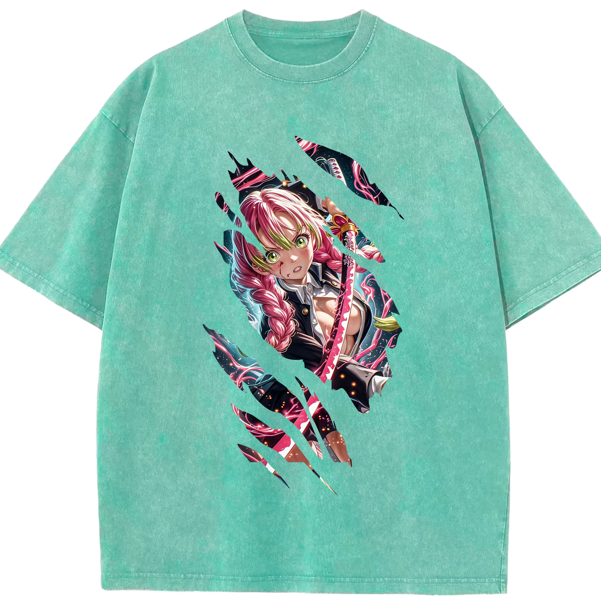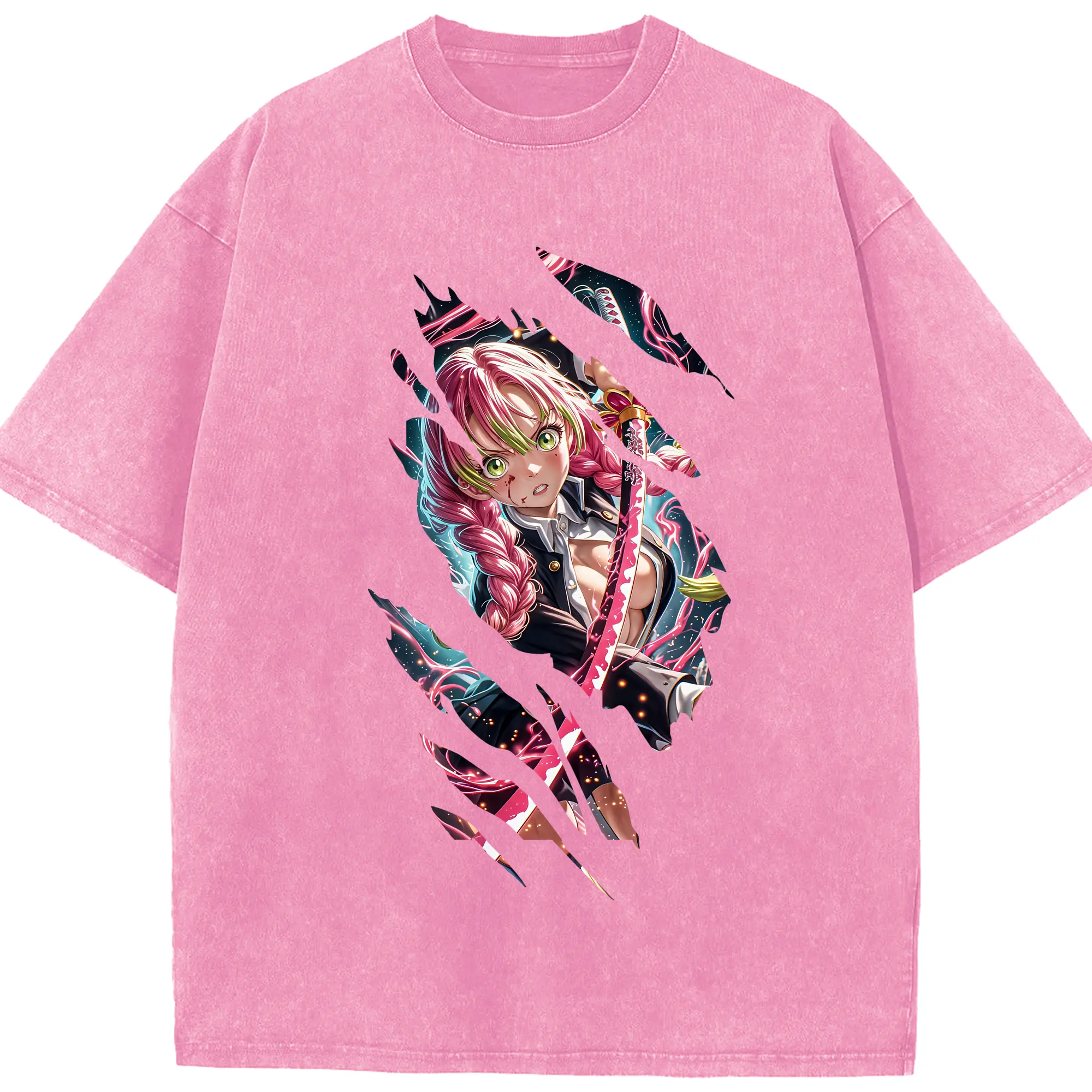 鬼滅の刃 グッズ,甘露寺 蜜璃 - 綿100% 半袖Tシャツ ・ フロントプリント ・ 快適 通気性 ・ 日常使い 散歩 スポーツ用