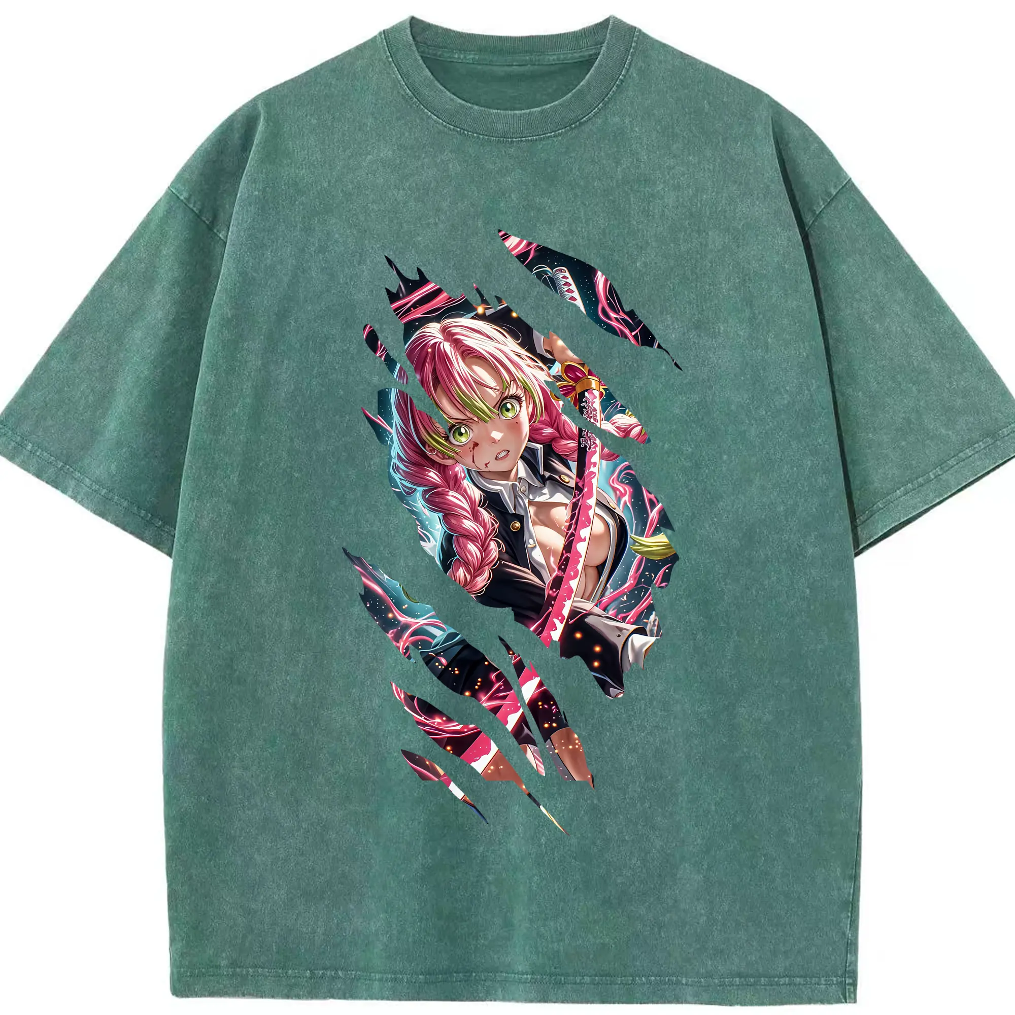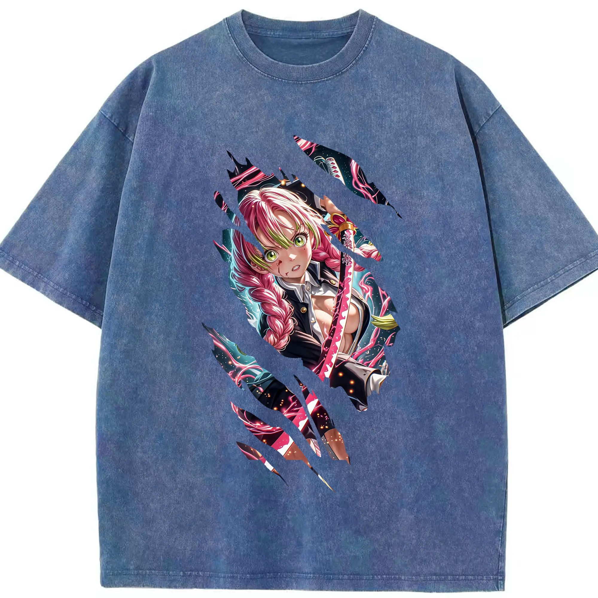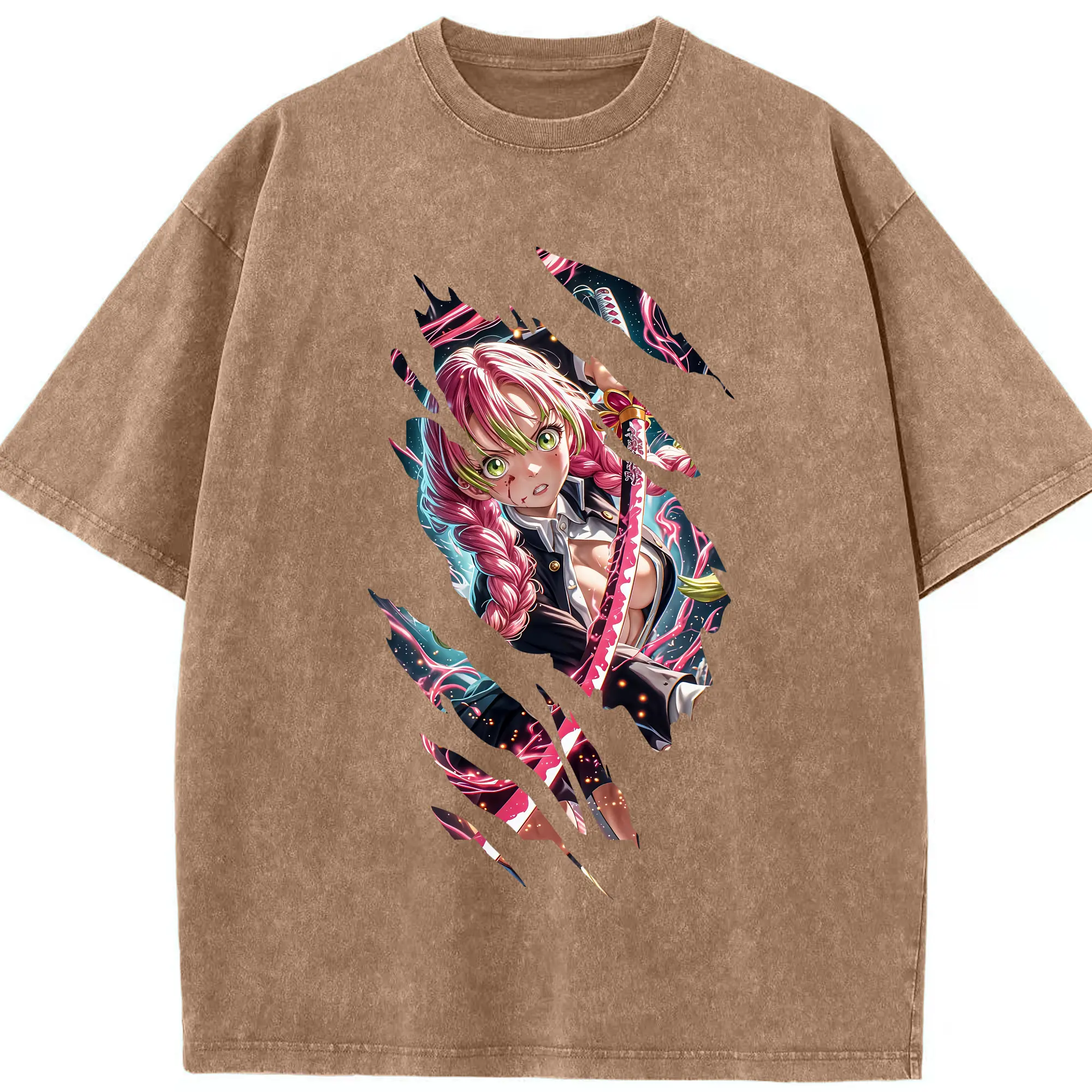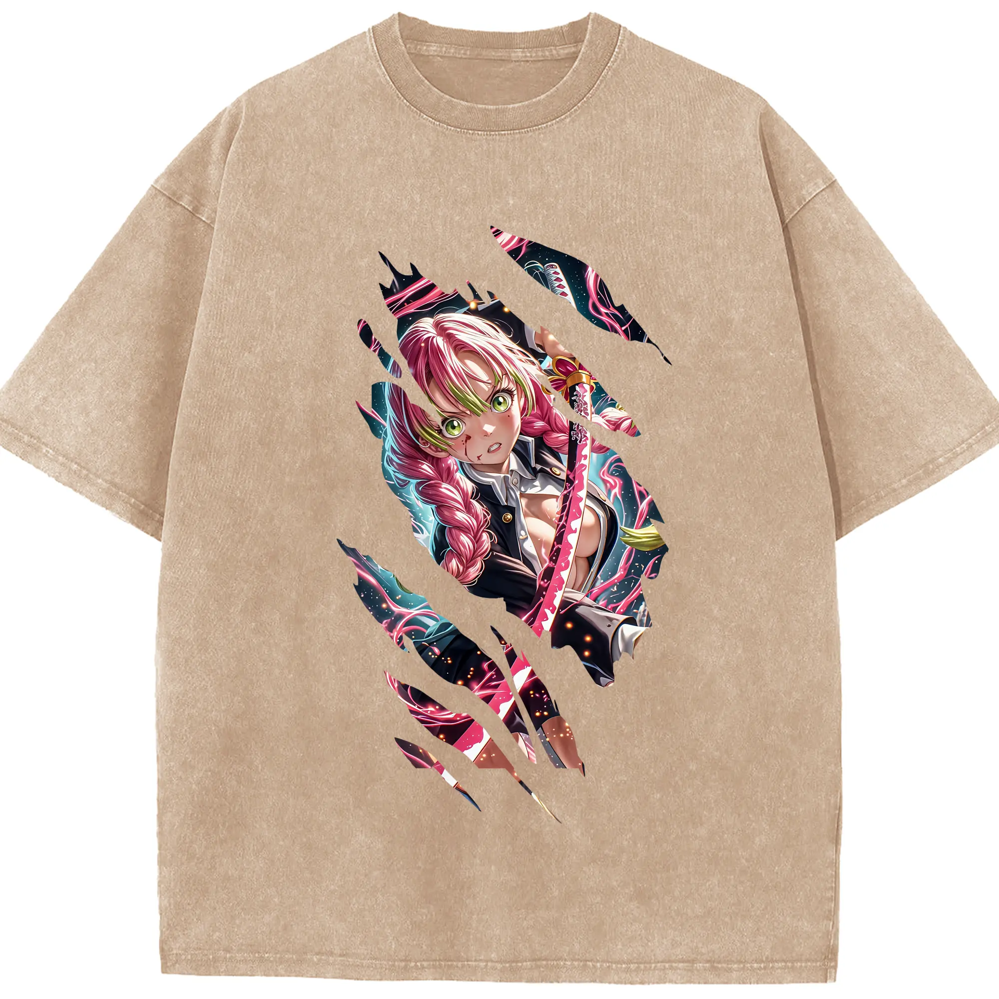 鬼滅の刃 グッズ,甘露寺 蜜璃 - 綿100% 半袖Tシャツ ・ フロントプリント ・ 快適 通気性 ・ 日常使い 散歩 スポーツ用