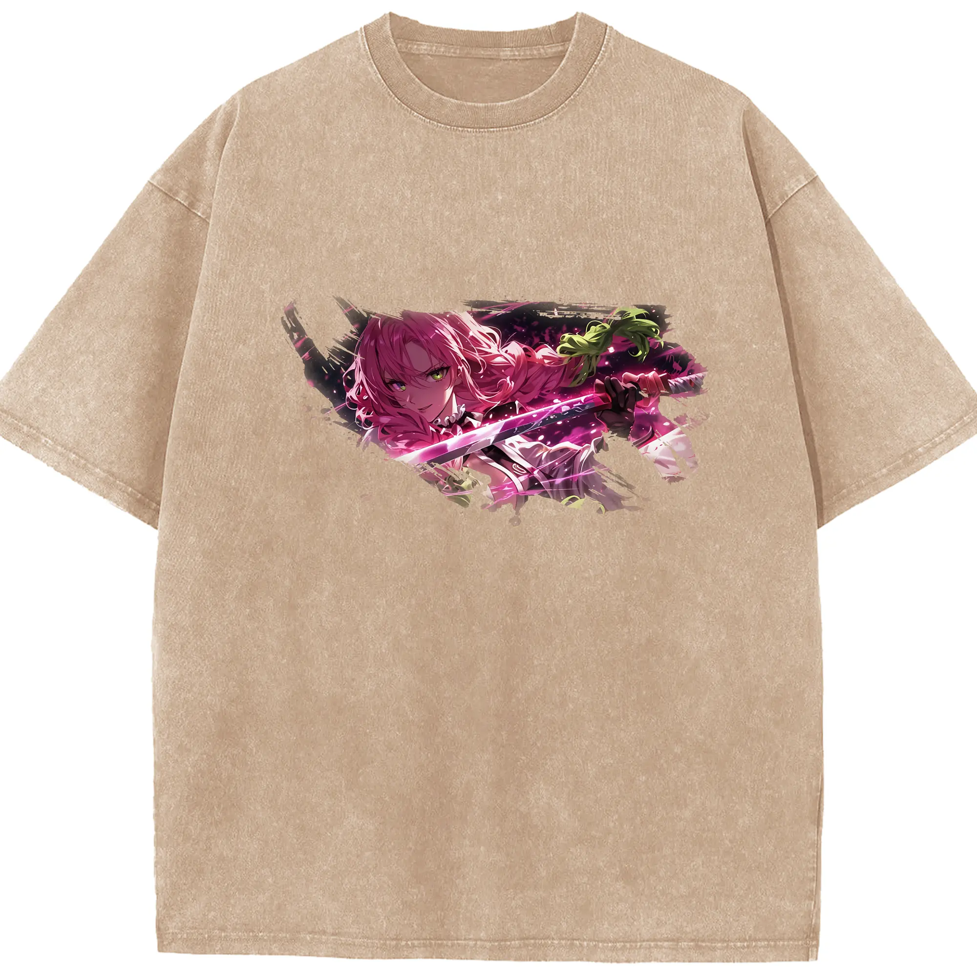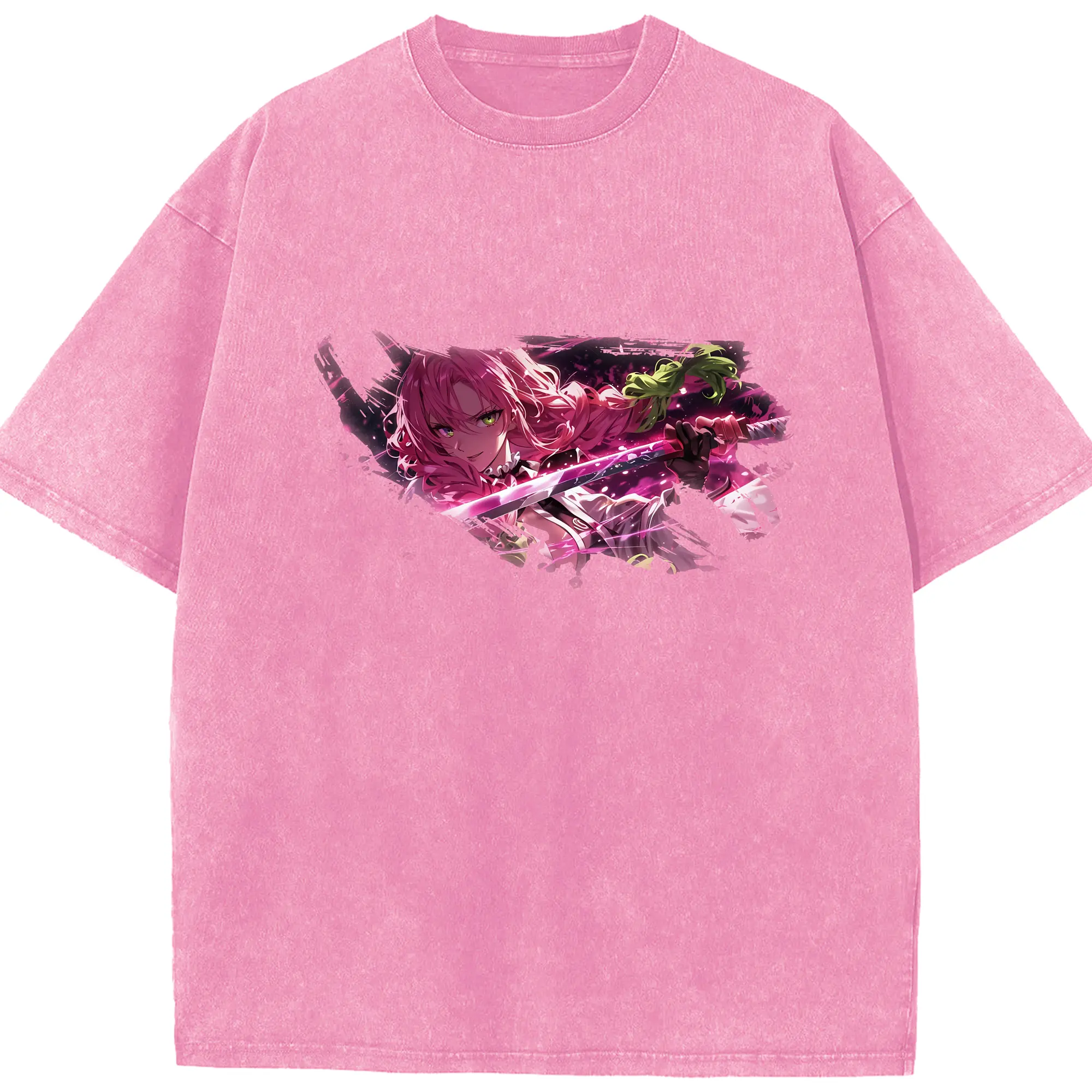 鬼滅の刃 グッズ,甘露寺 蜜璃 - 綿100% 半袖Tシャツ ・ フロントプリント ・ 快適 通気性 ・ 日常使い 散歩 スポーツ用