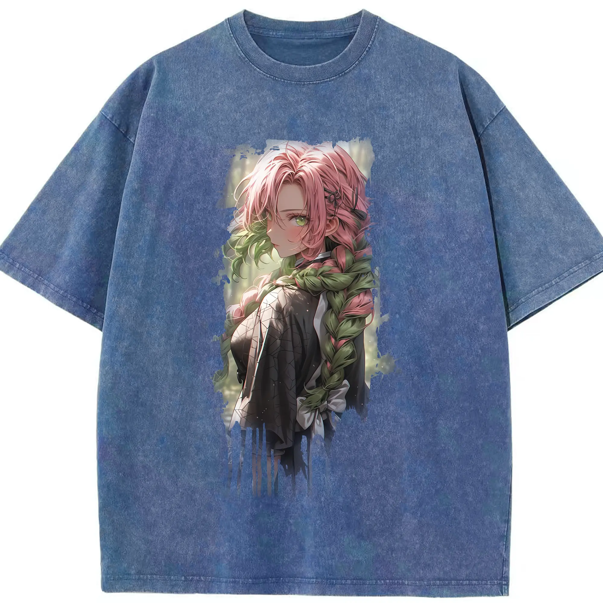 鬼滅の刃 グッズ,伊黒 小芭内 - 綿100% ヴィンテージ風 半袖Tシャツ ・ フロントプリント ・ 柔らか肌触り ・ 通気性 快適 ・ スポーツ カジュアル 外出用