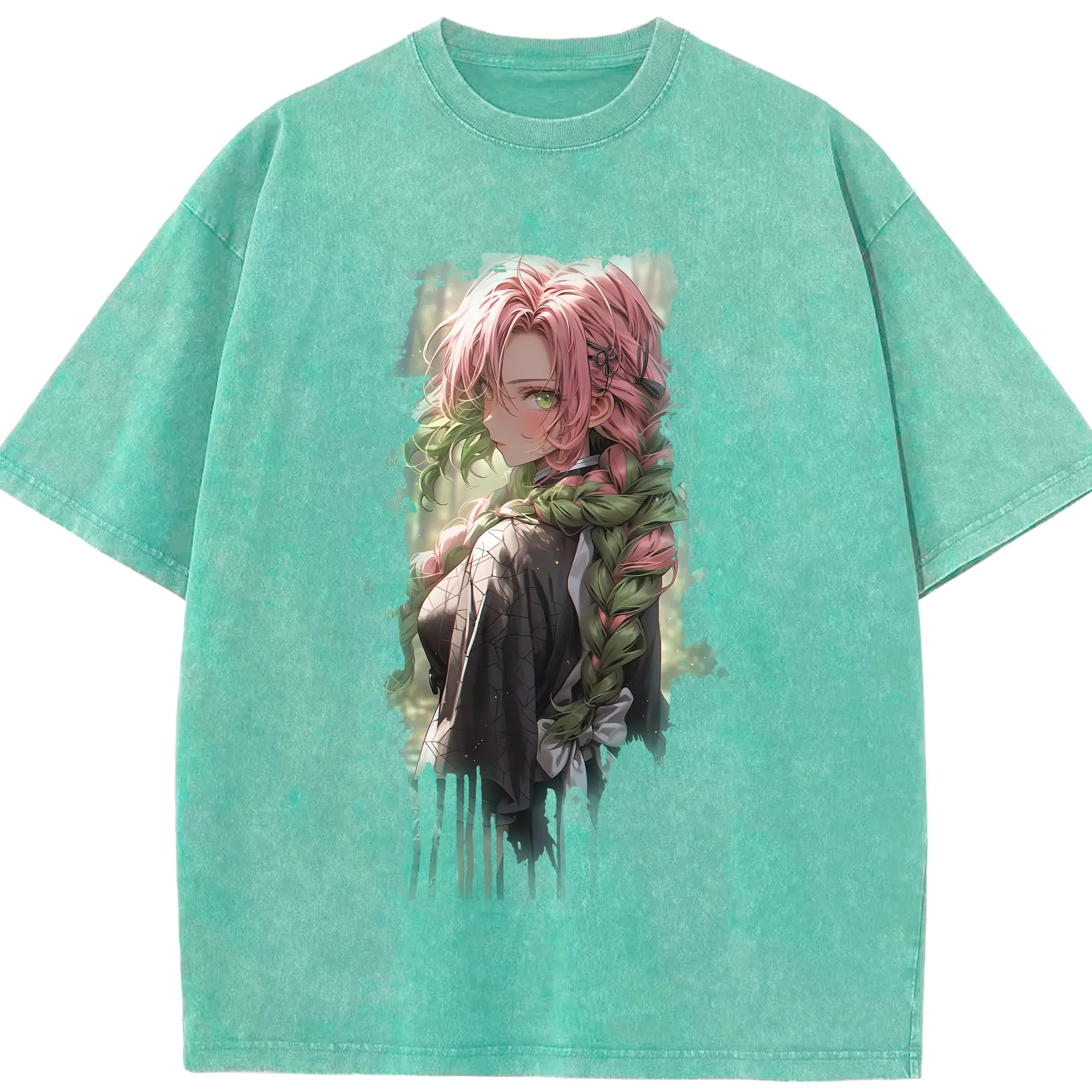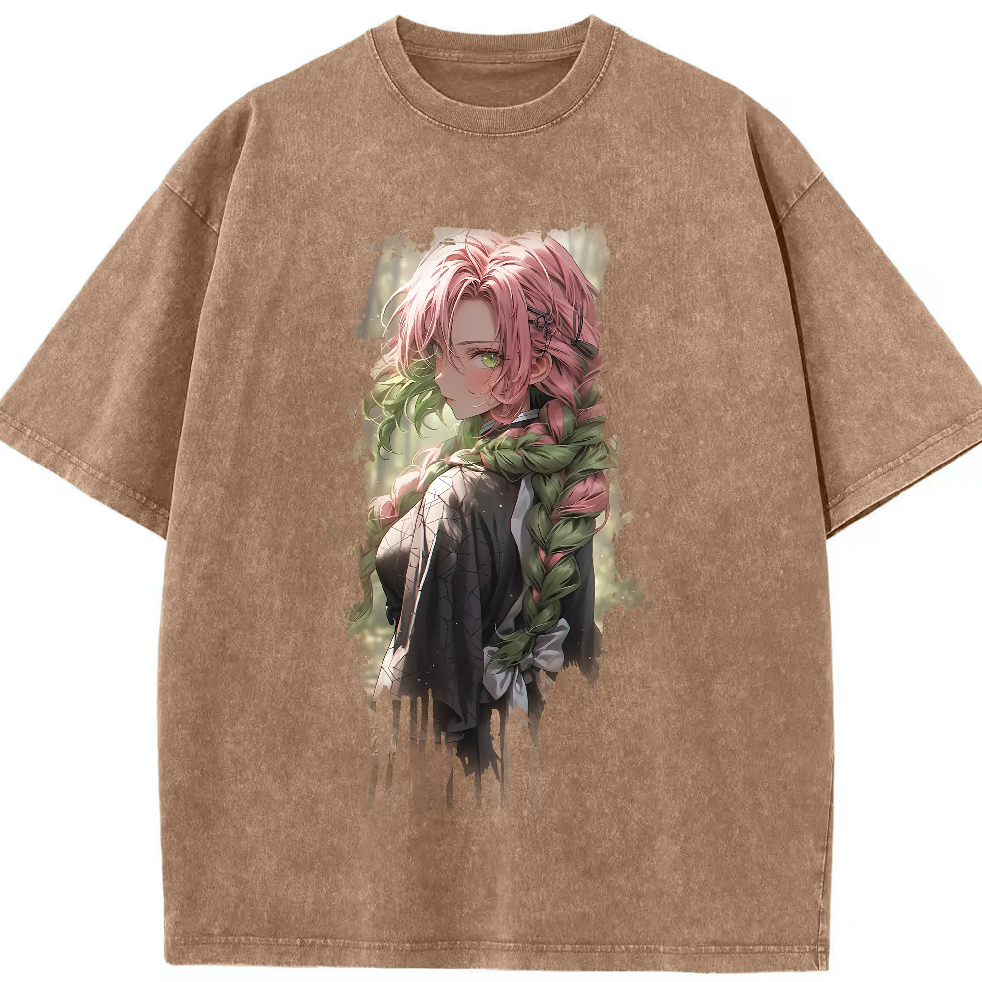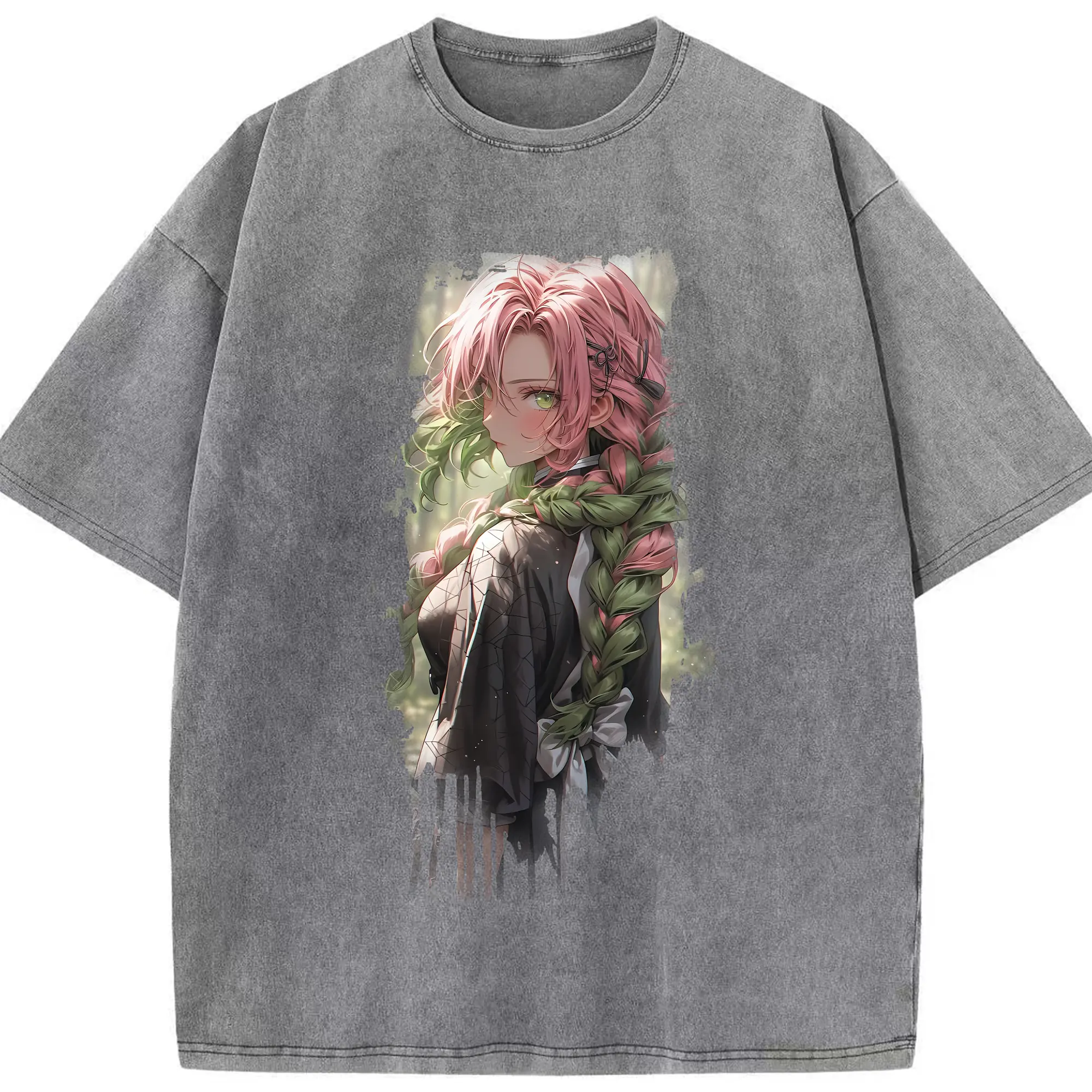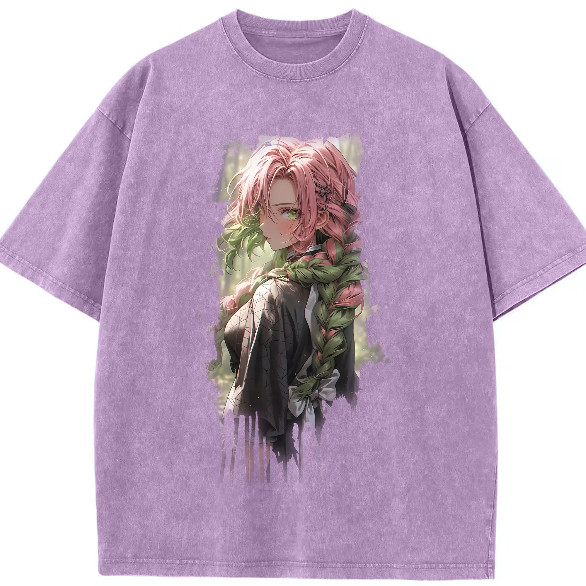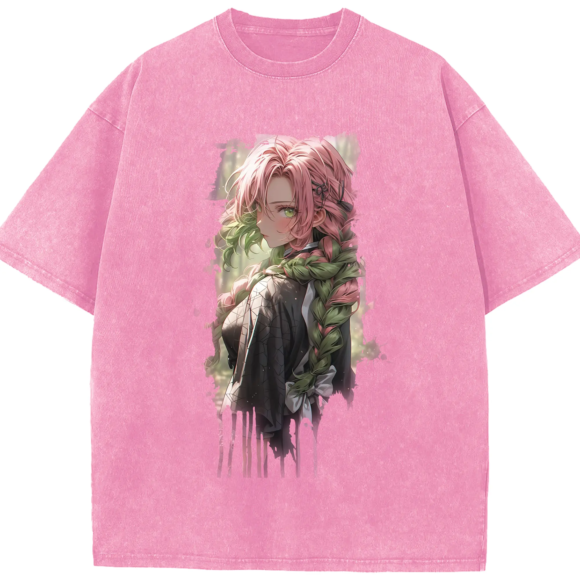 鬼滅の刃 グッズ,甘露寺 蜜璃 - 綿100% 半袖Tシャツ ・ フロントプリント ・ 快適 通気性 ・ 日常使い 散歩 スポーツ用