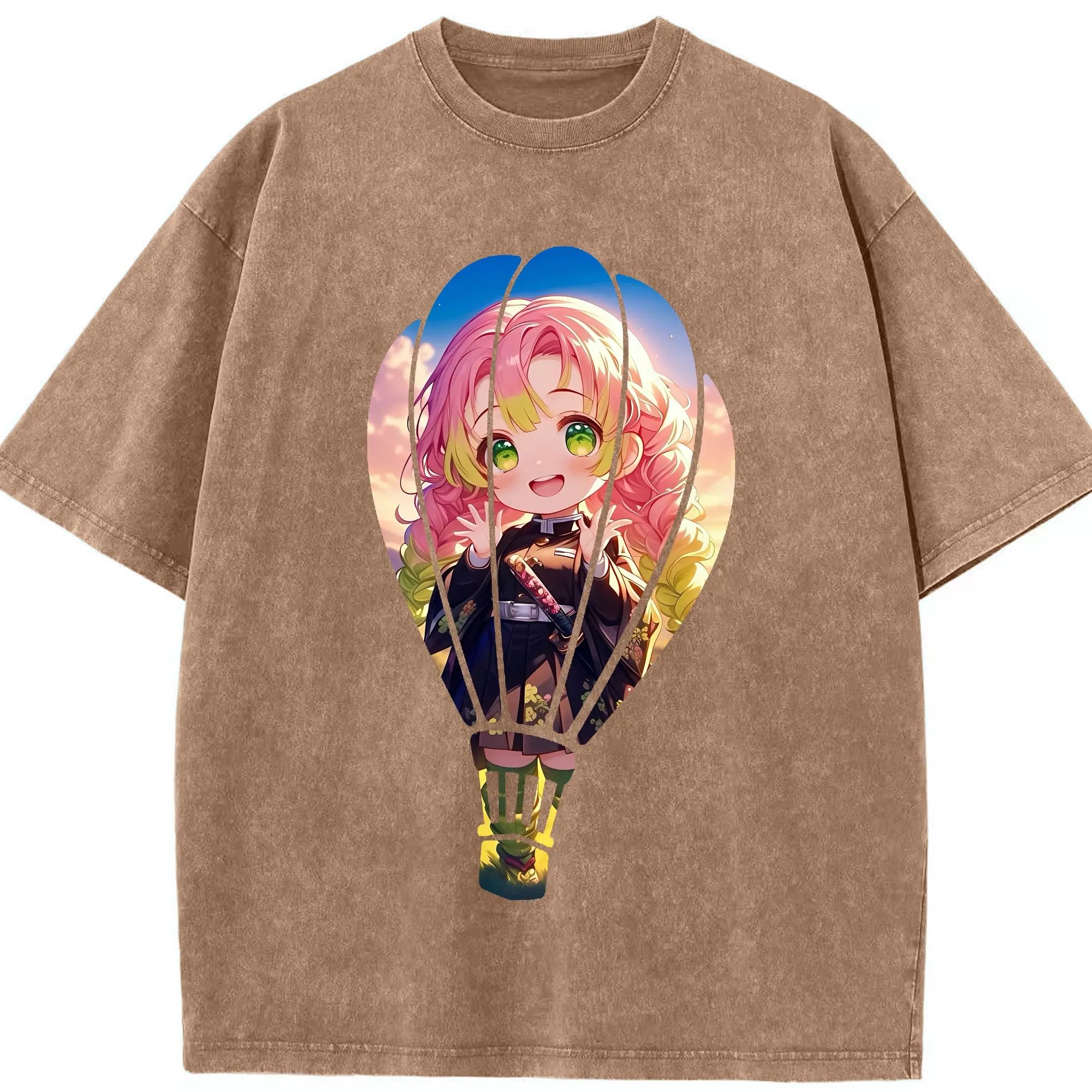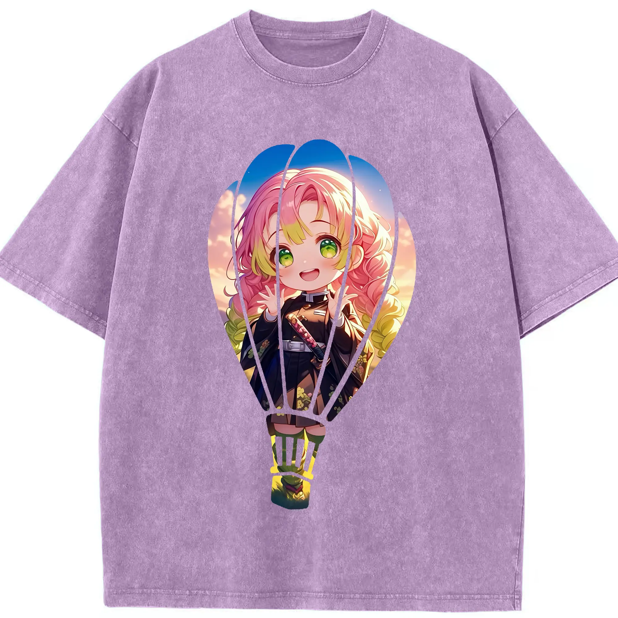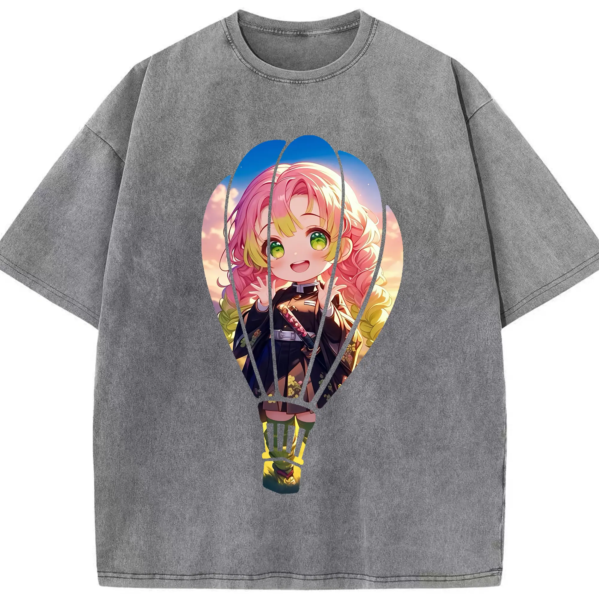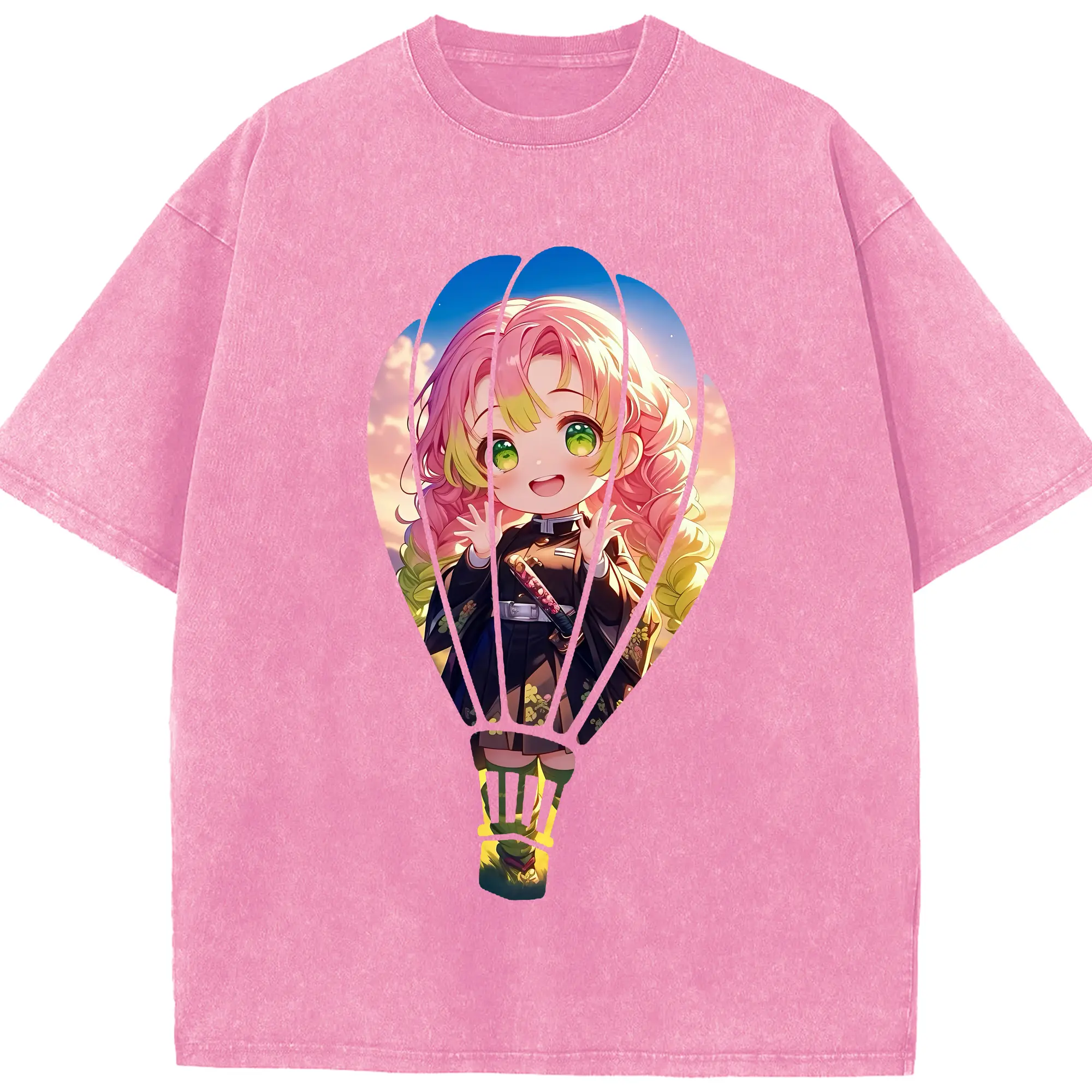 鬼滅の刃 グッズ,甘露寺 蜜璃 - 綿100% 半袖Tシャツ ・ フロントプリント ・ 快適 通気性 ・ 日常使い 散歩 スポーツ用