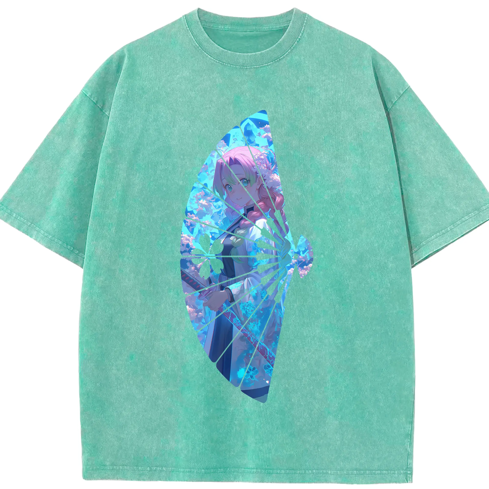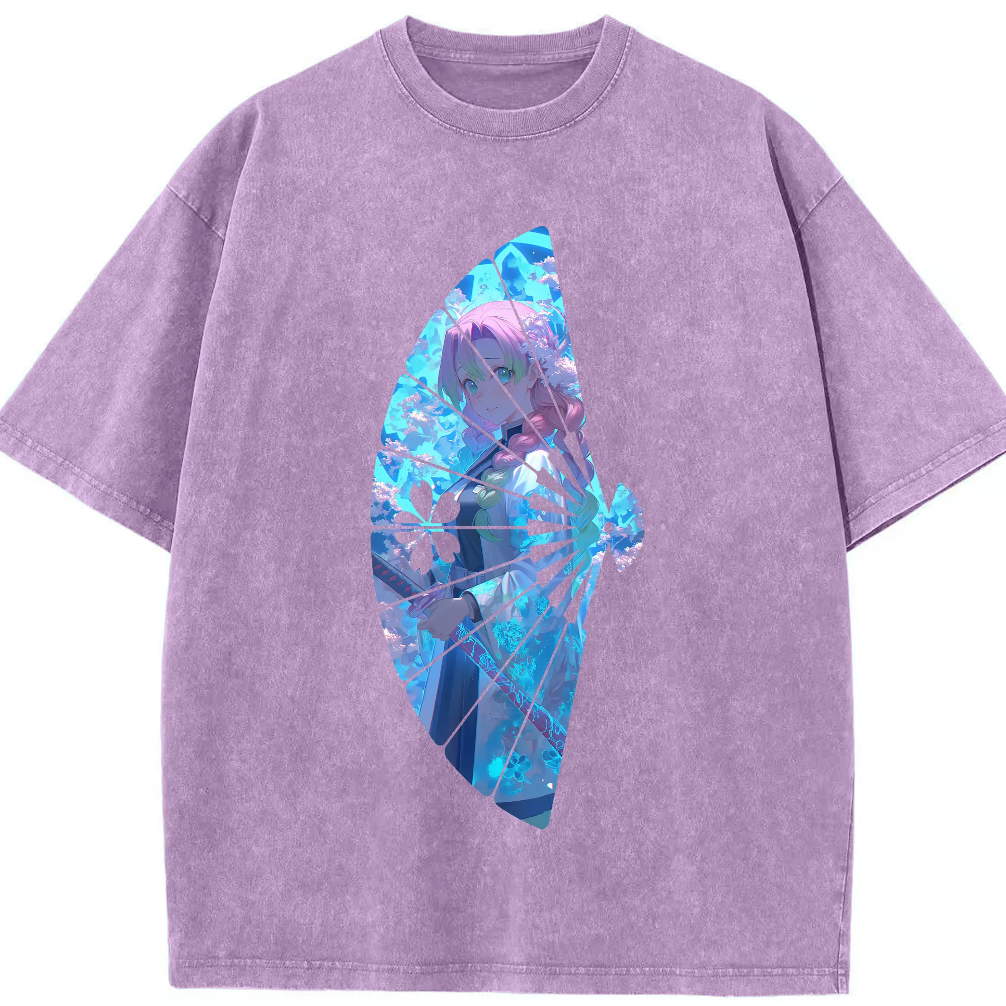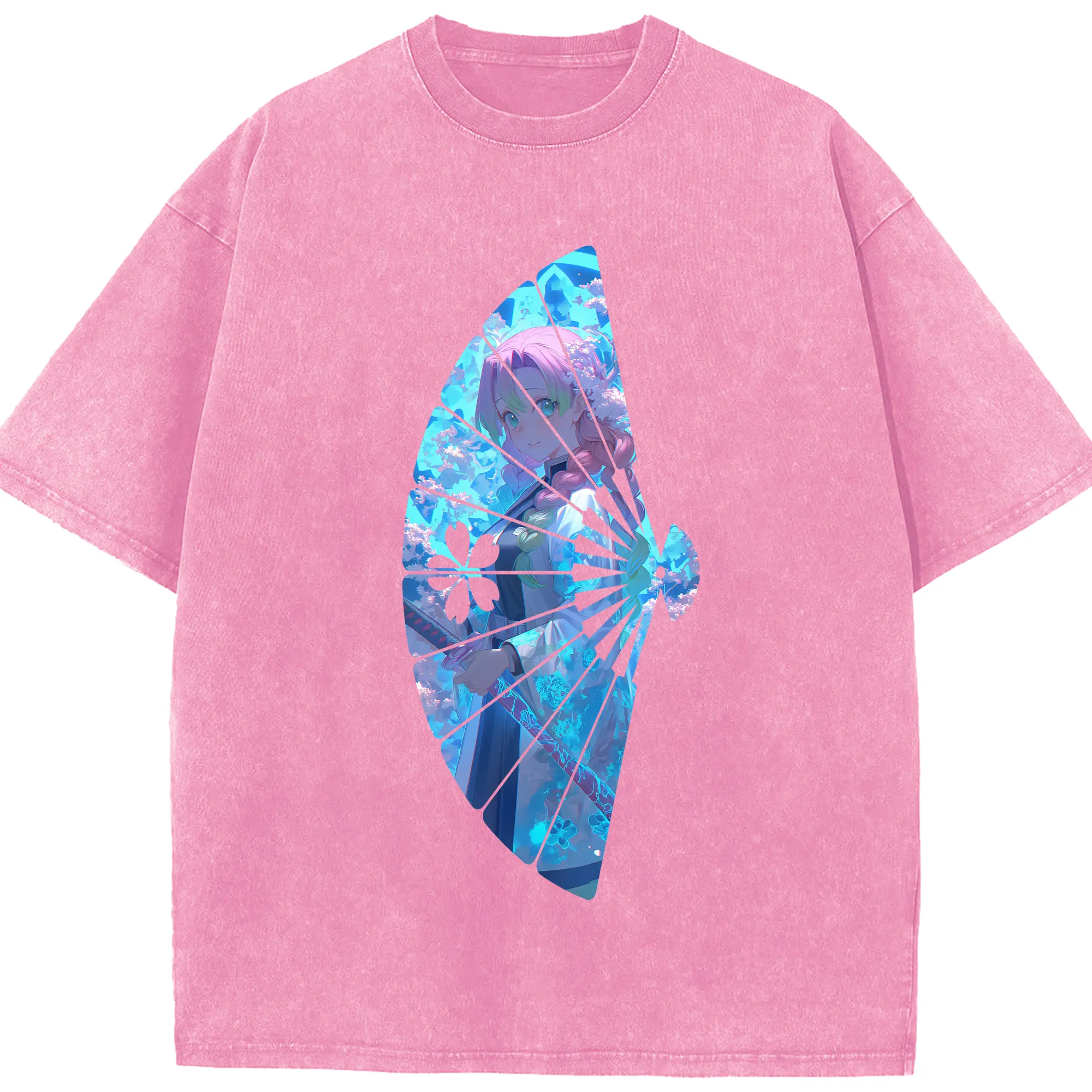 鬼滅の刃 グッズ,甘露寺 蜜璃 - 綿100% 半袖Tシャツ ・ フロントプリント ・ 快適 通気性 ・ 日常使い 散歩 スポーツ用