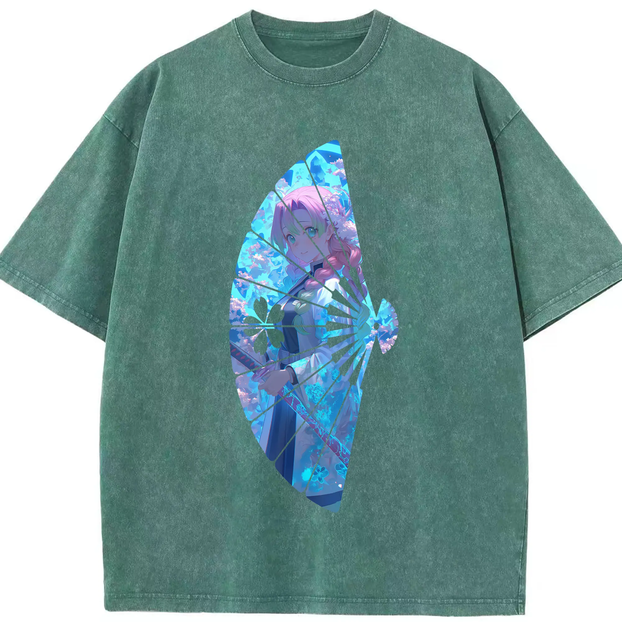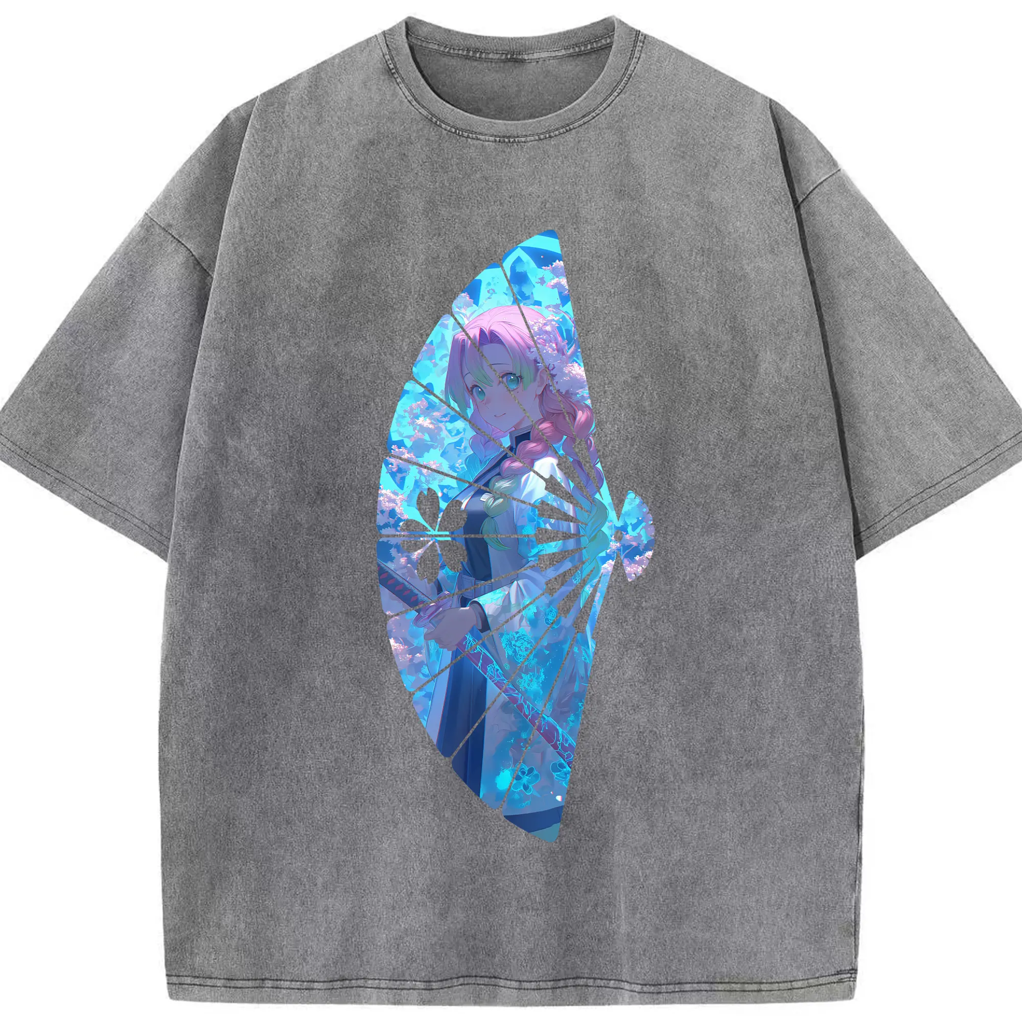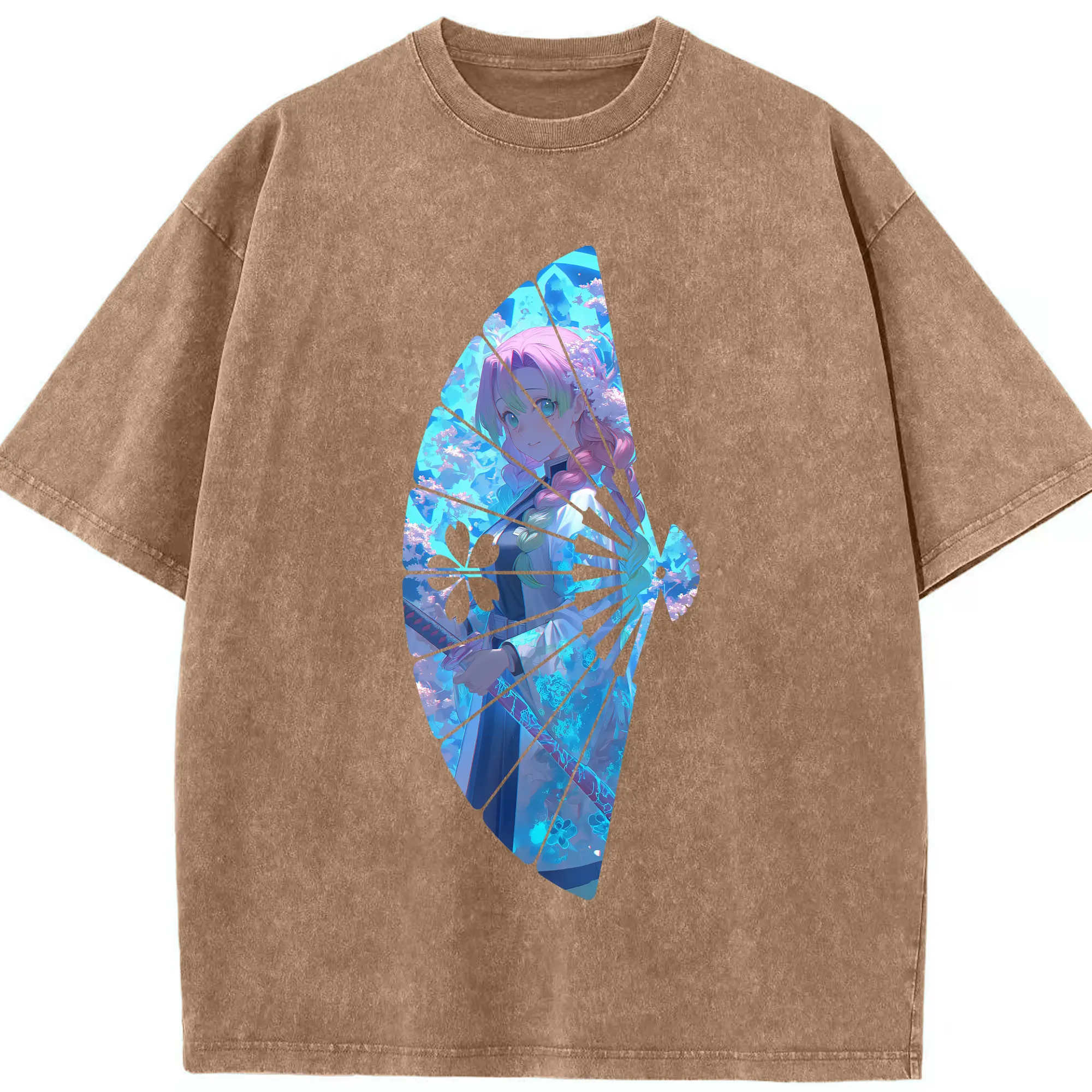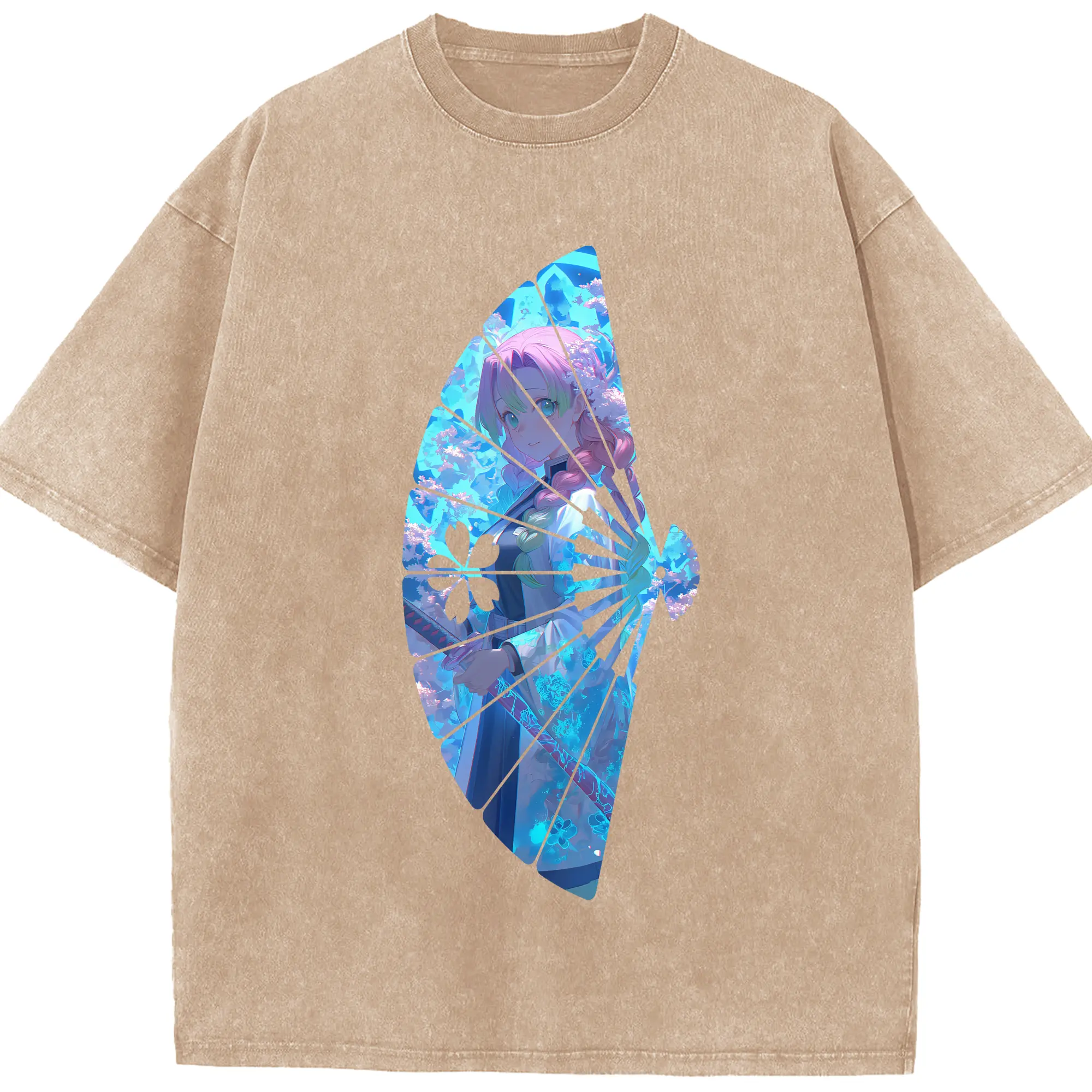 鬼滅の刃 グッズ,甘露寺 蜜璃 - 綿100% 半袖Tシャツ ・ フロントプリント ・ 快適 通気性 ・ 日常使い 散歩 スポーツ用