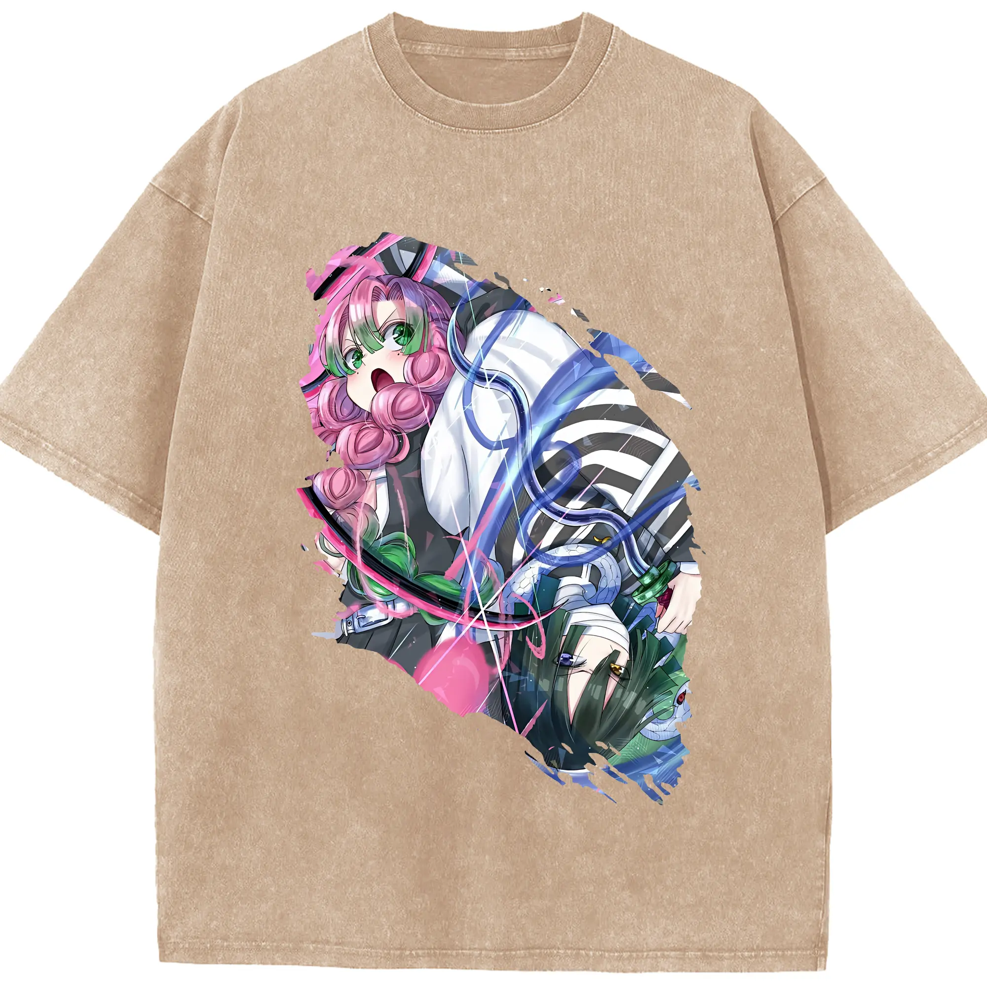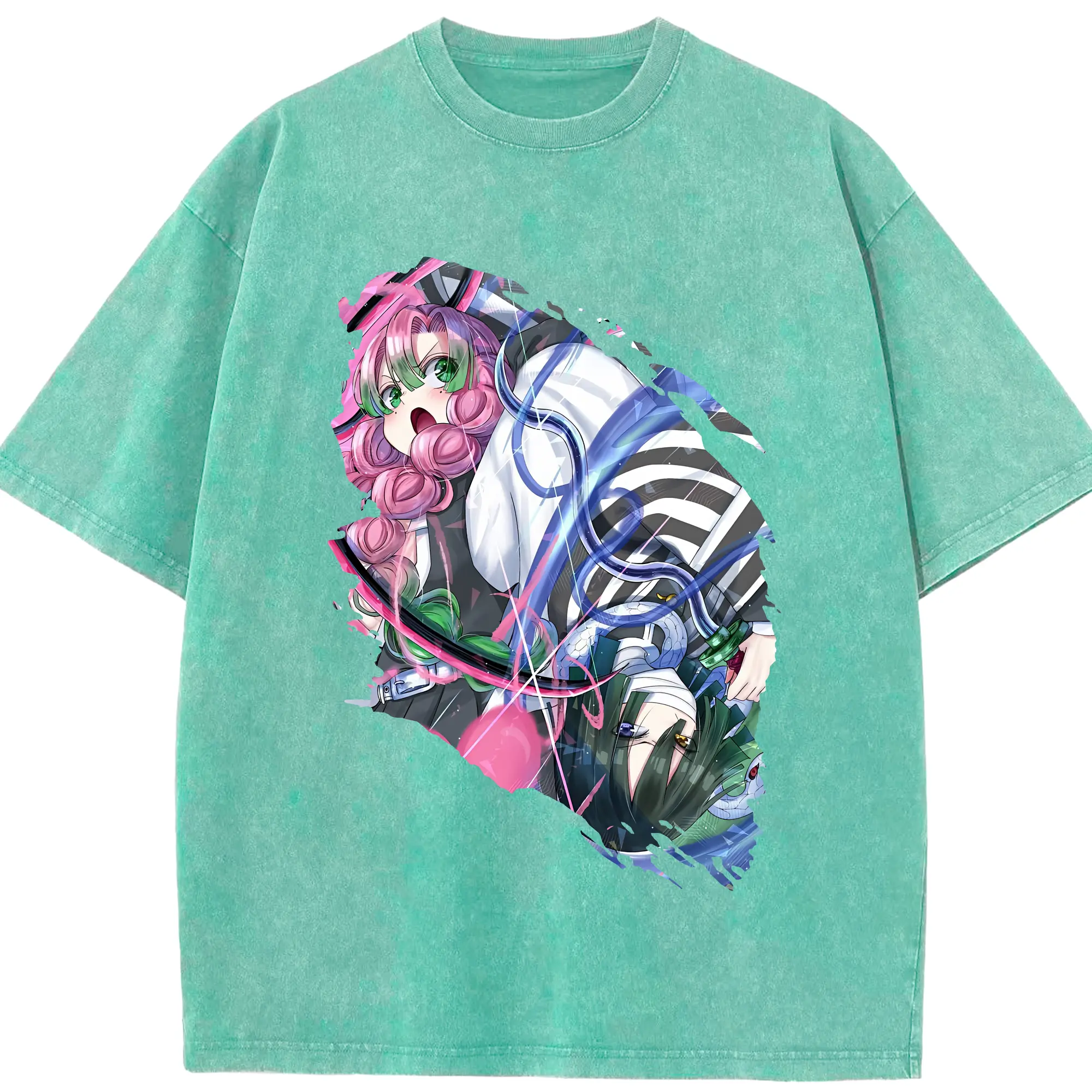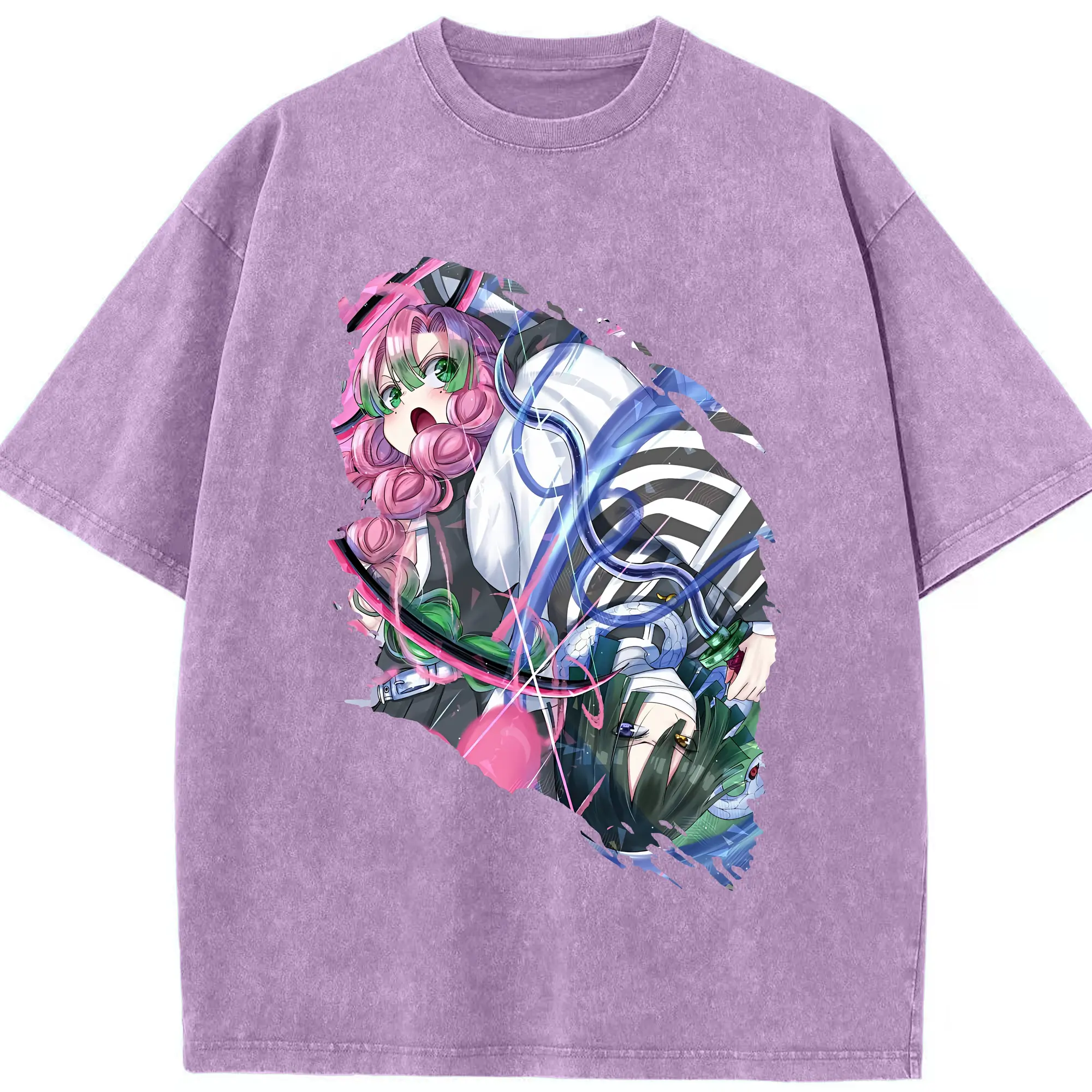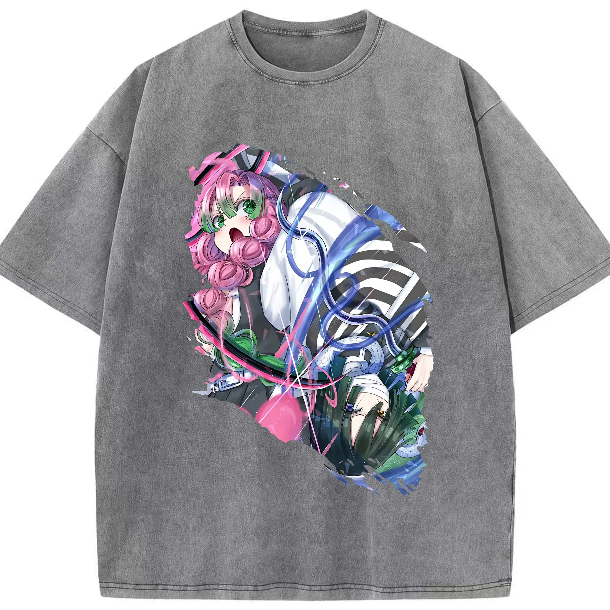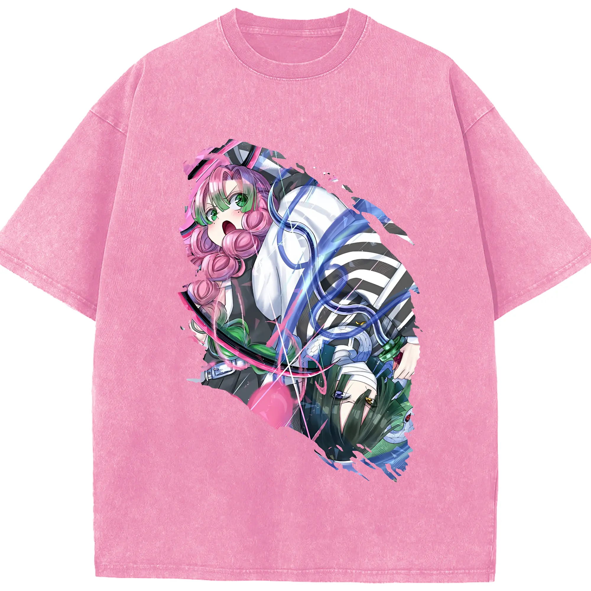 鬼滅の刃 グッズ,甘露寺 蜜璃 - 綿100% 半袖Tシャツ ・ フロントプリント ・ 快適 通気性 ・ 日常使い 散歩 スポーツ用