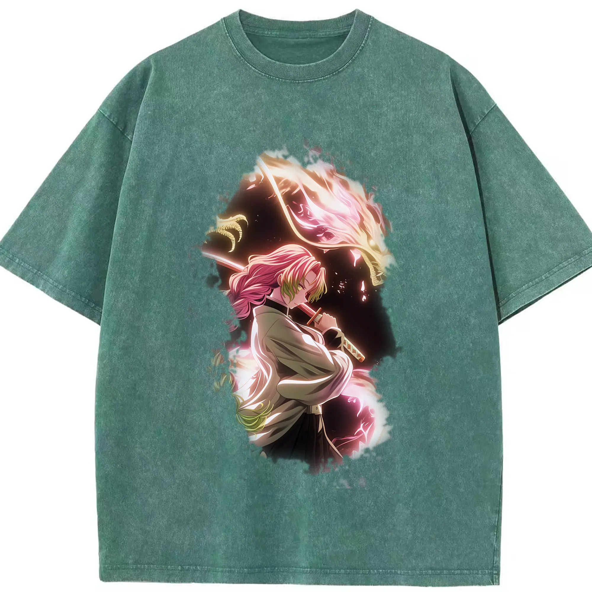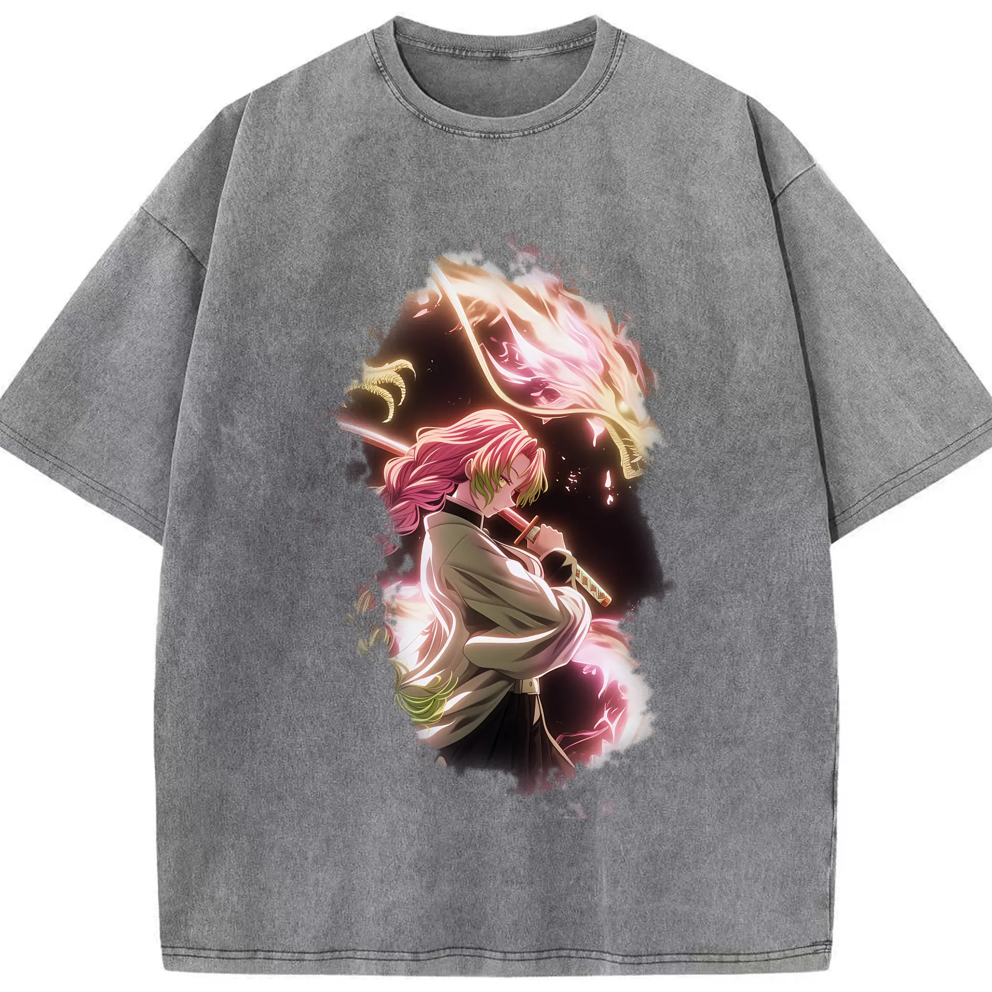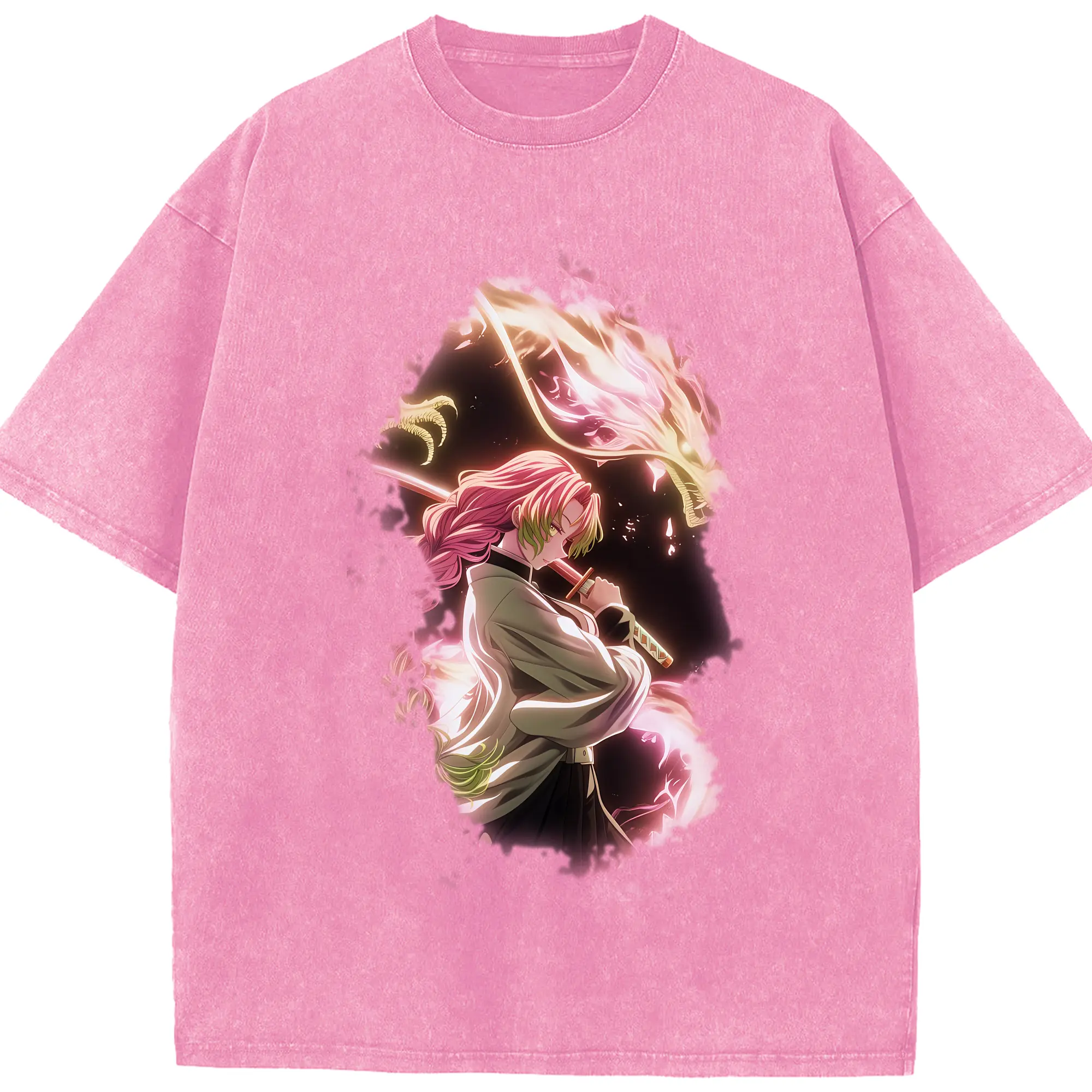 鬼滅の刃 グッズ,甘露寺 蜜璃 - 綿100% 半袖Tシャツ ・ フロントプリント ・ 快適 通気性 ・ 日常使い 散歩 スポーツ用