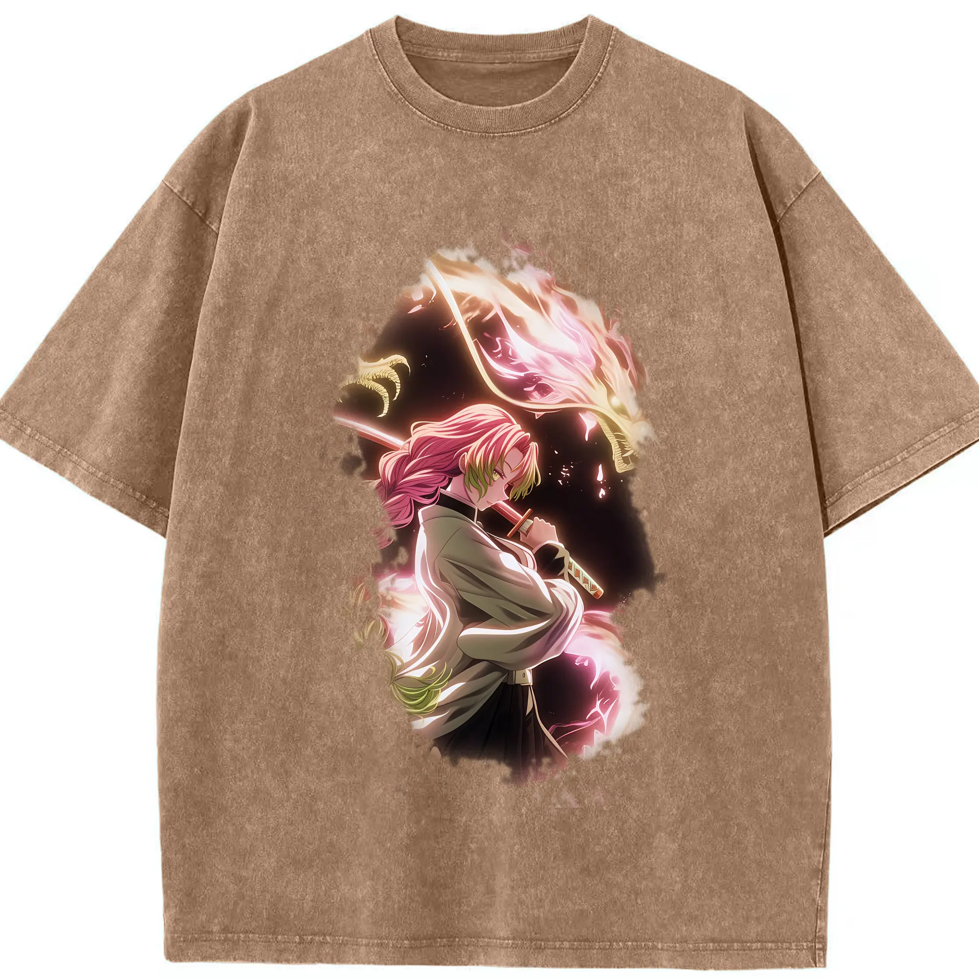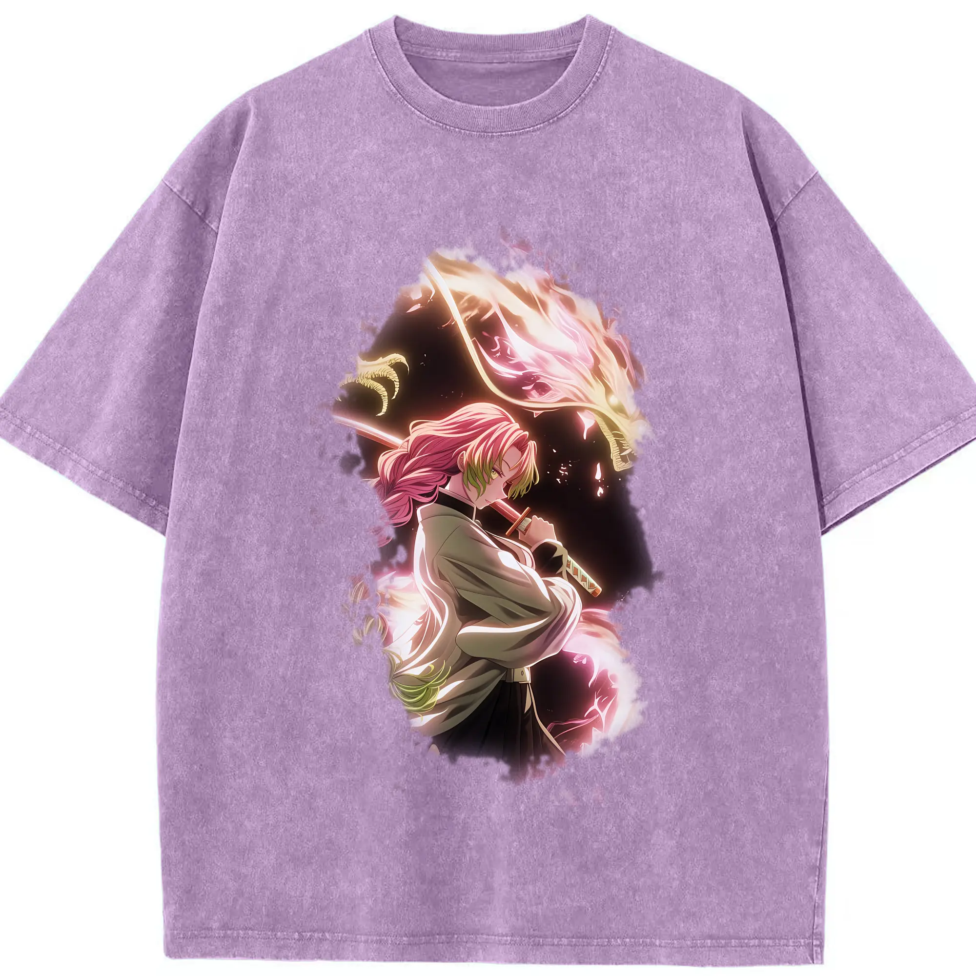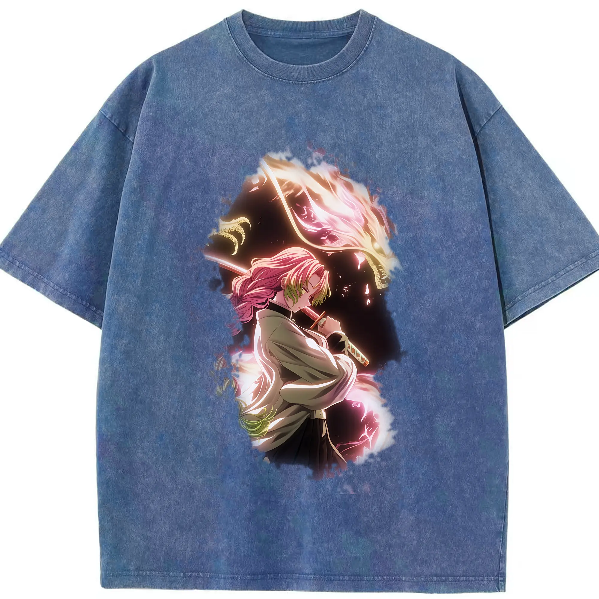 鬼滅の刃 グッズ,甘露寺 蜜璃 - 綿100% 半袖Tシャツ ・ フロントプリント ・ 快適 通気性 ・ 日常使い 散歩 スポーツ用
