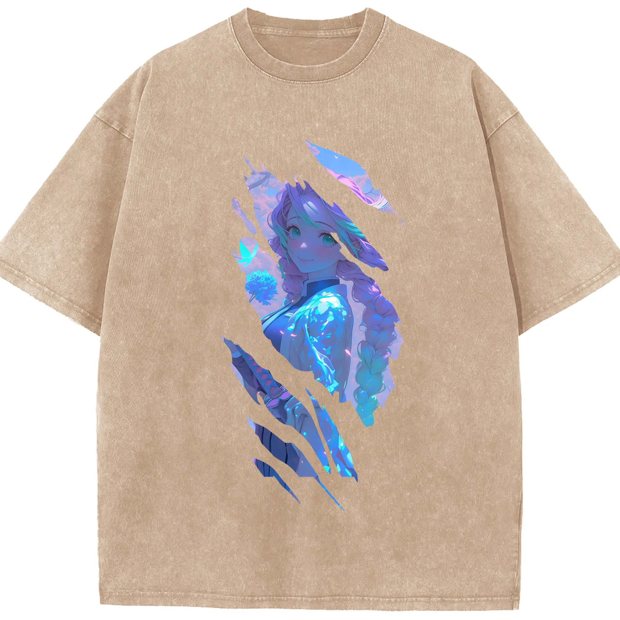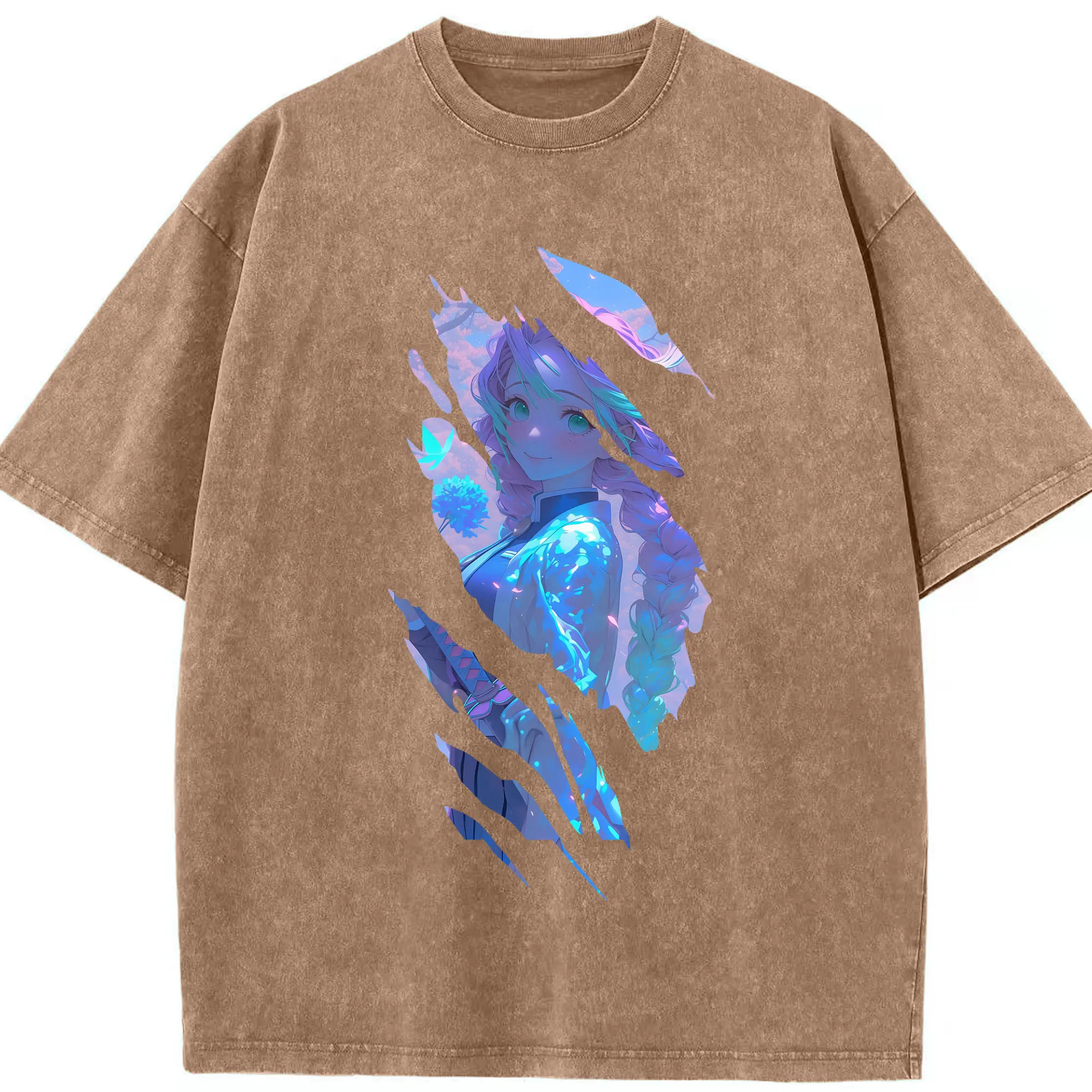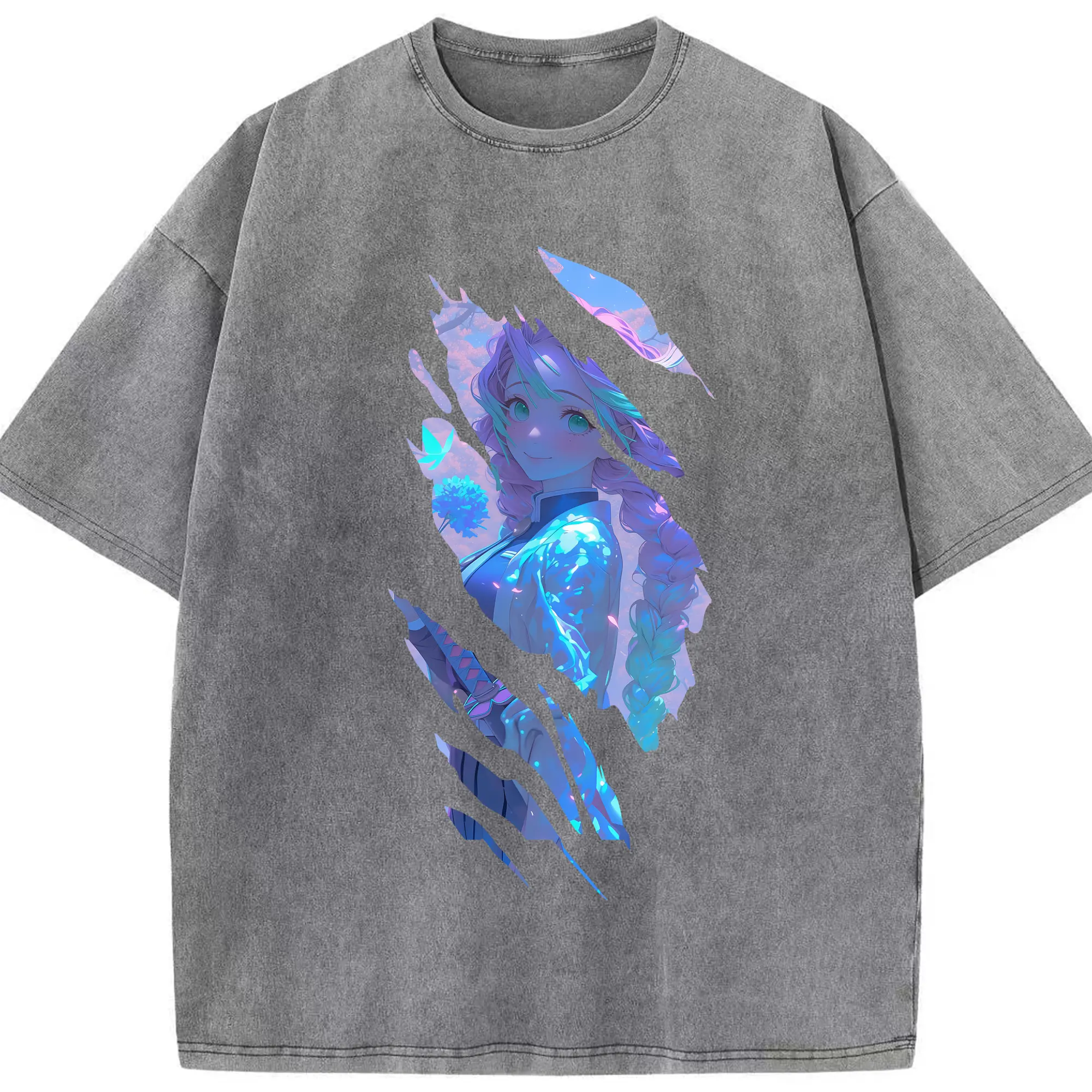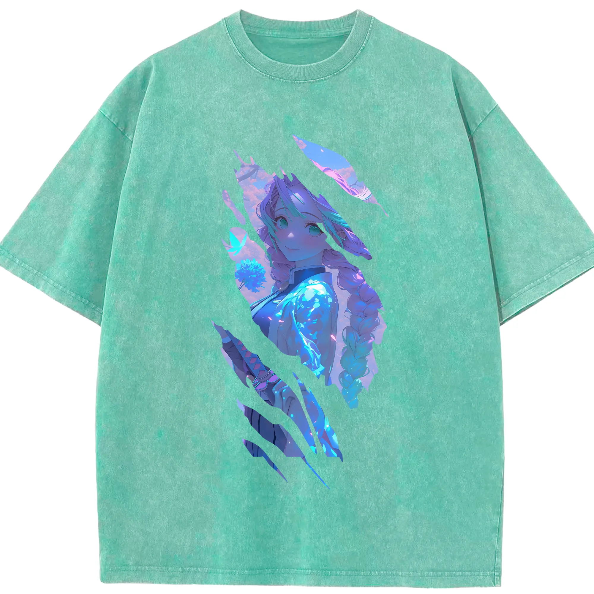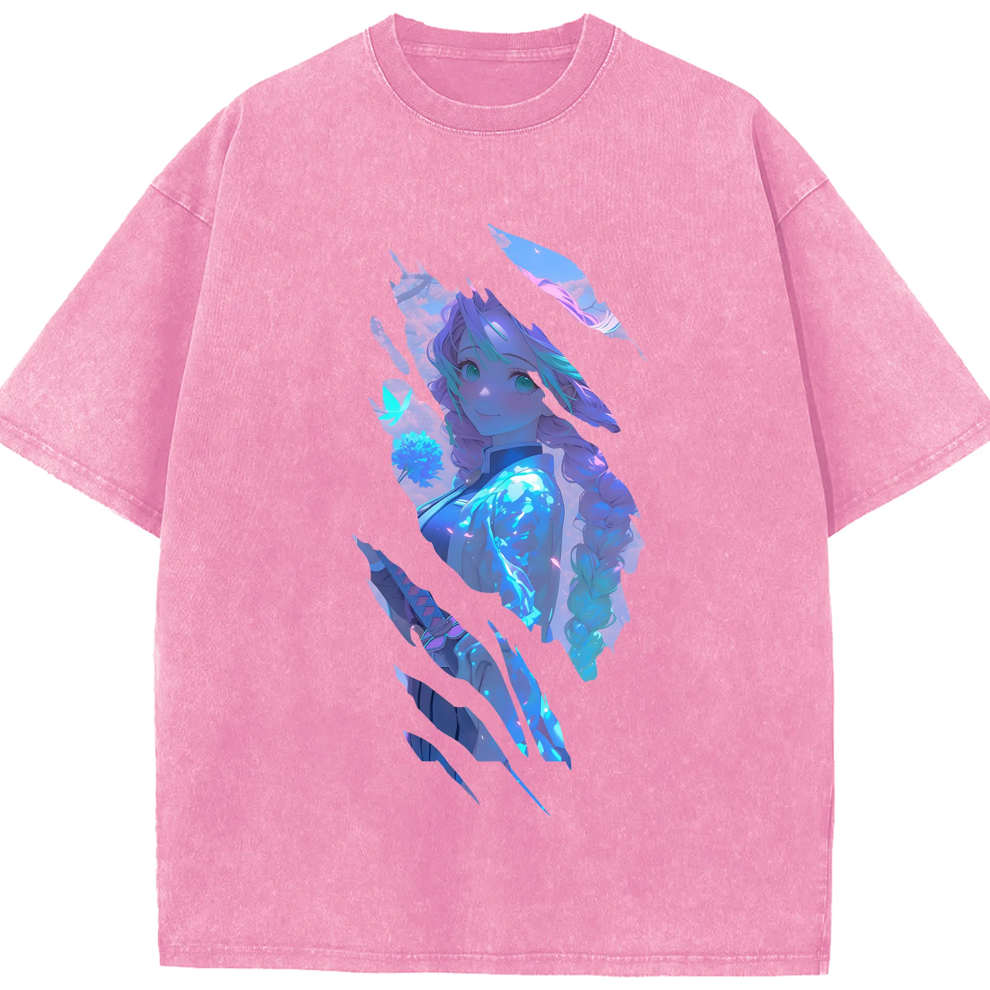 鬼滅の刃 グッズ,甘露寺 蜜璃 - 綿100% 半袖Tシャツ ・ フロントプリント ・ 快適 通気性 ・ 日常使い 散歩 スポーツ用