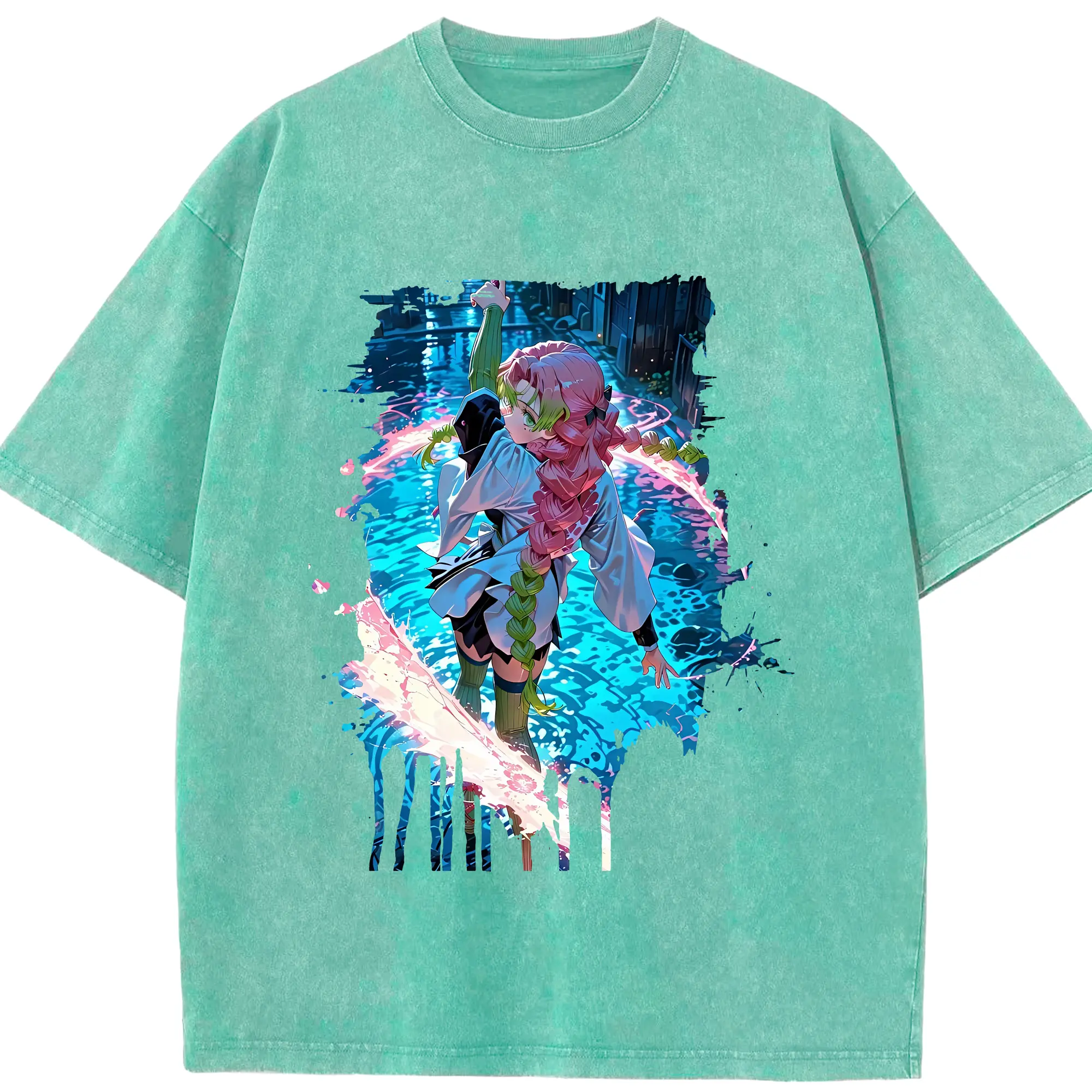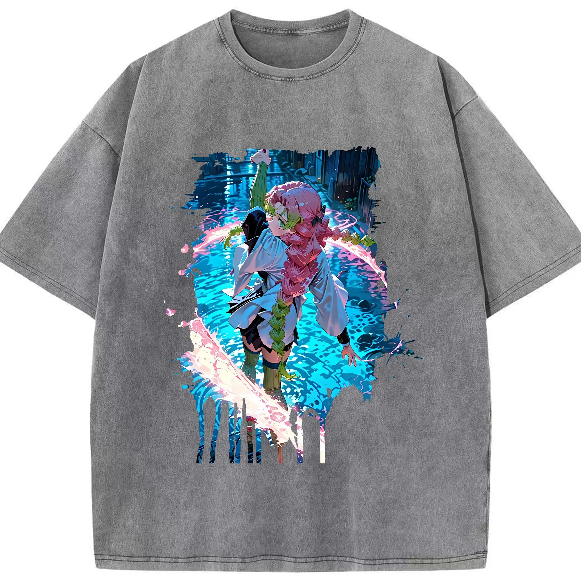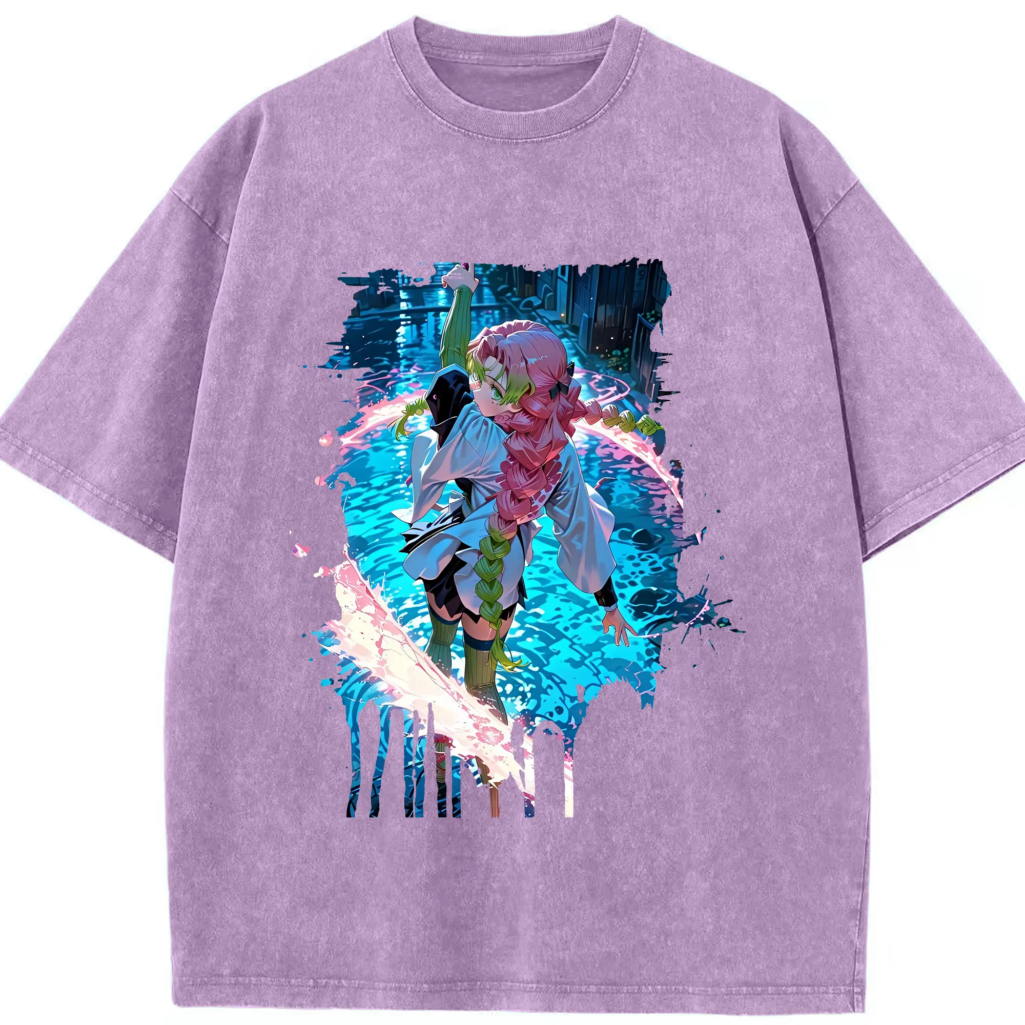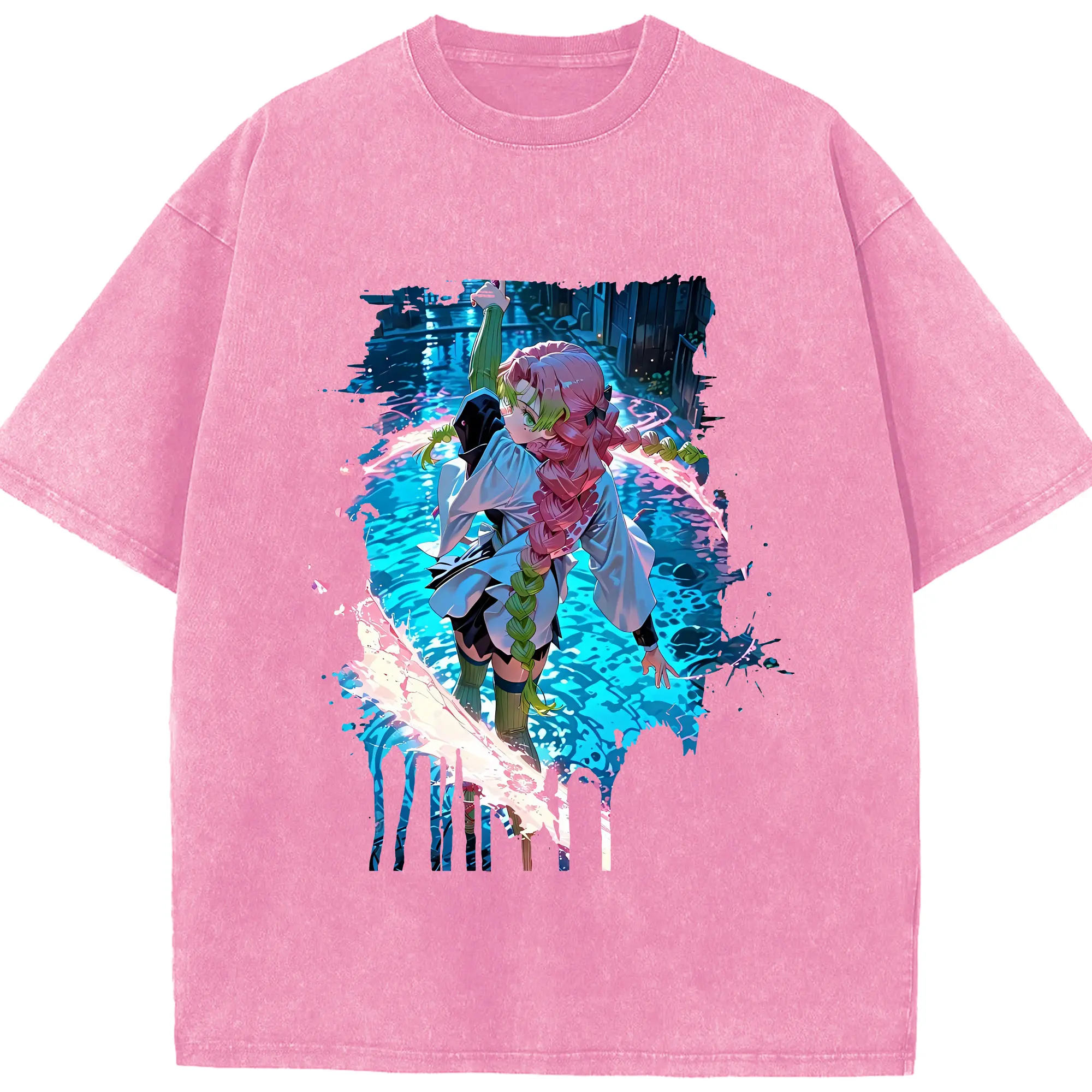 鬼滅の刃 グッズ,甘露寺 蜜璃 - 綿100% 半袖Tシャツ ・ フロントプリント ・ 快適 通気性 ・ 日常使い 散歩 スポーツ用