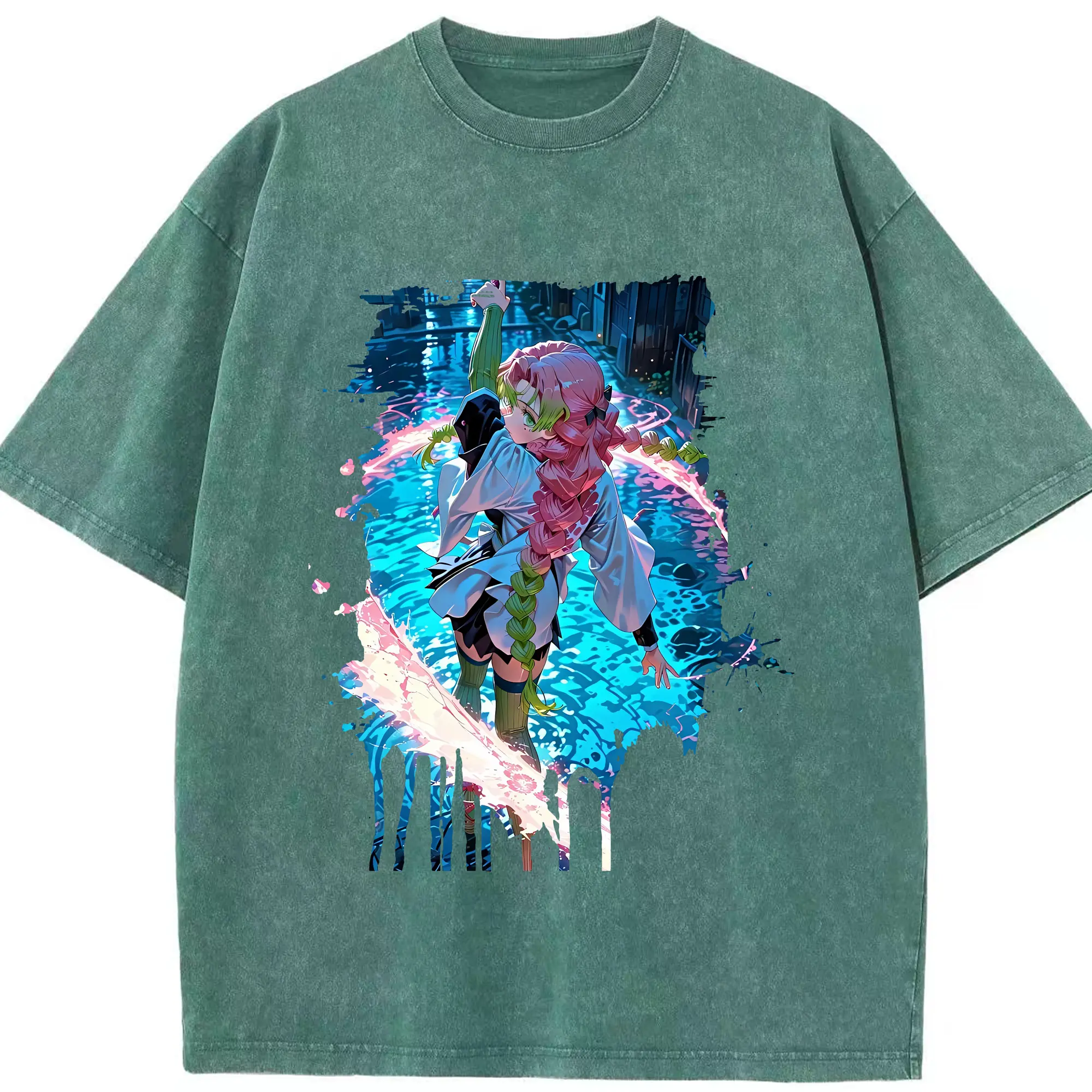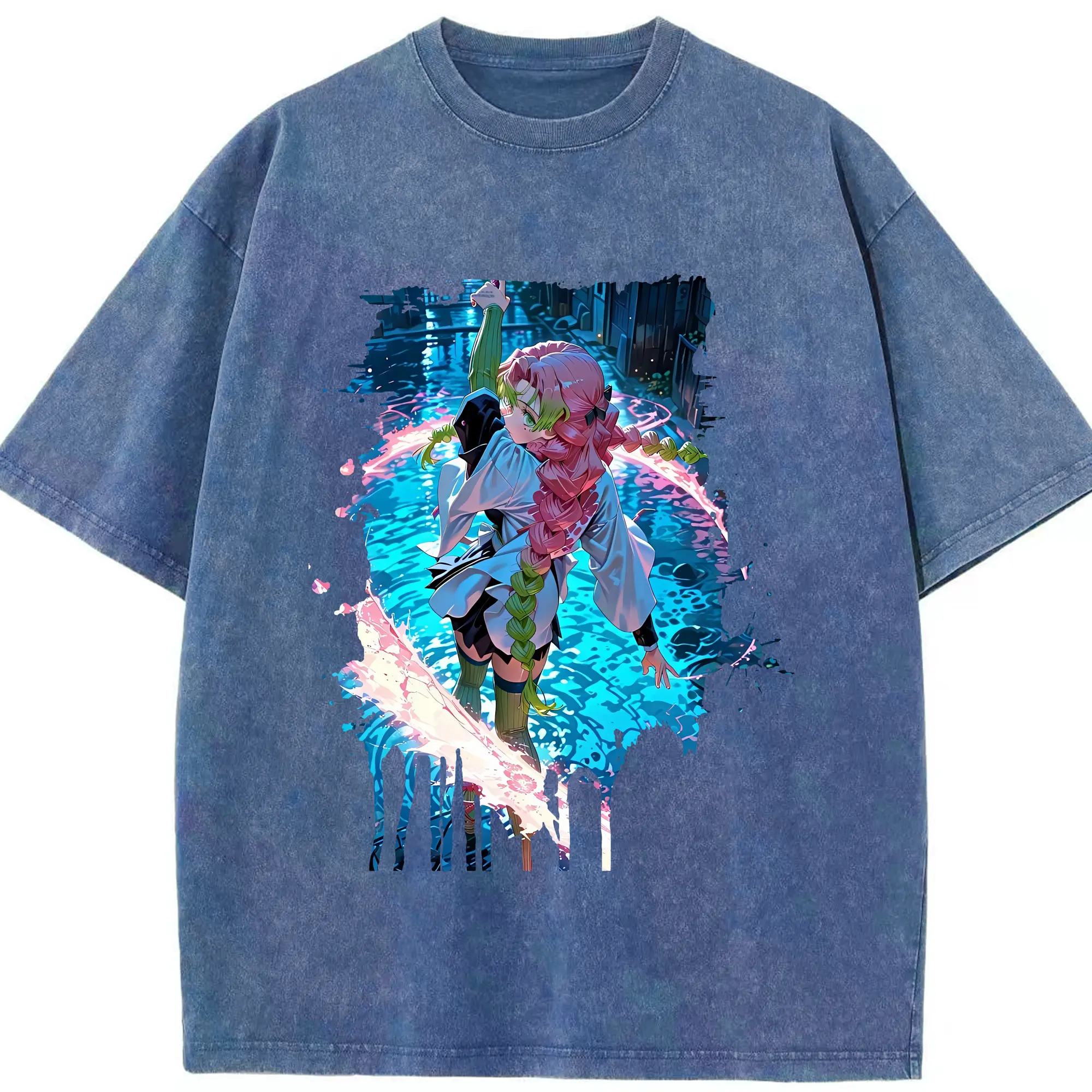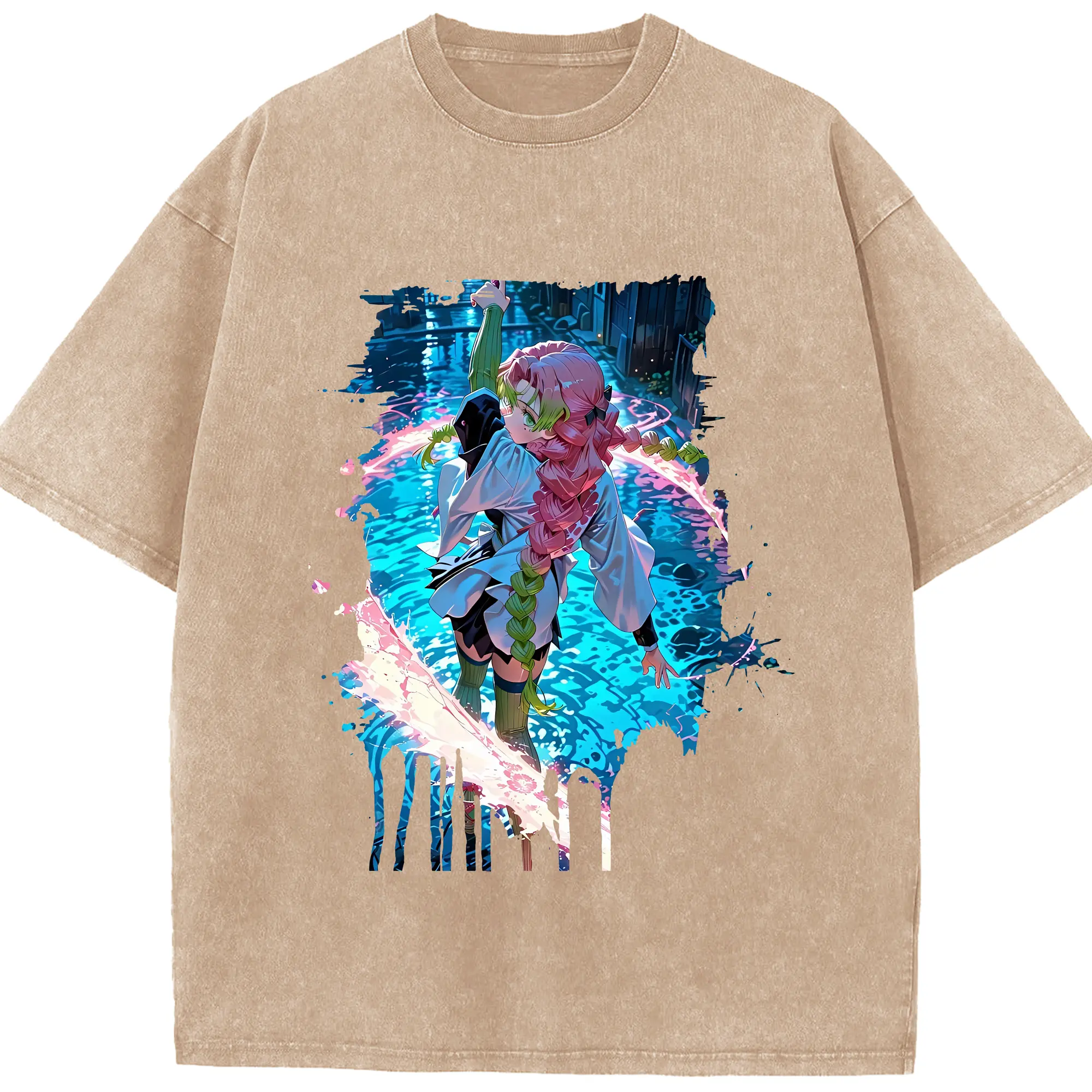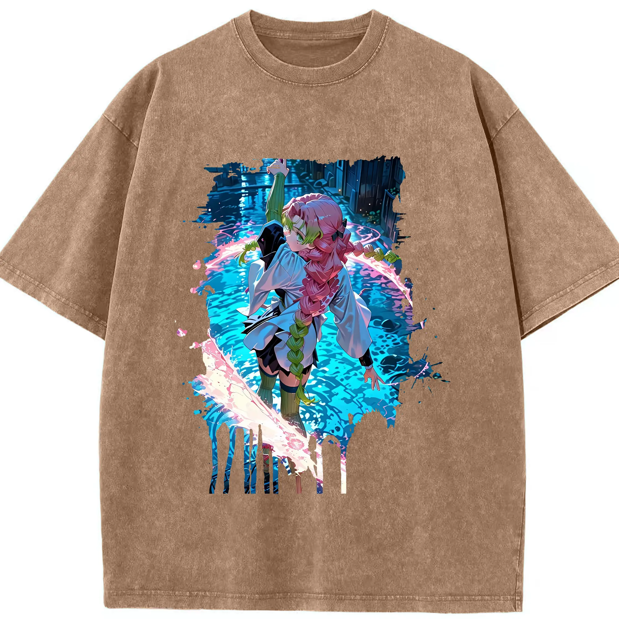 鬼滅の刃 グッズ,甘露寺 蜜璃 - 綿100% 半袖Tシャツ ・ フロントプリント ・ 快適 通気性 ・ 日常使い 散歩 スポーツ用