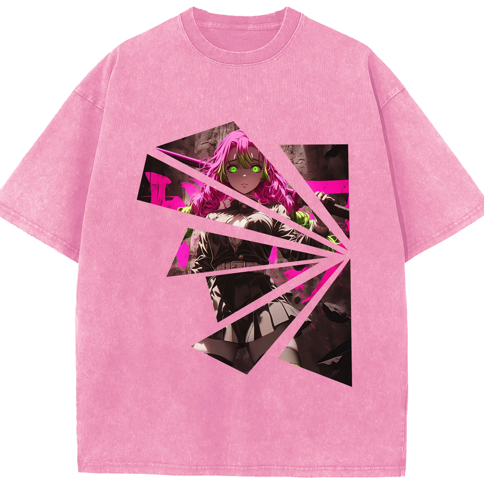鬼滅の刃 グッズ,甘露寺 蜜璃 - 綿100% 半袖Tシャツ ・ フロントプリント ・ 快適 通気性 ・ 日常使い 散歩 スポーツ用