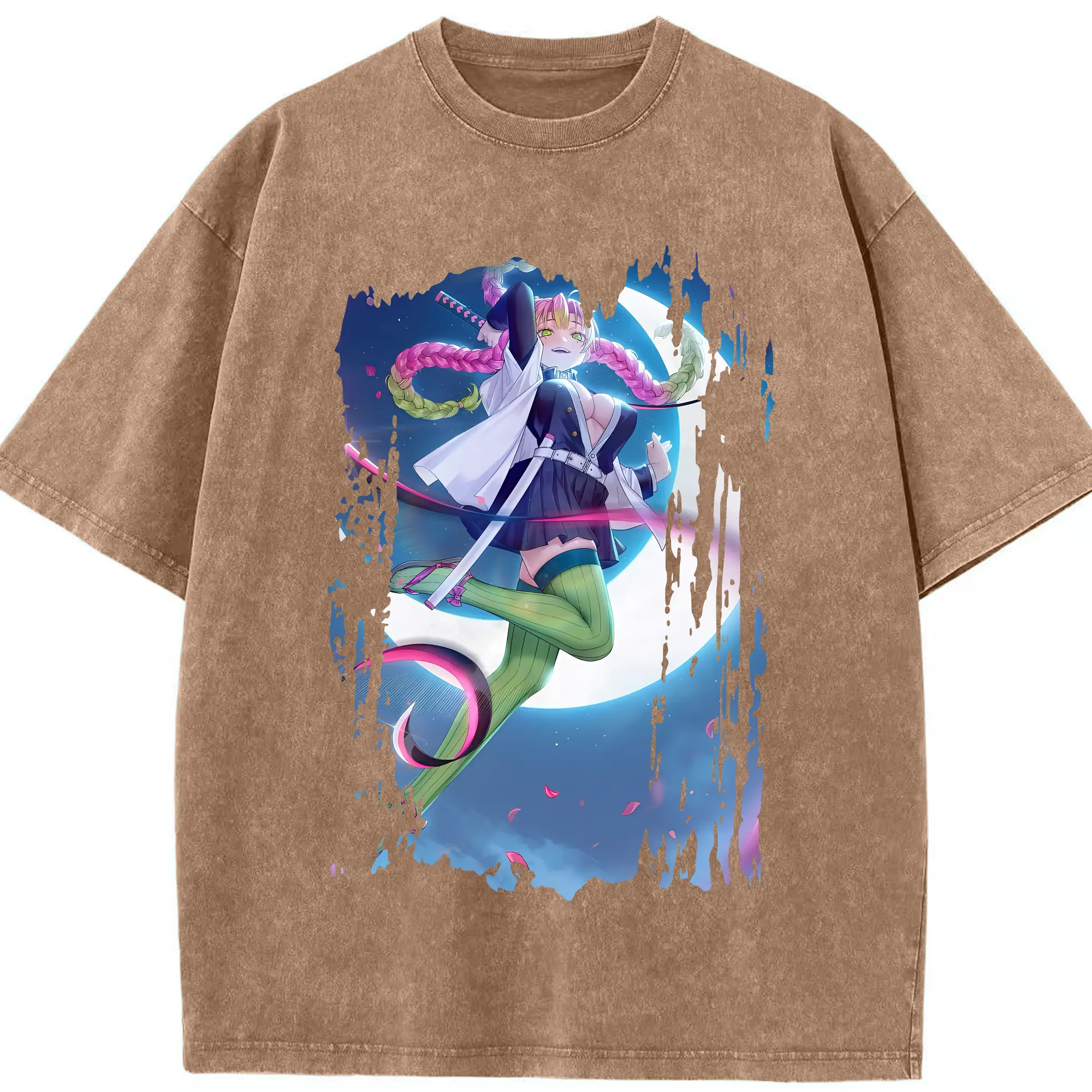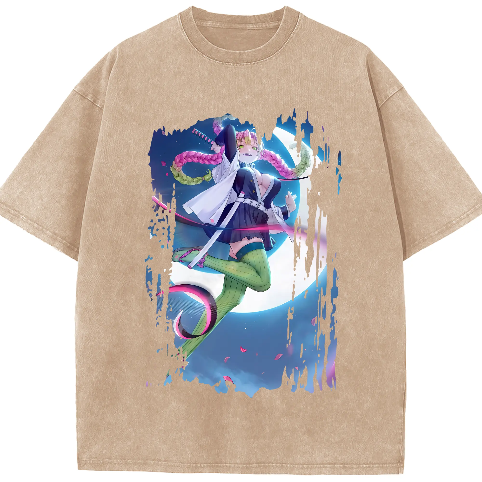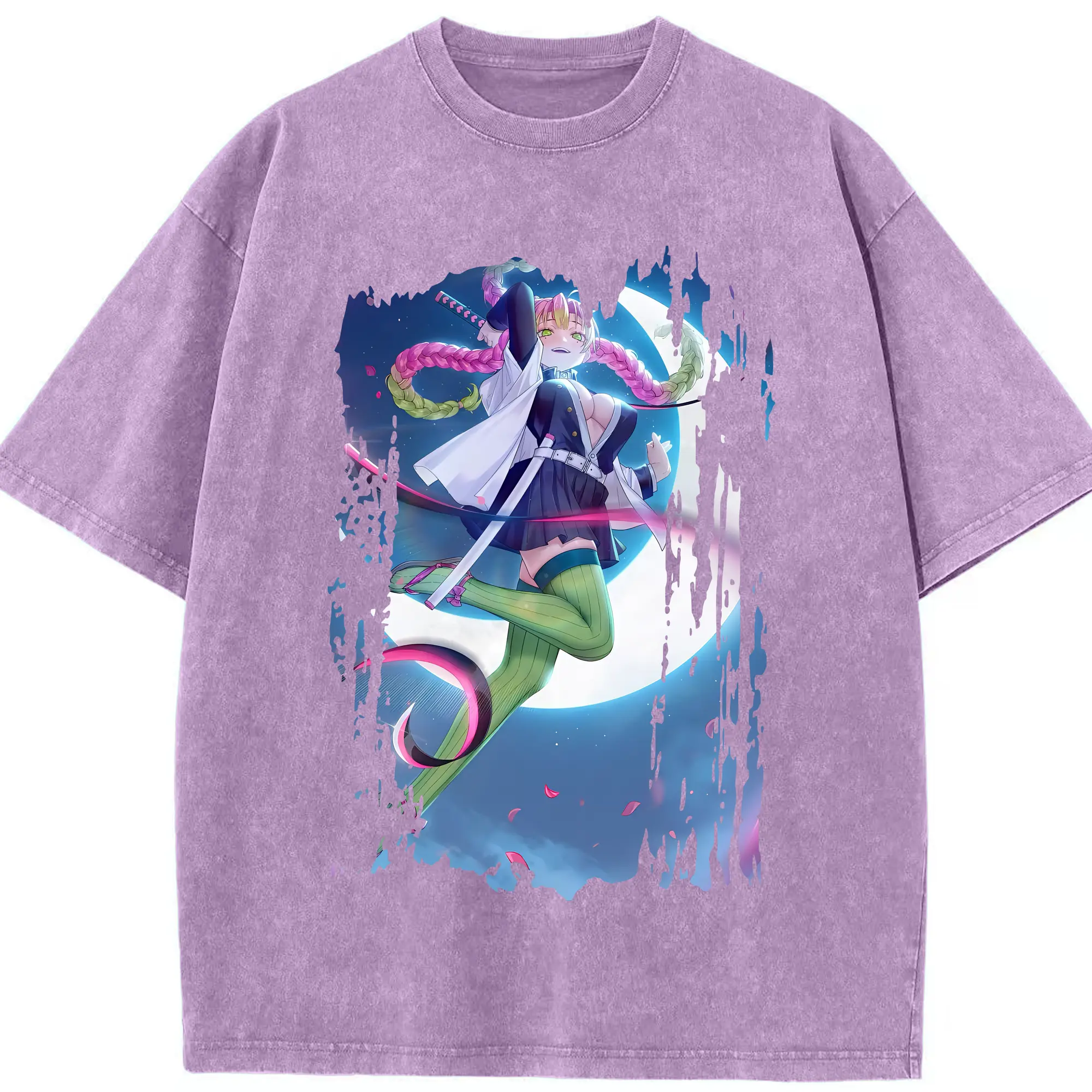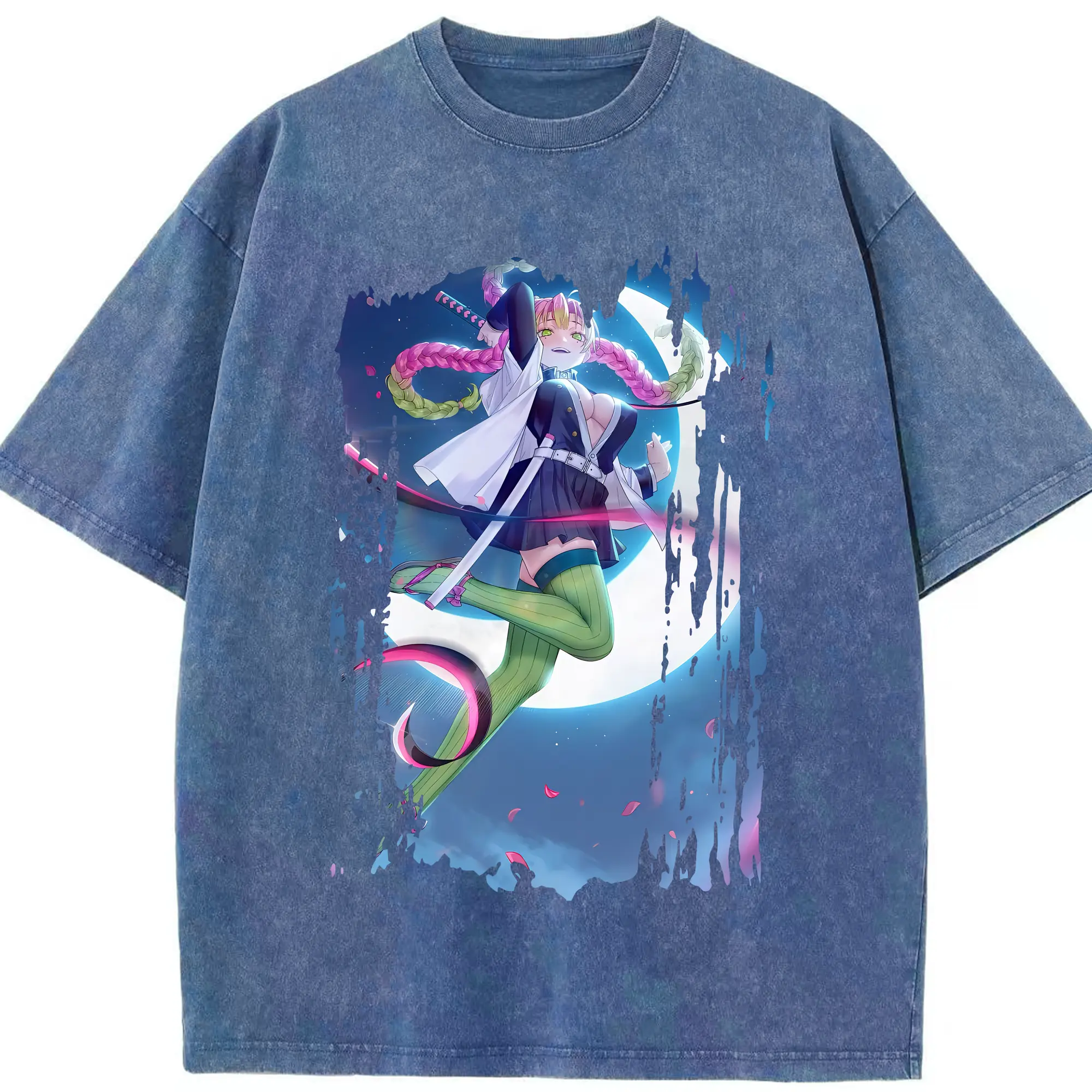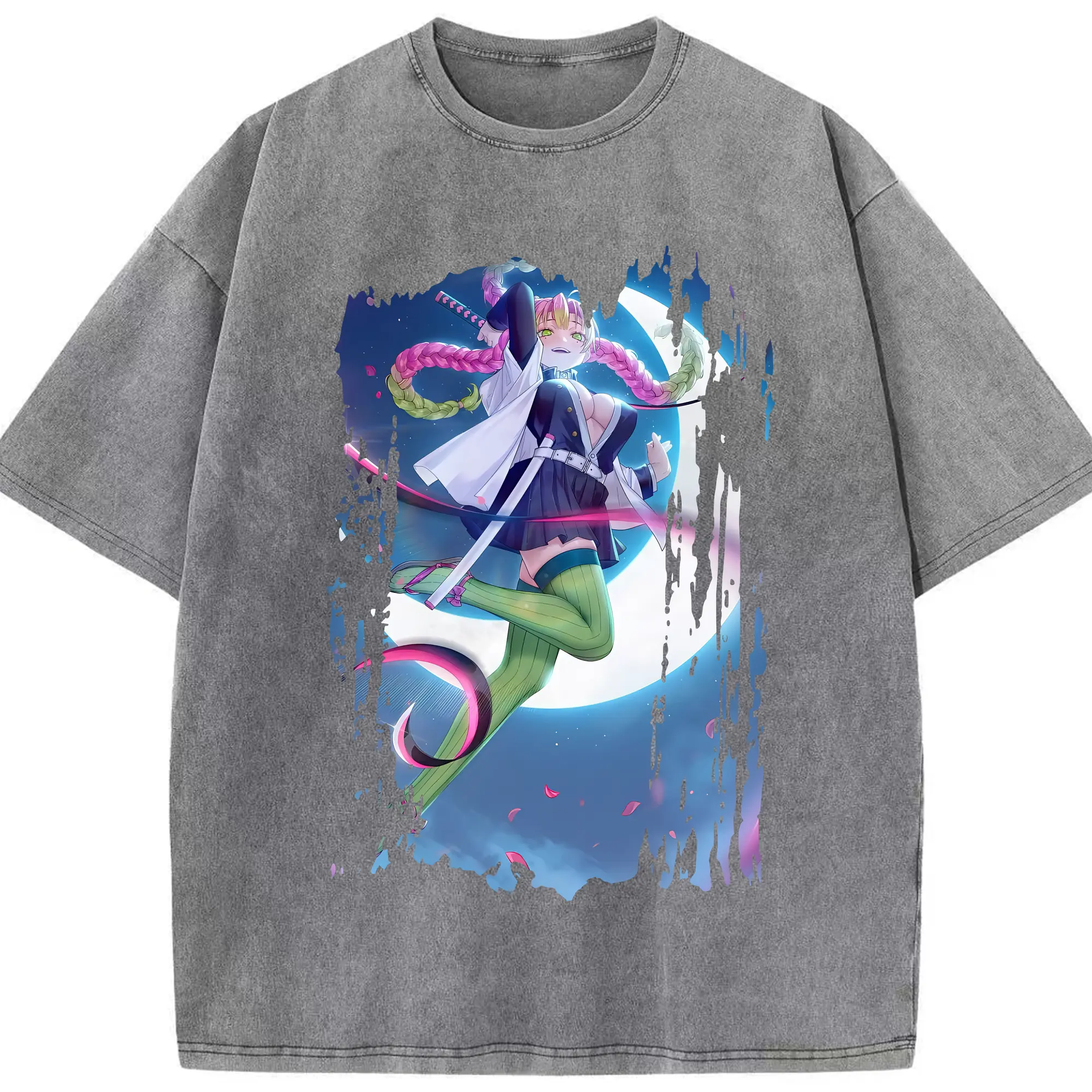 鬼滅の刃 グッズ,宇髄 天元 - 綿100% ヴィンテージ風 半袖Tシャツ ・ フロントプリント ・ 柔らか肌触り ・ 通気性 快適 ・ スポーツ カジュアル 外出用