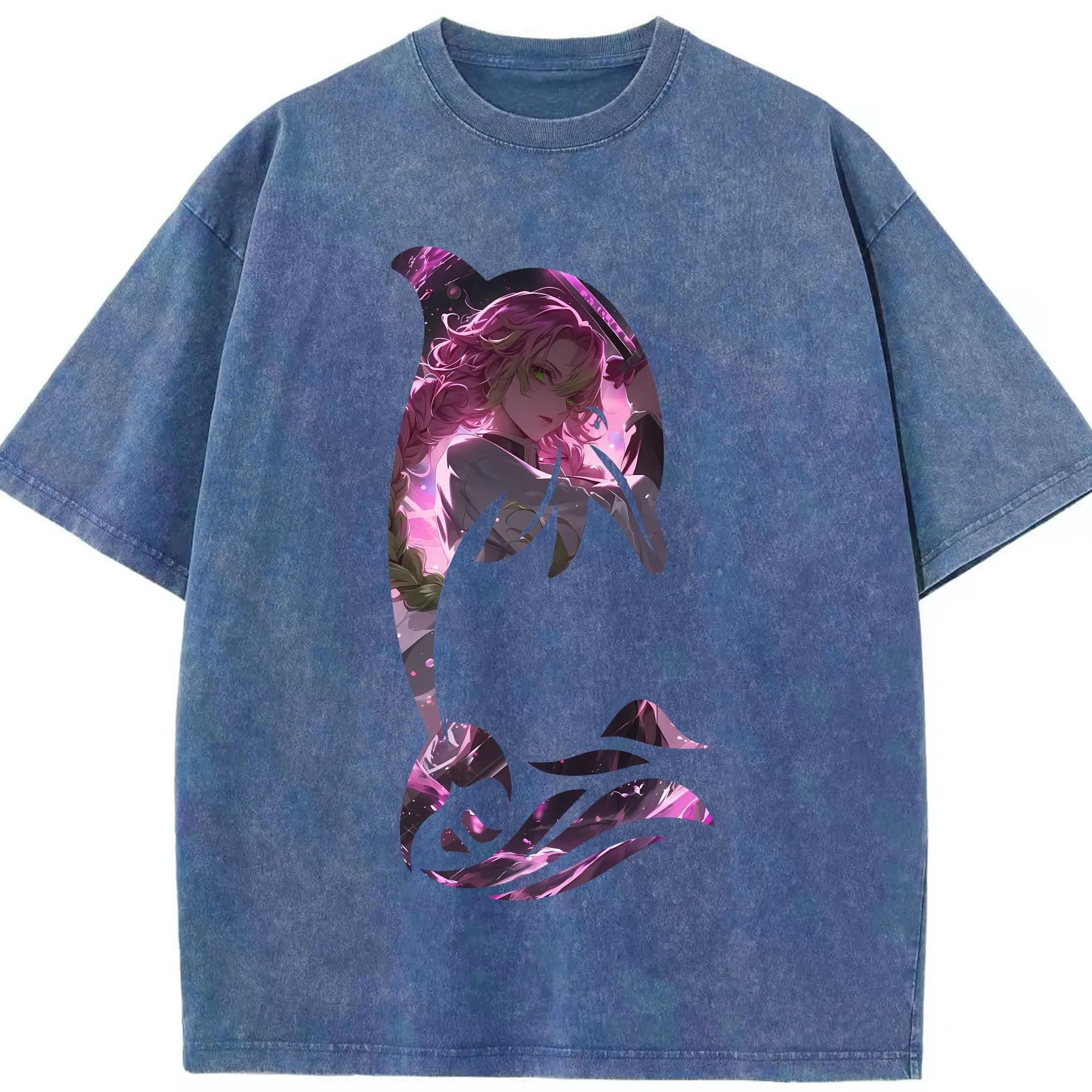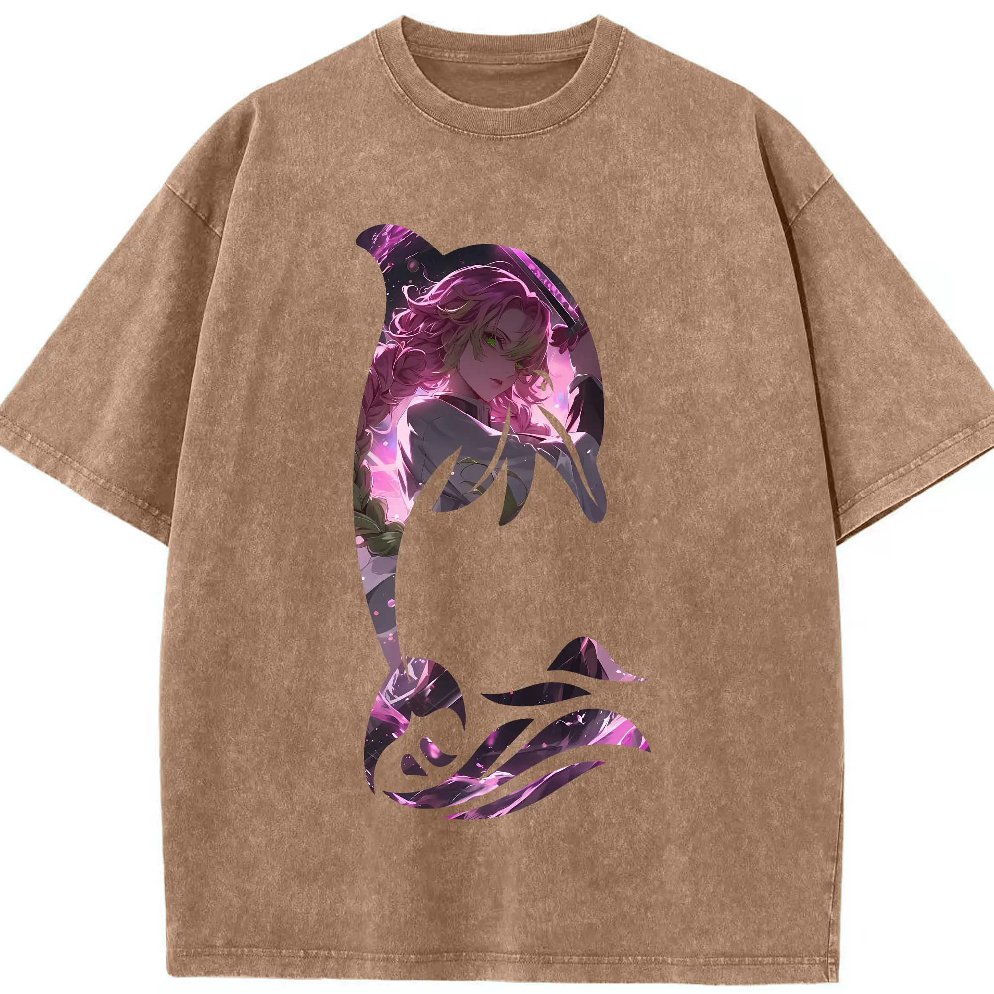 鬼滅の刃 グッズ,伊黒 小芭内 - 綿100% ヴィンテージ風 半袖Tシャツ ・ フロントプリント ・ 柔らか肌触り ・ 通気性 快適 ・ スポーツ カジュアル 外出用