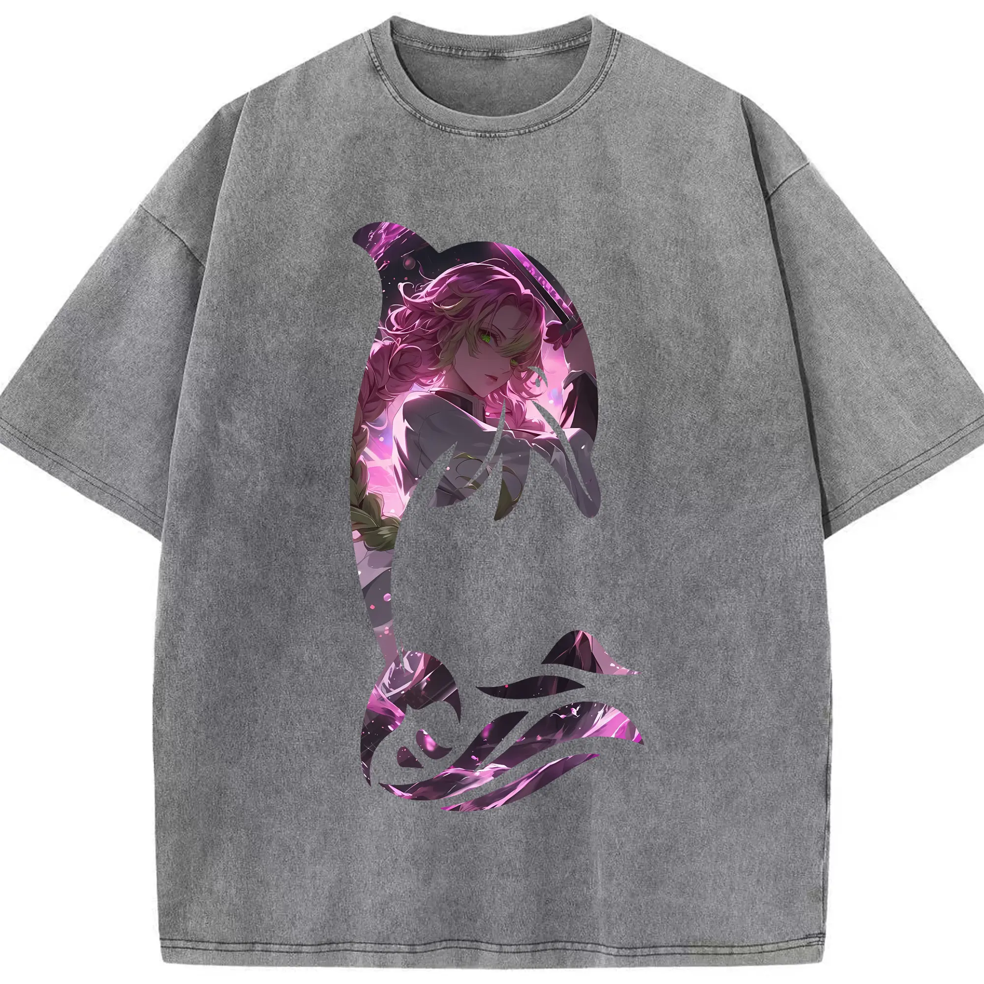鬼滅の刃 グッズ,甘露寺 蜜璃 - 綿100% 半袖Tシャツ ・ フロントプリント ・ 快適 通気性 ・ 日常使い 散歩 スポーツ用