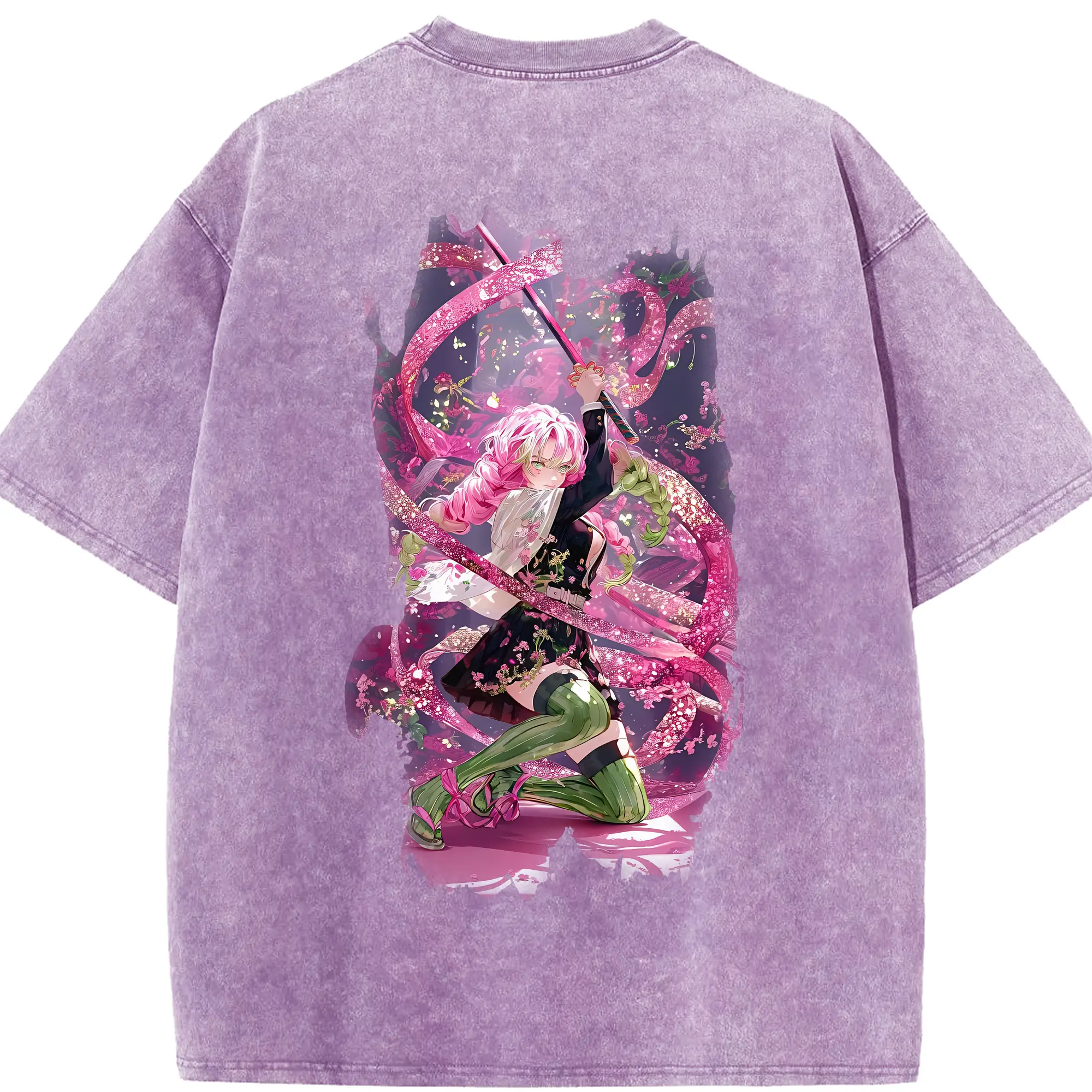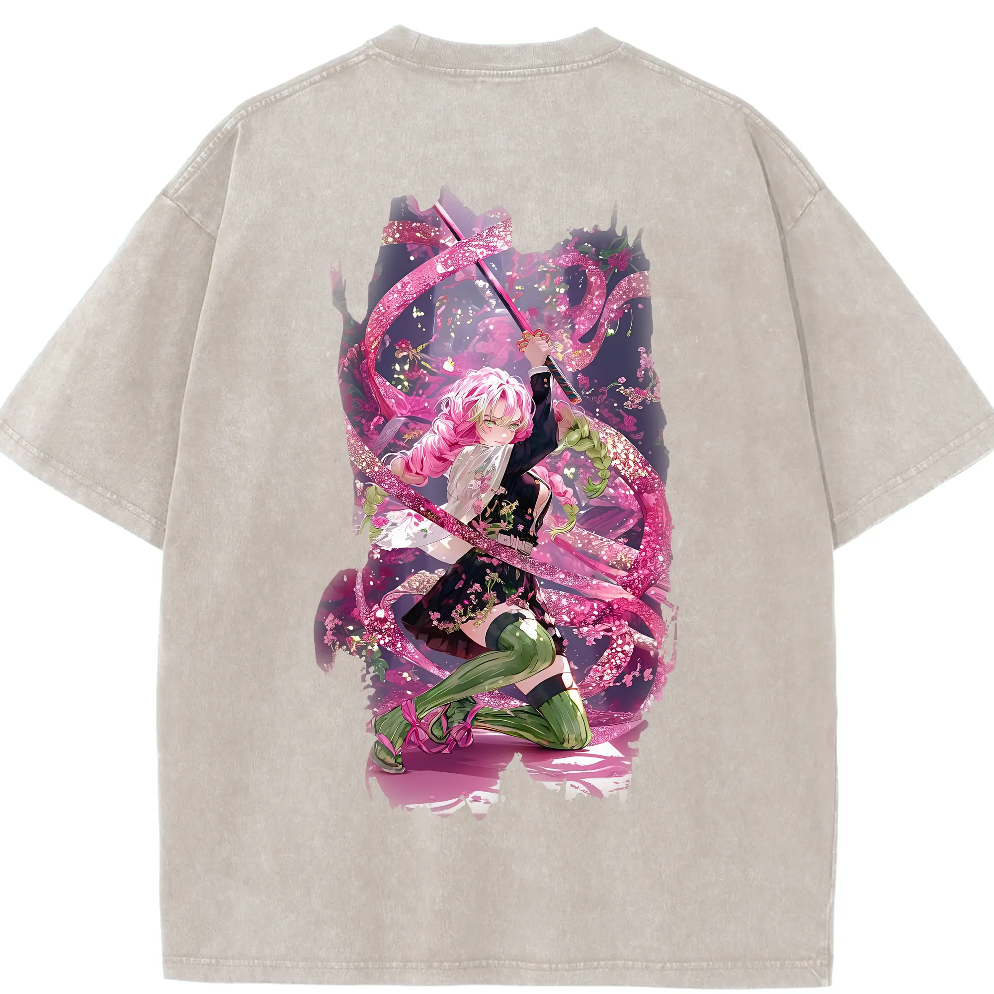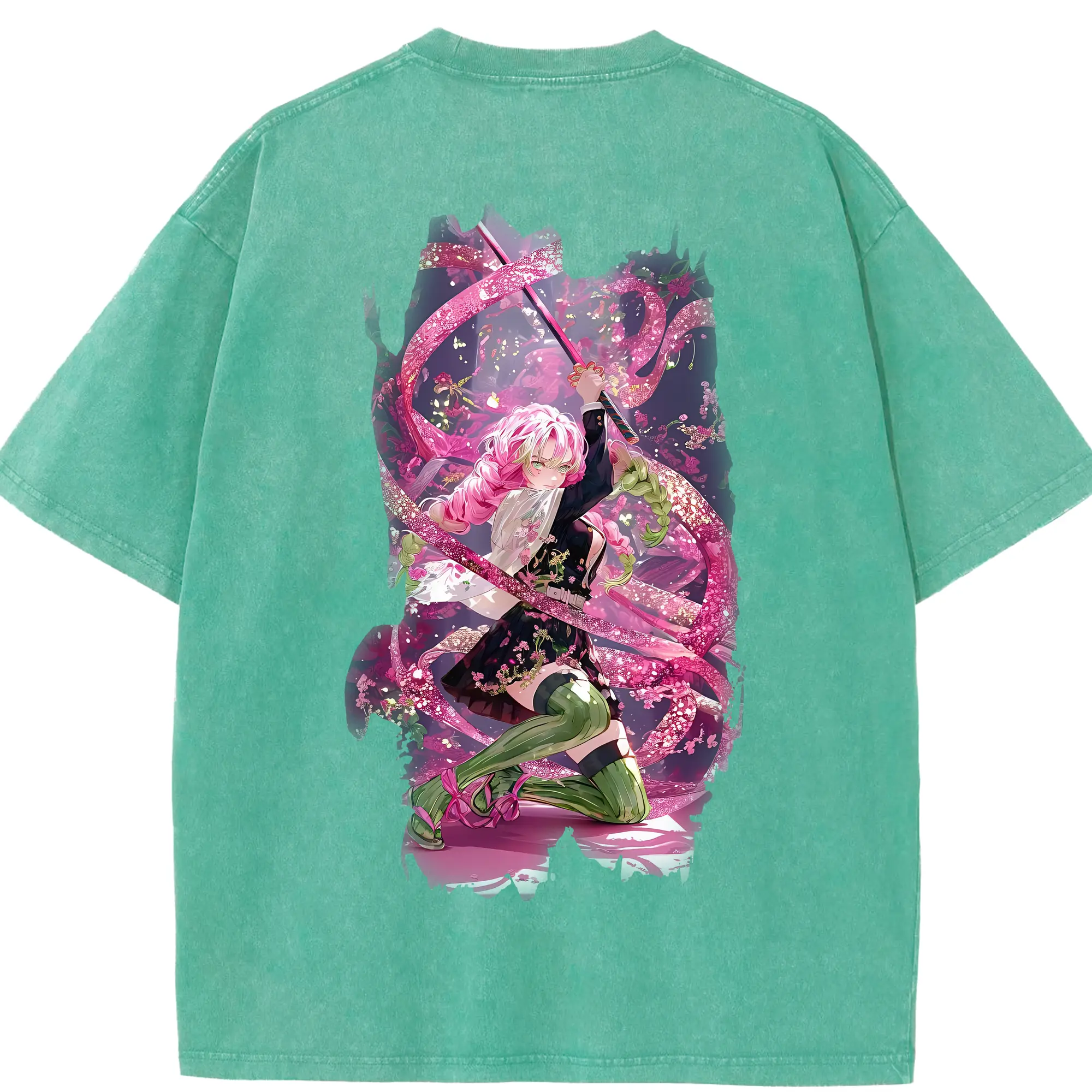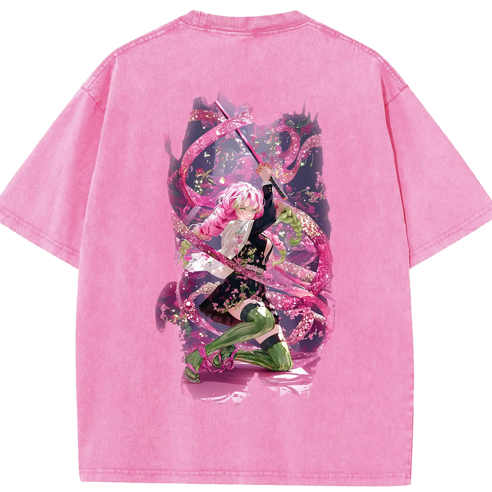 鬼滅の刃 グッズ,甘露寺 蜜璃 - 綿100% 半袖Tシャツ ・ バックプリント ・ 快適 通気性 ・ 日常使い 散歩 スポーツ用