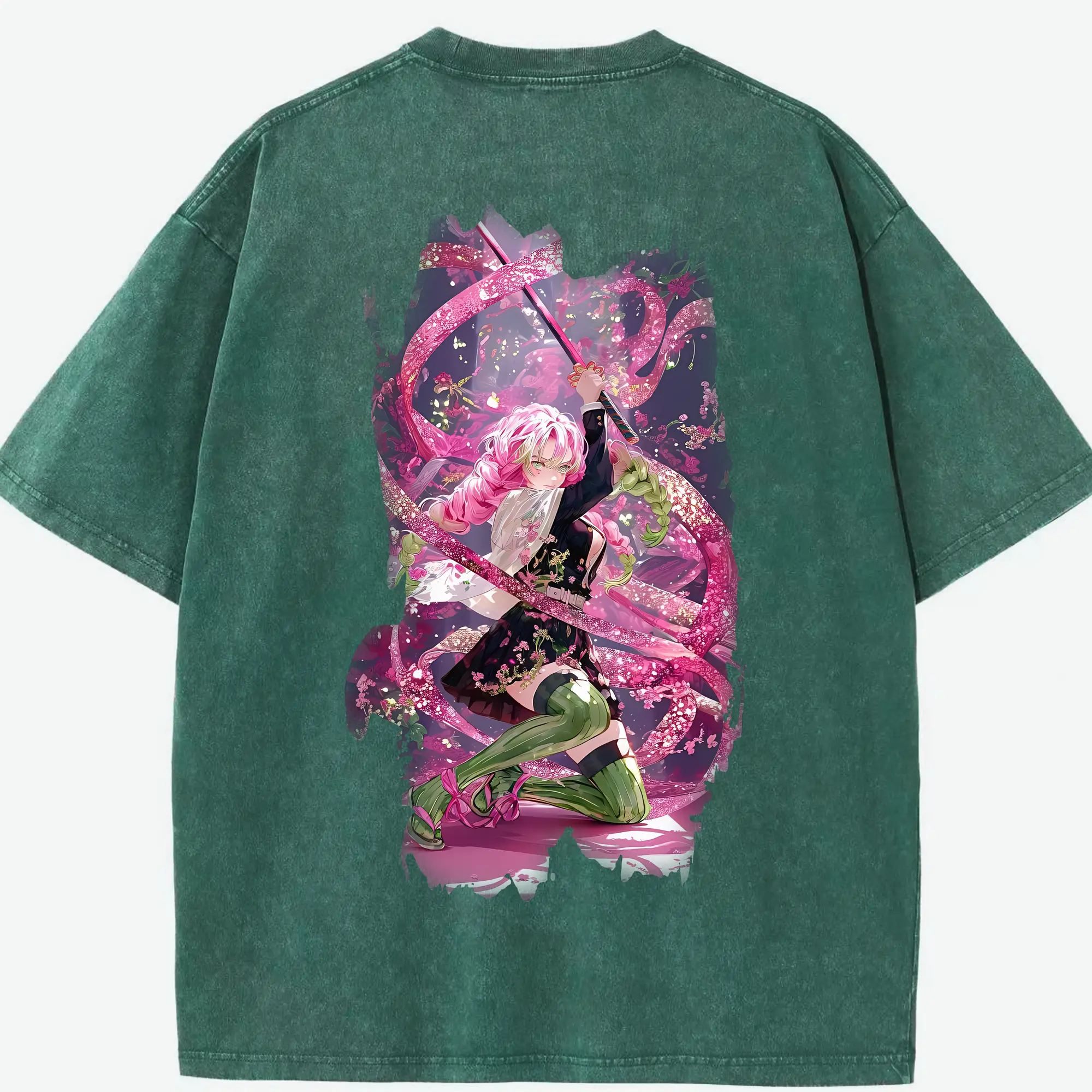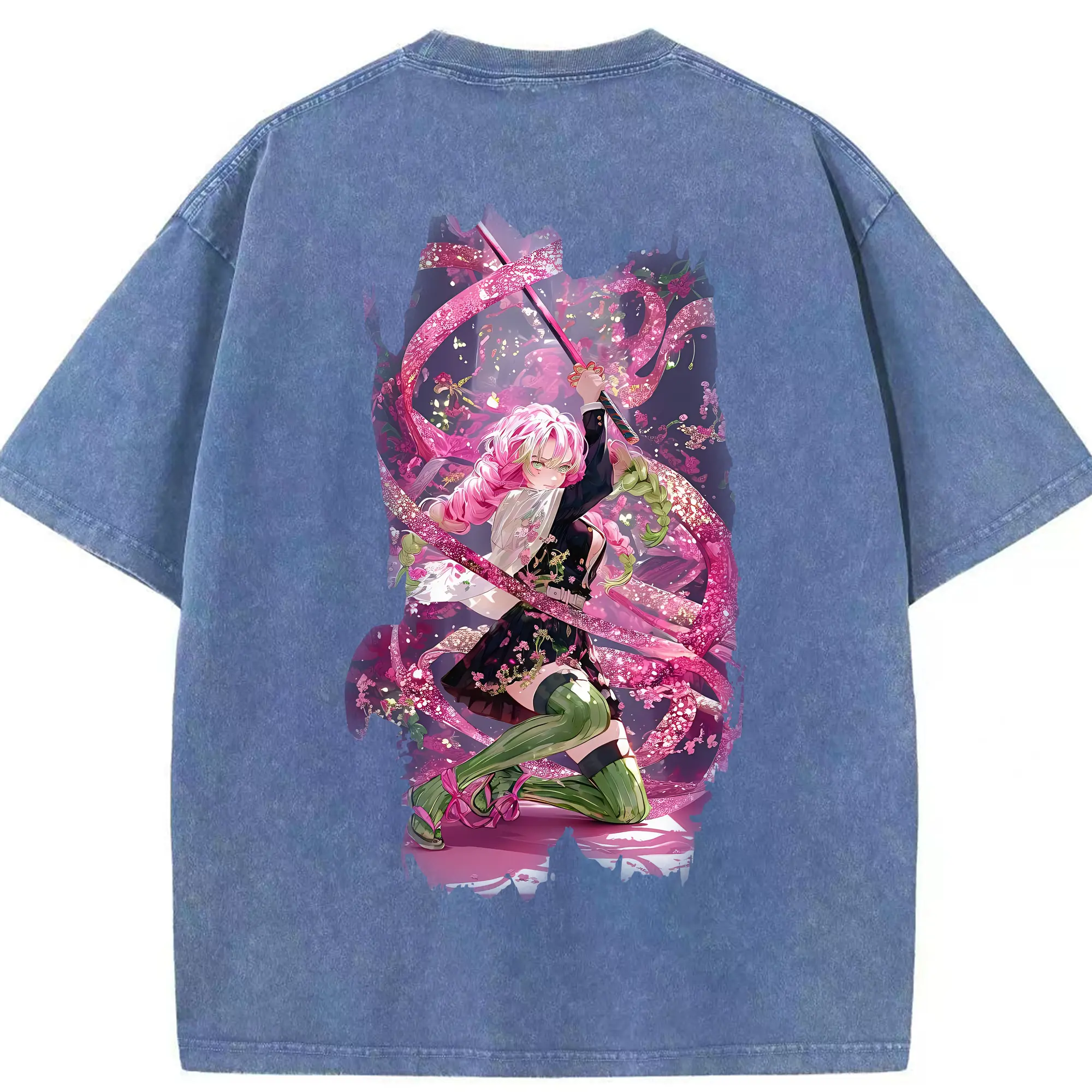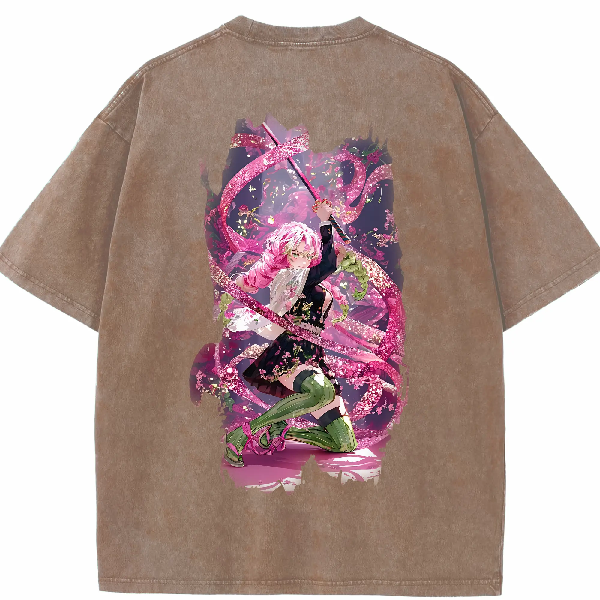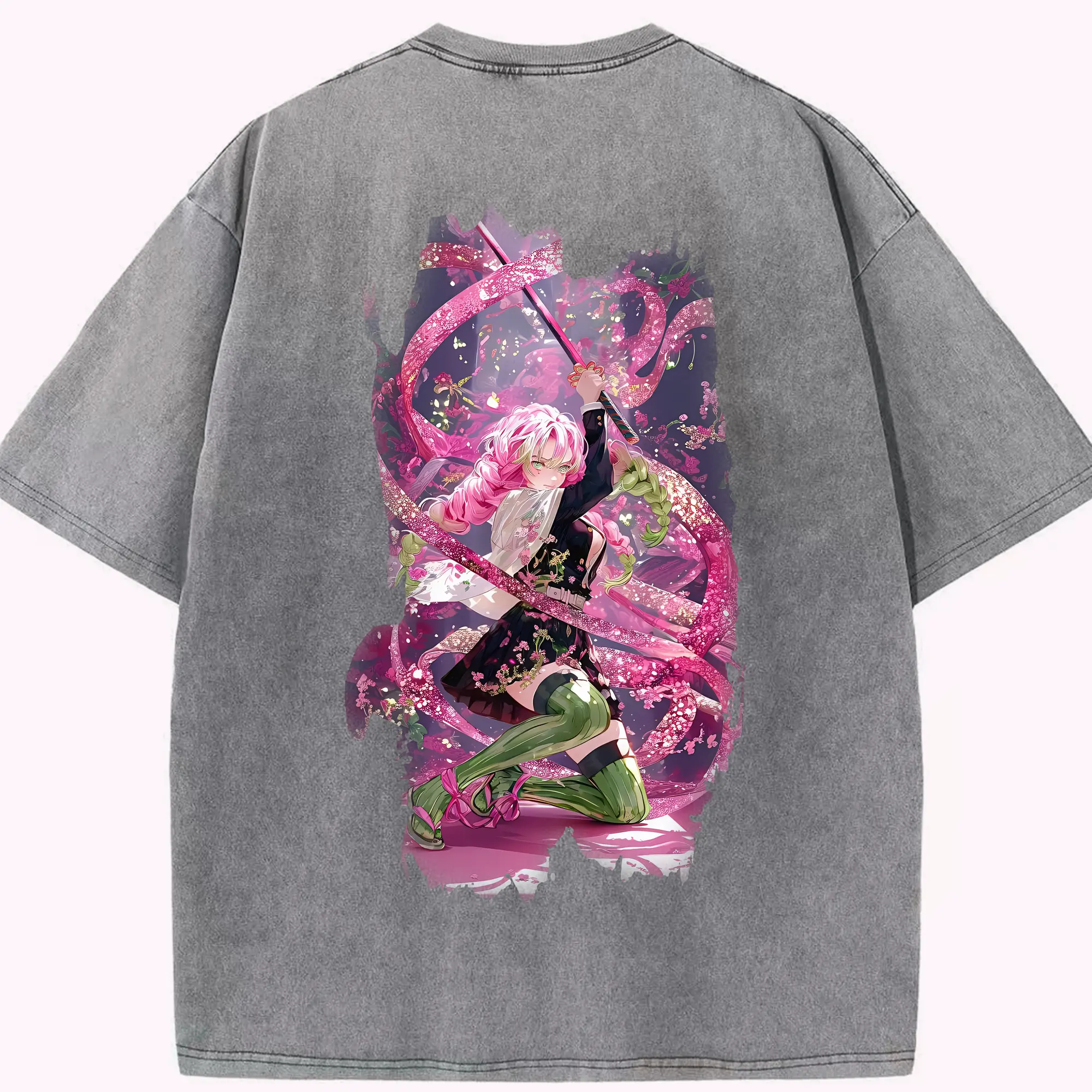 鬼滅の刃 グッズ,甘露寺 蜜璃 - 綿100% 半袖Tシャツ ・ バックプリント ・ 快適 通気性 ・ 日常使い 散歩 スポーツ用