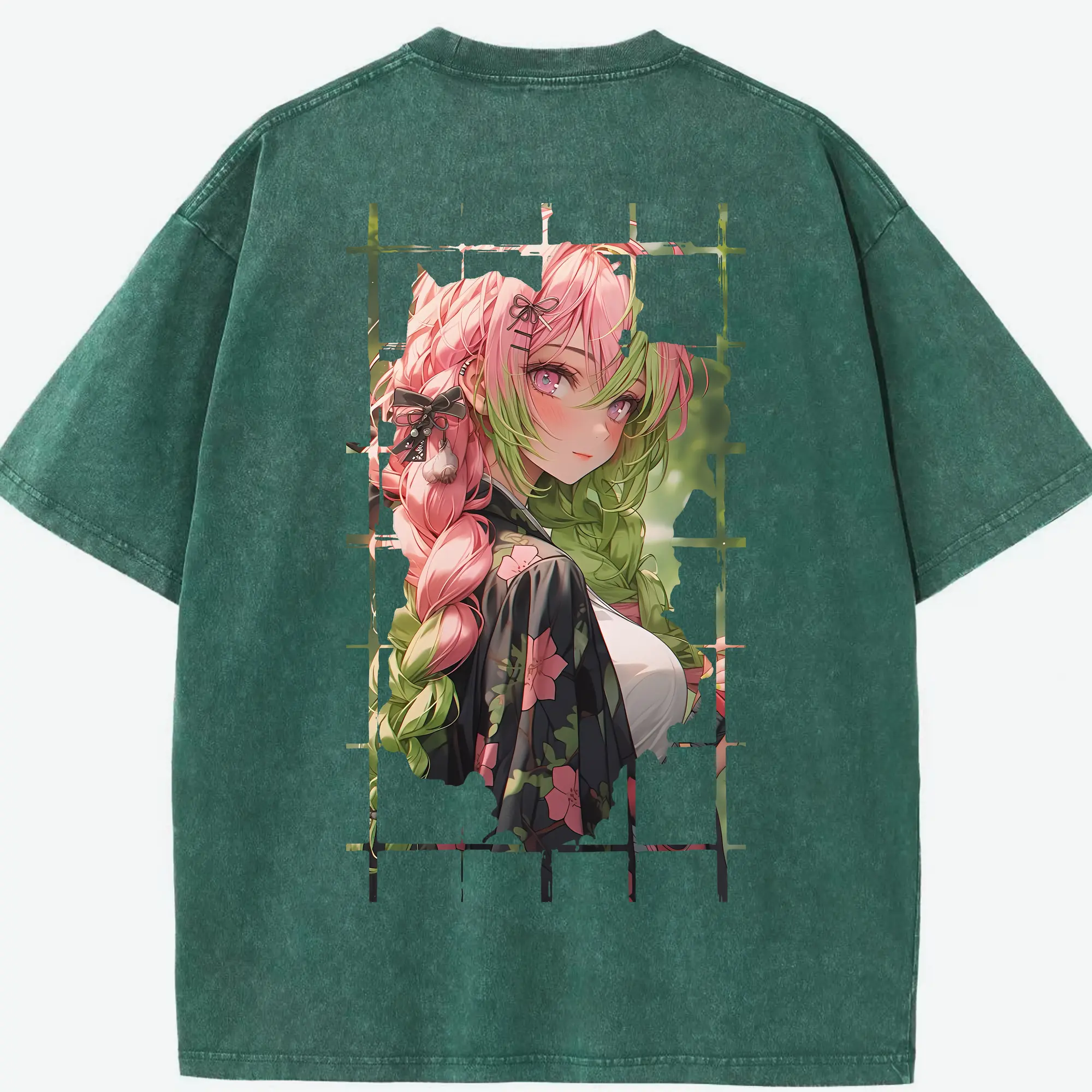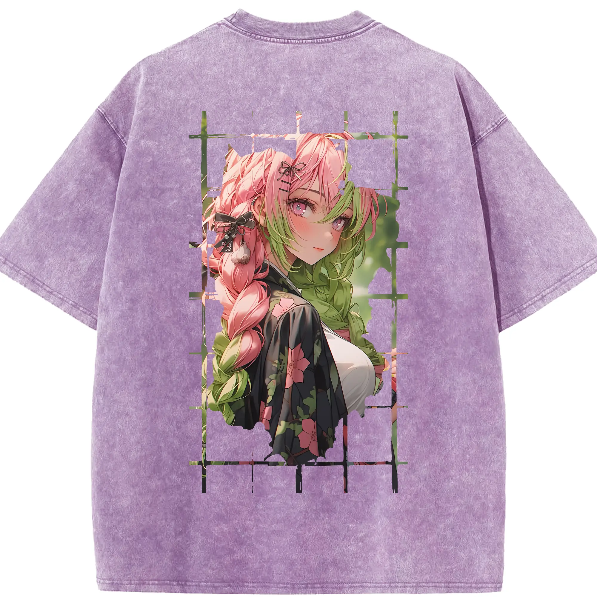 鬼滅の刃 グッズ,甘露寺 蜜璃 - 綿100% 半袖Tシャツ ・ バックプリント ・ 快適 通気性 ・ 日常使い 散歩 スポーツ用