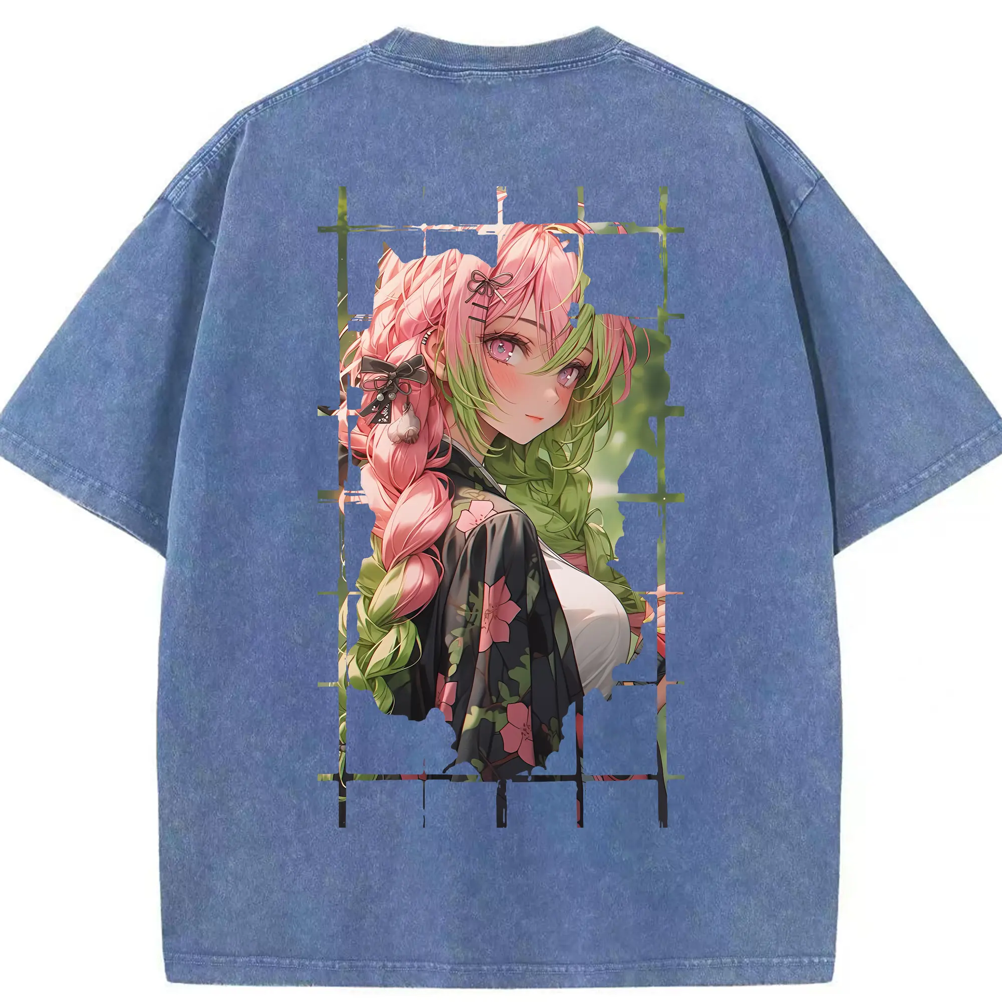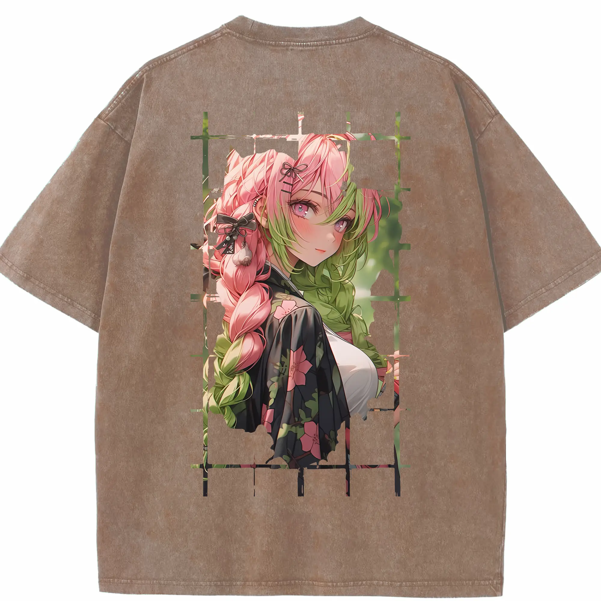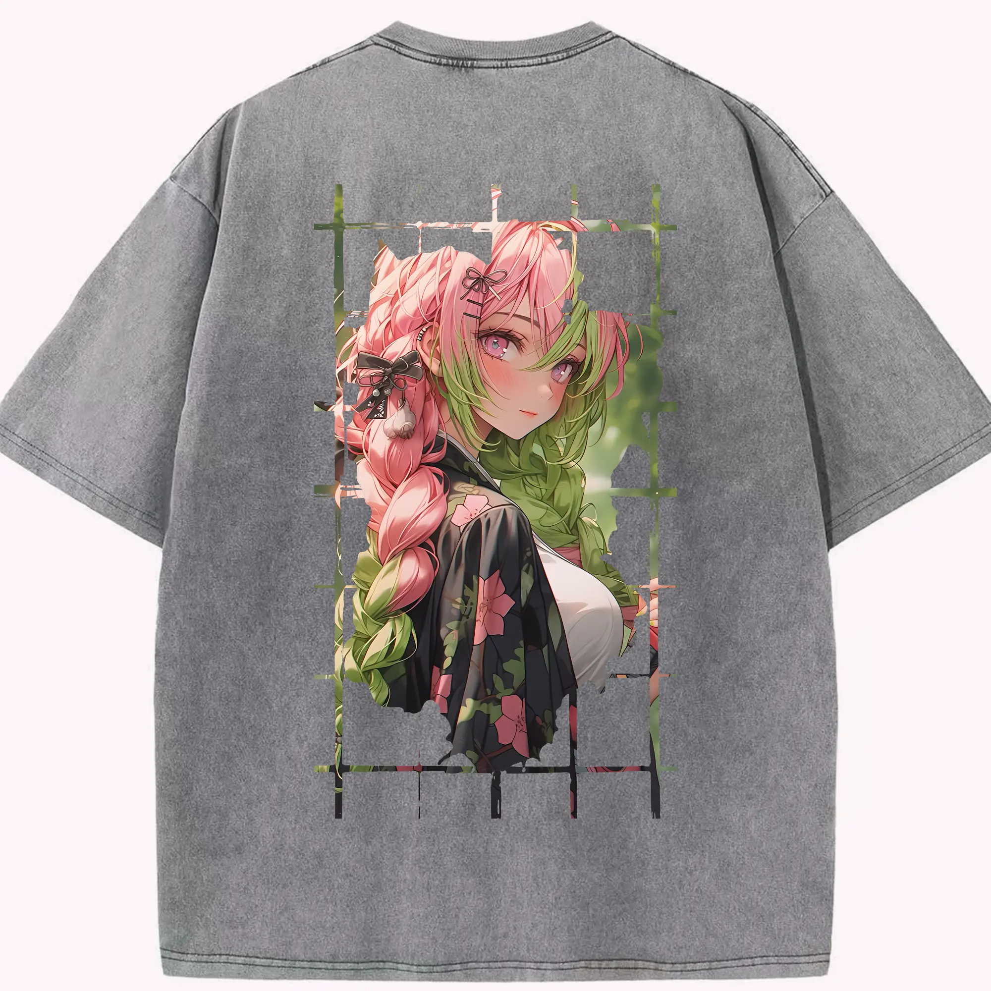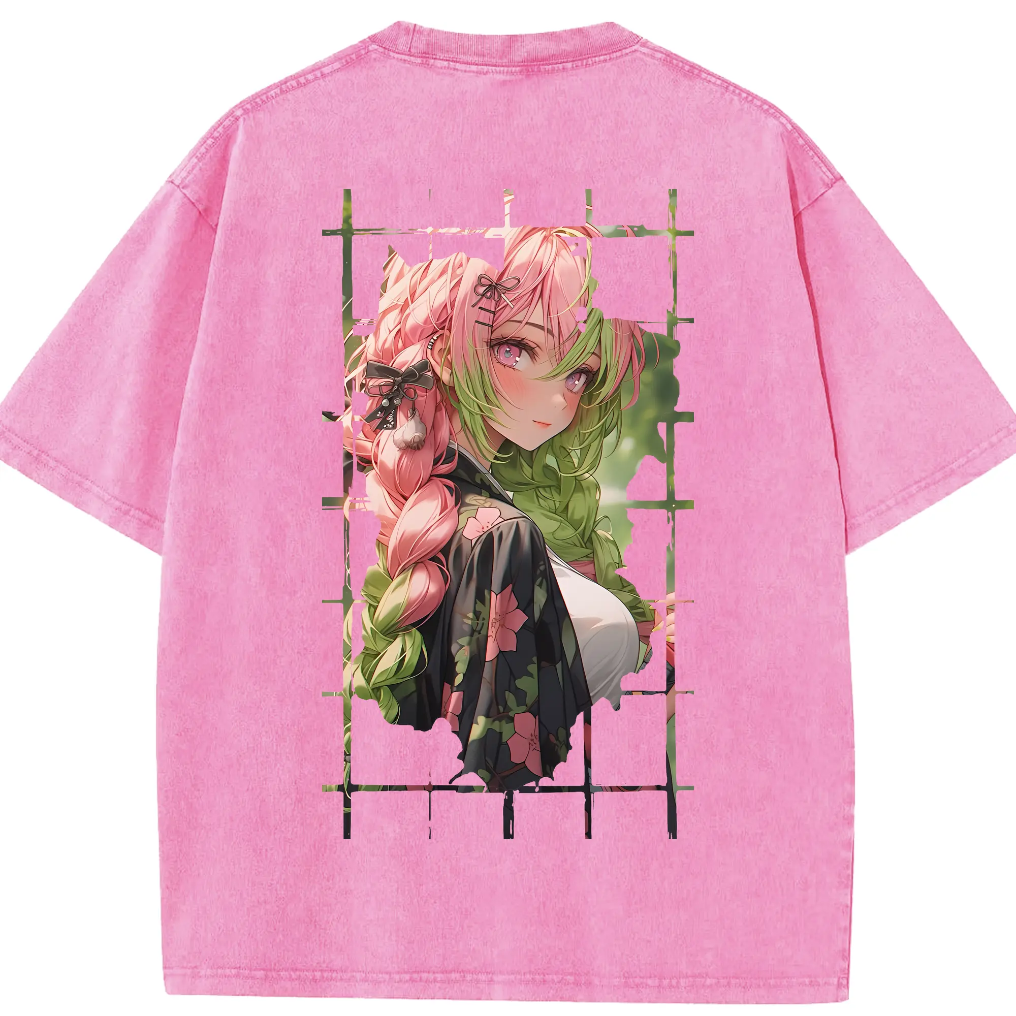 鬼滅の刃 グッズ,甘露寺 蜜璃 - 綿100% 半袖Tシャツ ・ フロントプリント ・ 快適 通気性 ・ 日常使い 散歩 スポーツ用