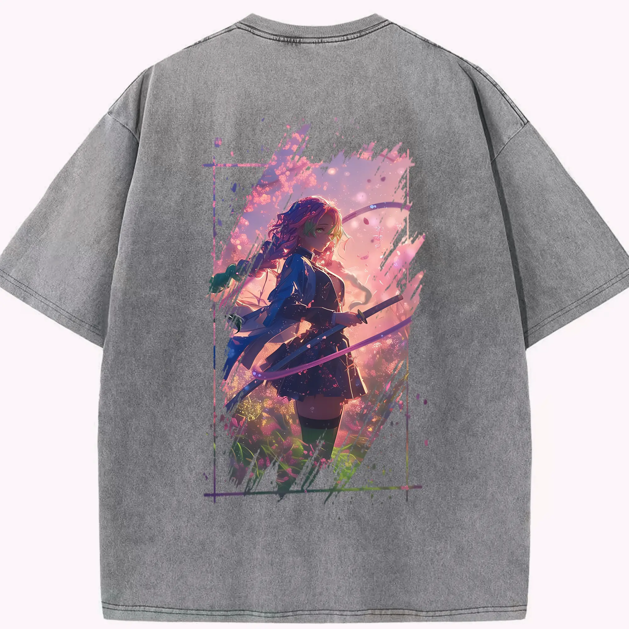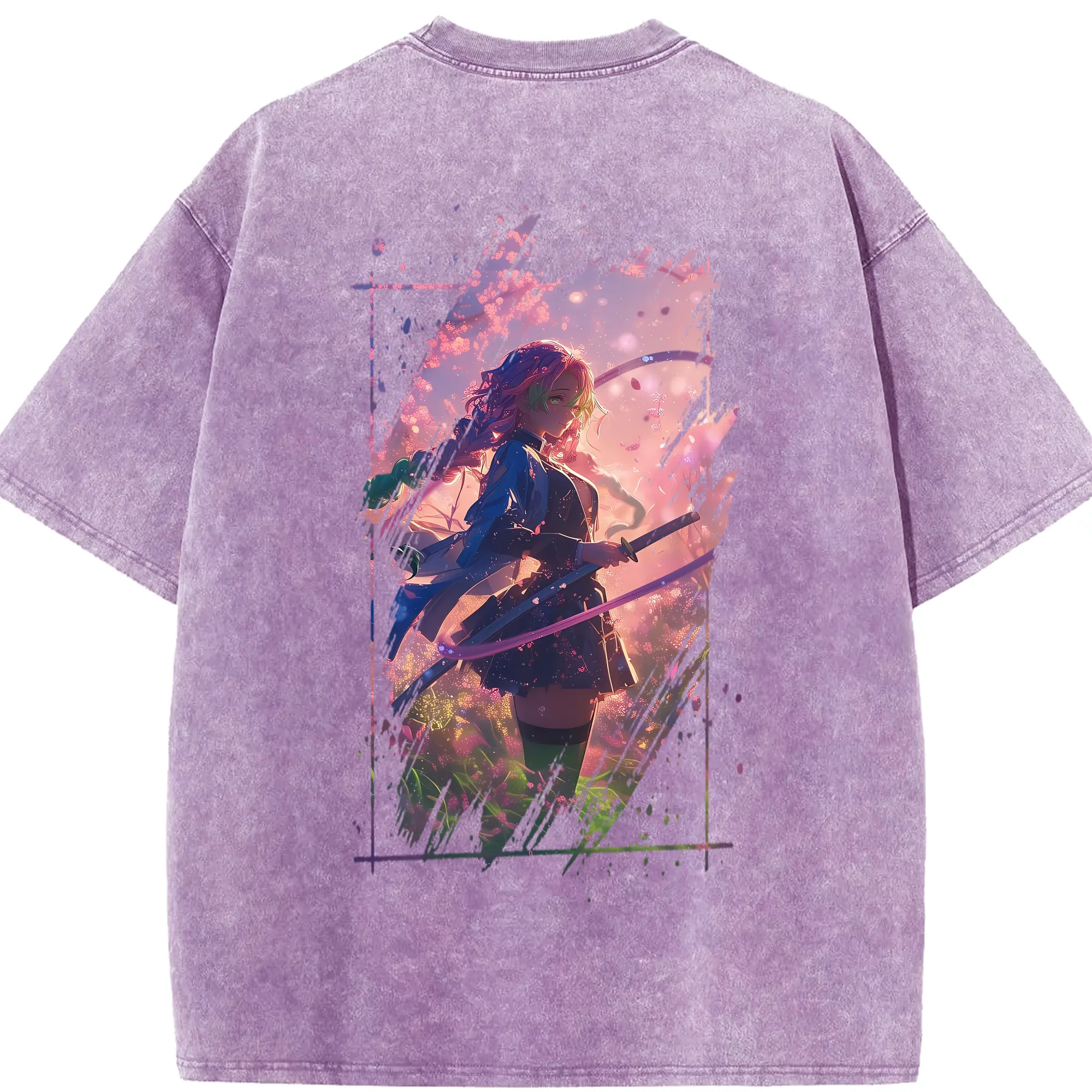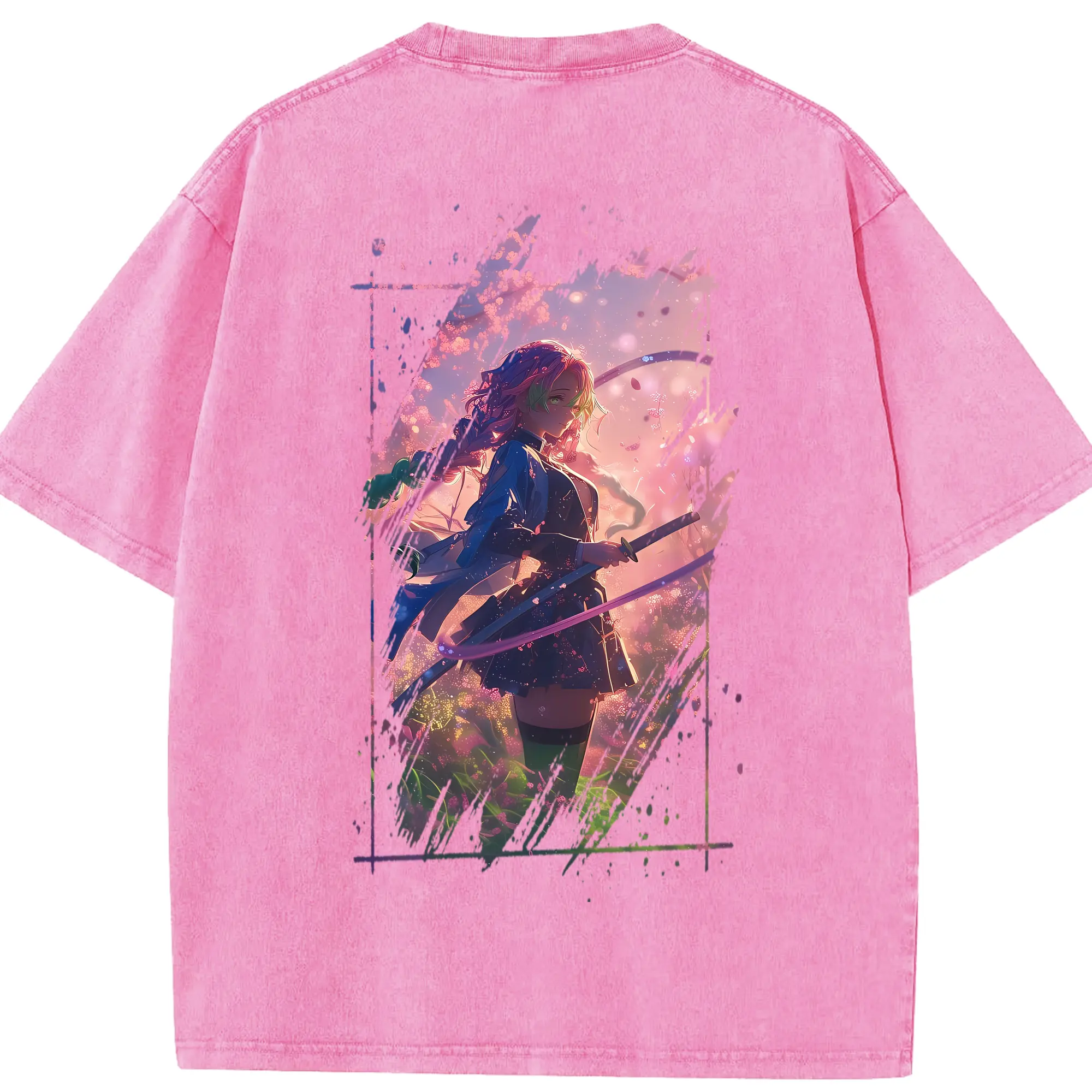 鬼滅の刃 グッズ,甘露寺 蜜璃 - 綿100% 半袖Tシャツ ・ バックプリント ・ 快適 通気性 ・ 日常使い 散歩 スポーツ用