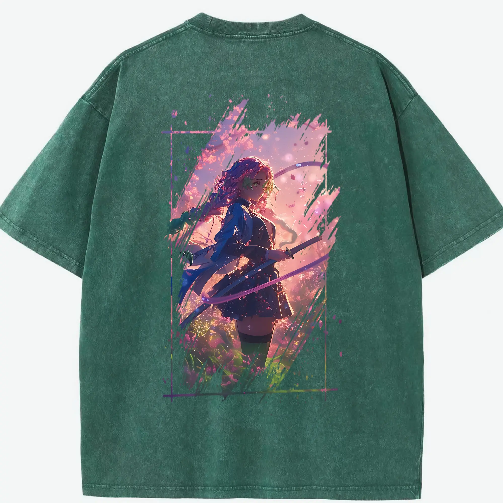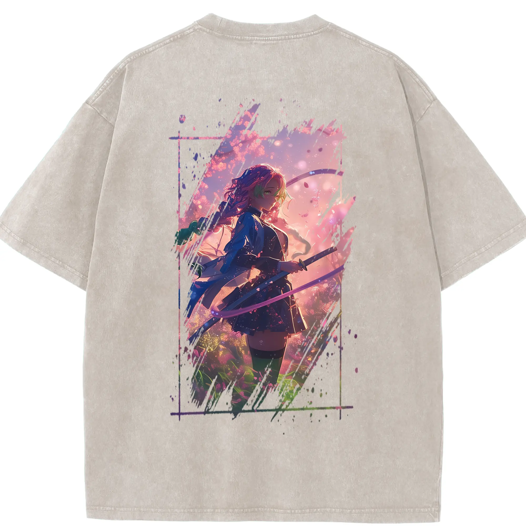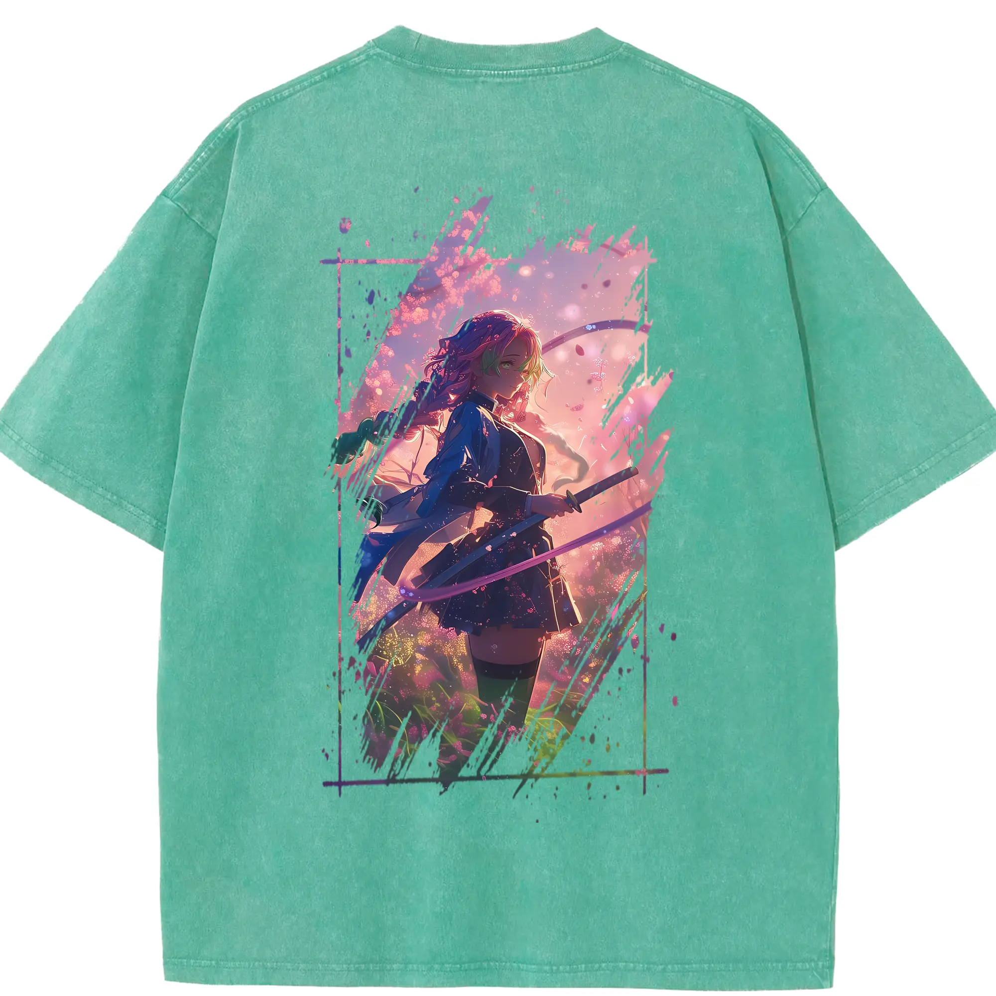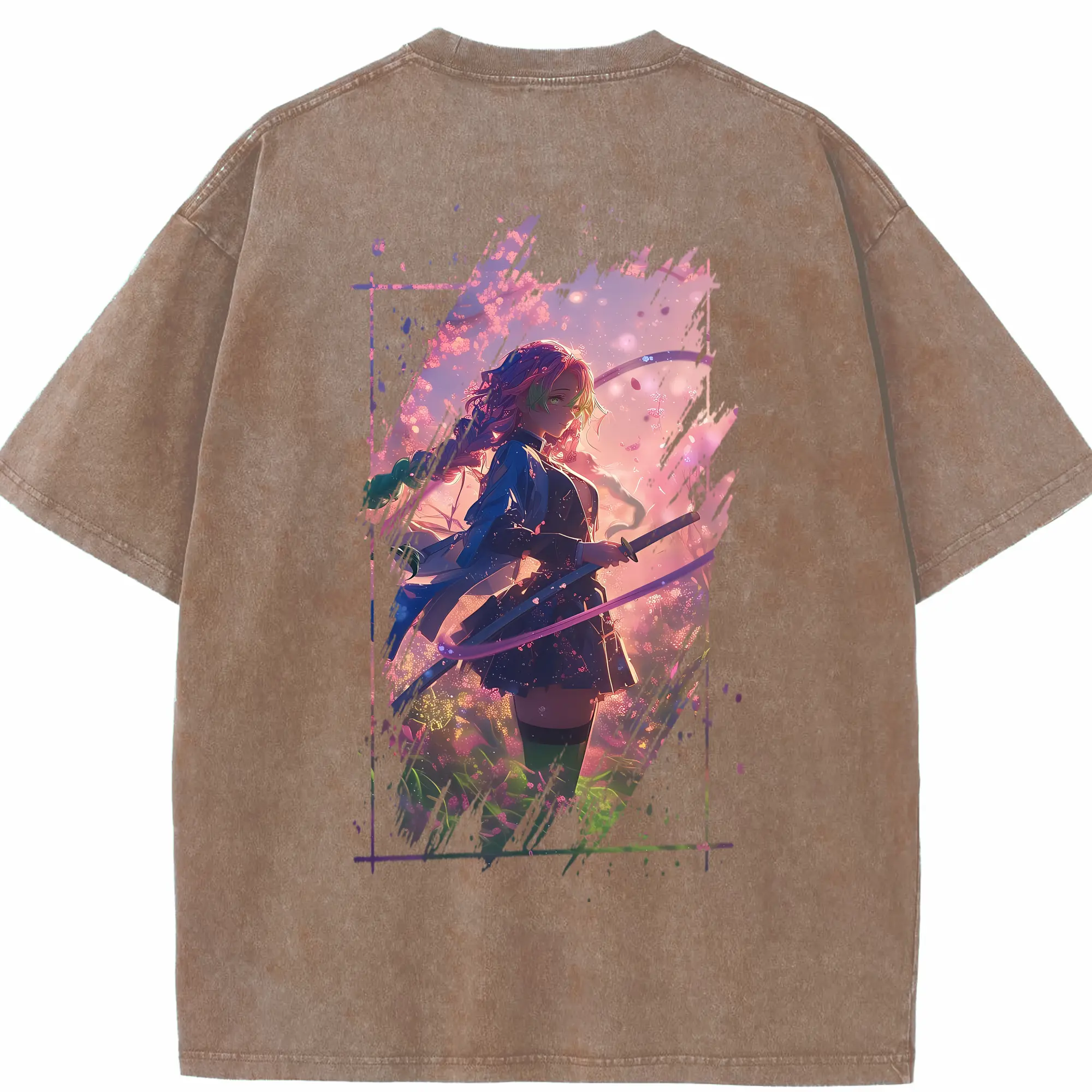 鬼滅の刃 グッズ,甘露寺 蜜璃 - 綿100% 半袖Tシャツ ・ バックプリント ・ 快適 通気性 ・ 日常使い 散歩 スポーツ用