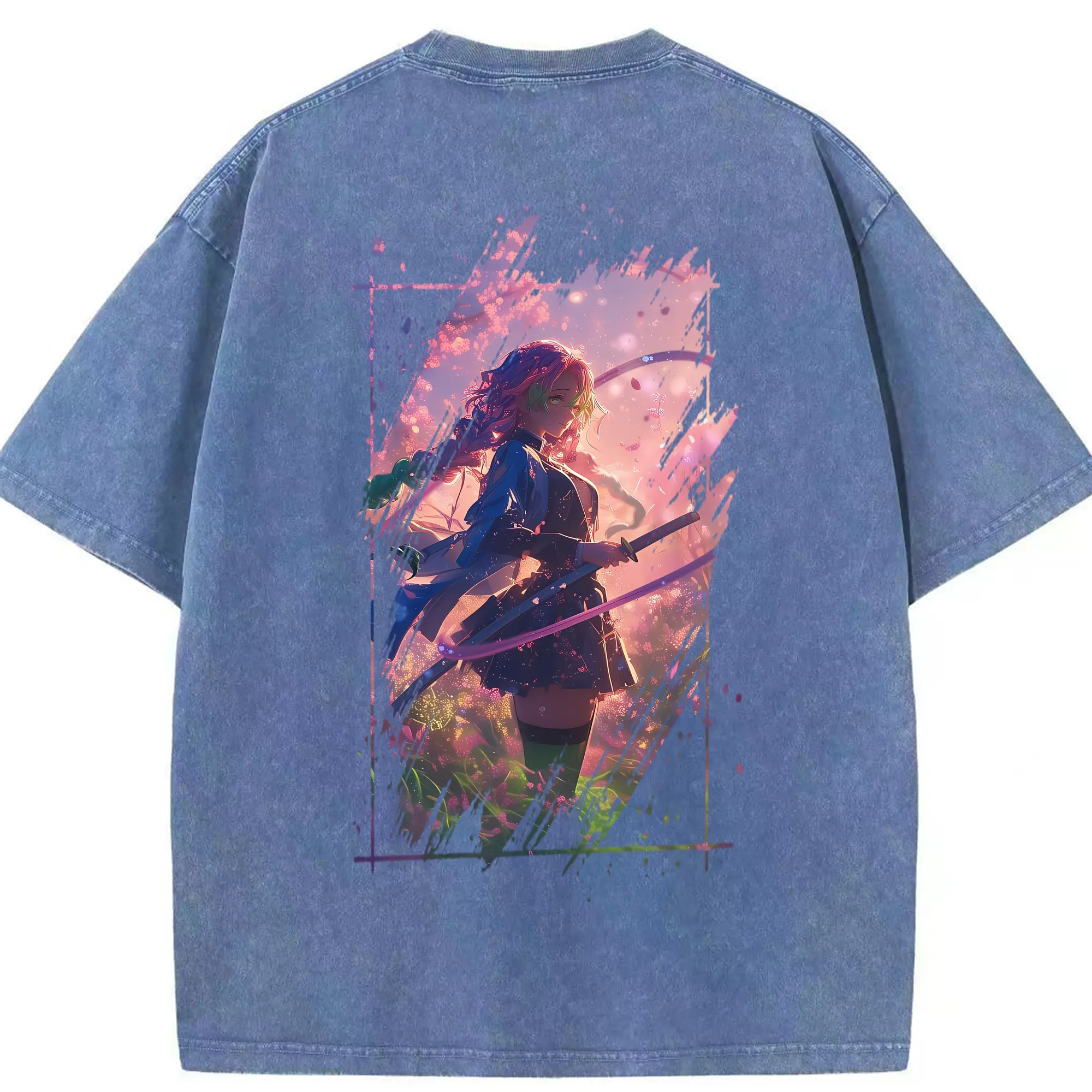 鬼滅の刃 グッズ,甘露寺 蜜璃 - 綿100% 半袖Tシャツ ・ フロントプリント ・ 快適 通気性 ・ 日常使い 散歩 スポーツ用