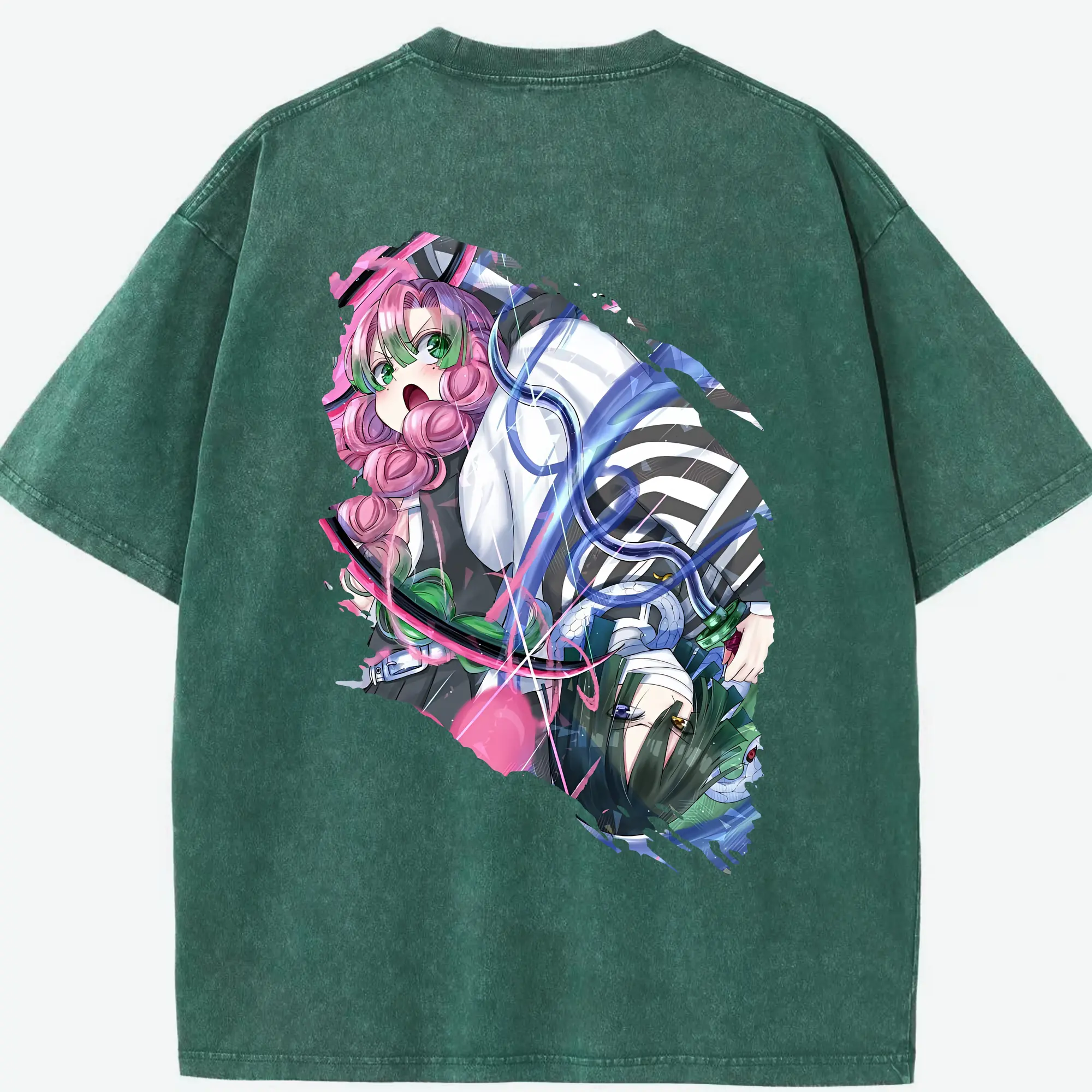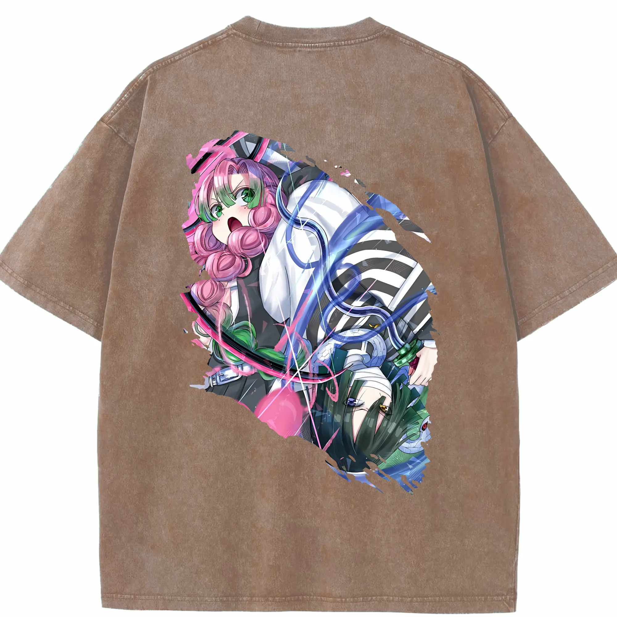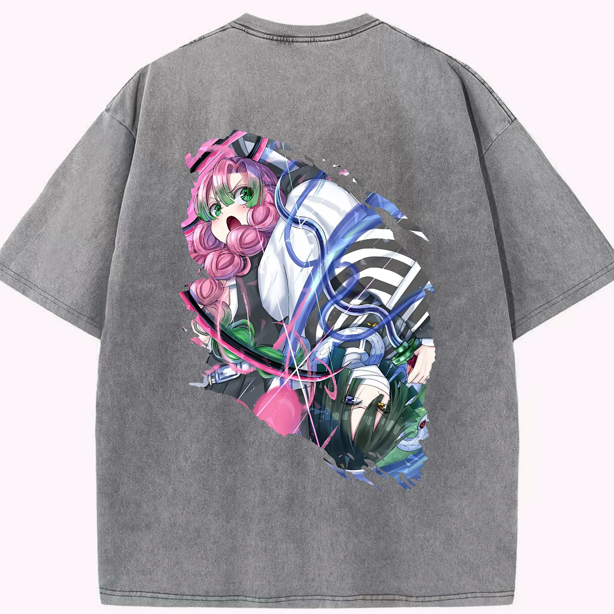 鬼滅の刃 グッズ,甘露寺 蜜璃 - 綿100% 半袖Tシャツ ・ フロントプリント ・ 快適 通気性 ・ 日常使い 散歩 スポーツ用