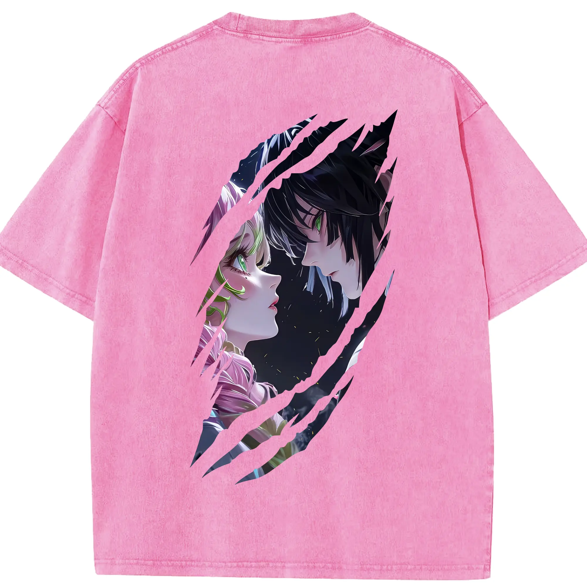 鬼滅の刃 グッズ,甘露寺 蜜璃 - 綿100% 半袖Tシャツ ・ バックプリント ・ 快適 通気性 ・ 日常使い 散歩 スポーツ用