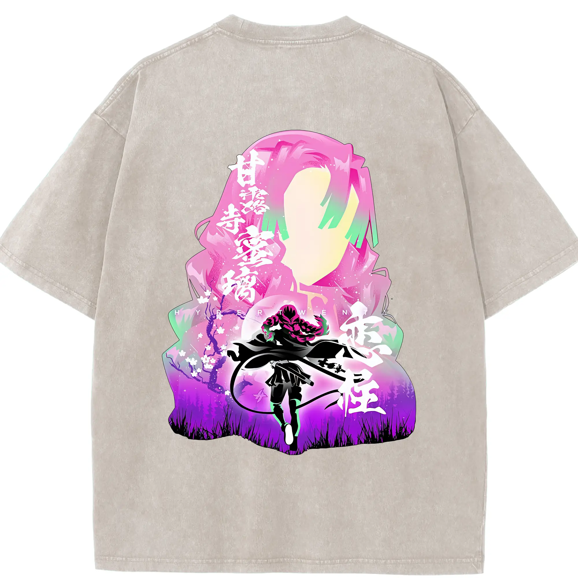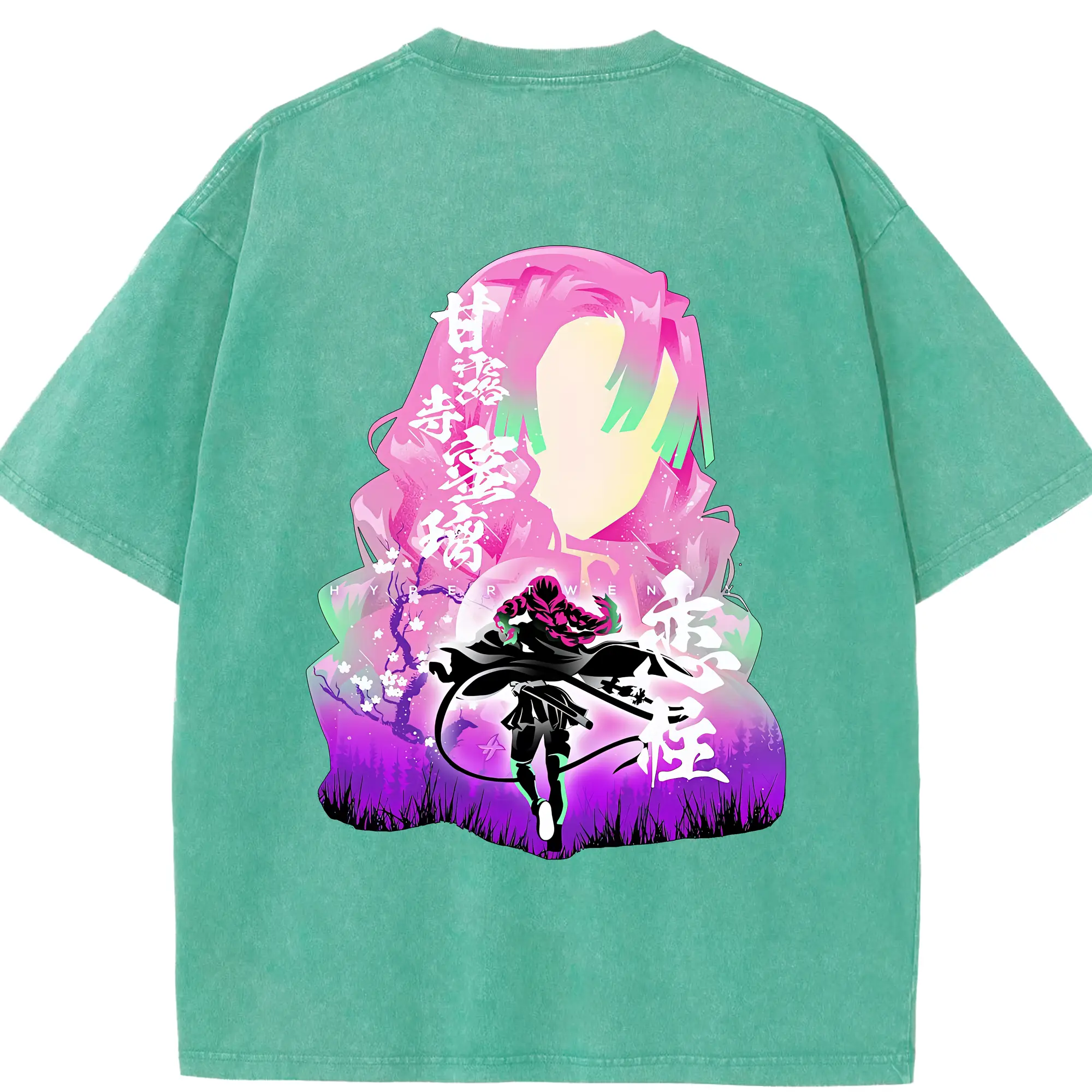 鬼滅の刃 グッズ,甘露寺 蜜璃 - 綿100% 半袖Tシャツ ・ バックプリント ・ 快適 通気性 ・ 日常使い 散歩 スポーツ用